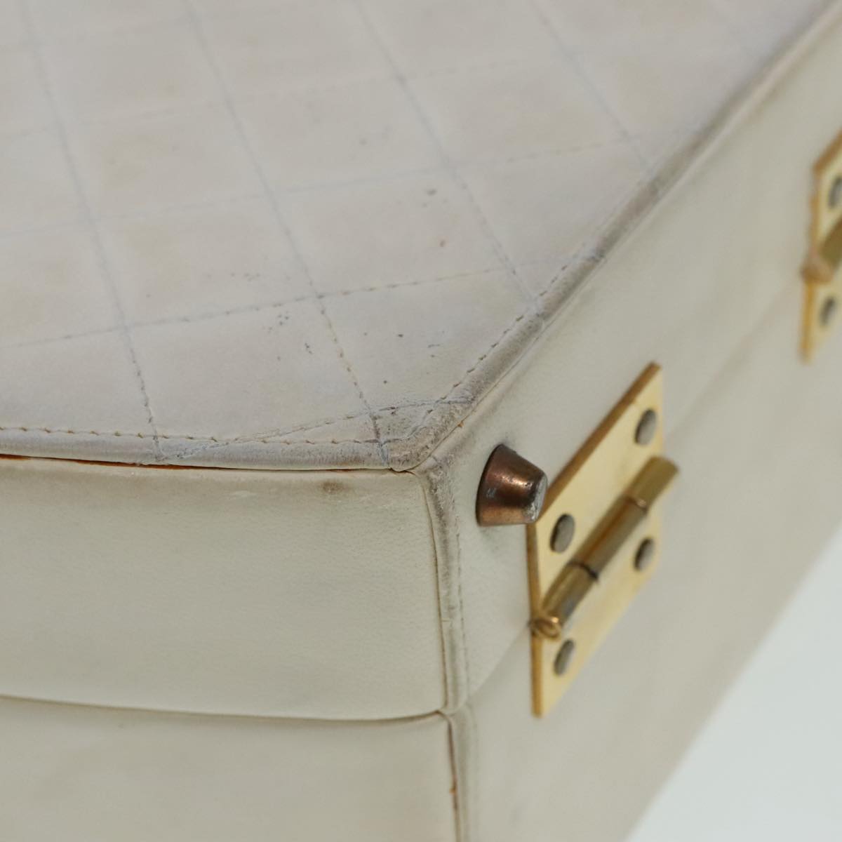 CHANEL Vanity Hand Bag Leather White CC 92088