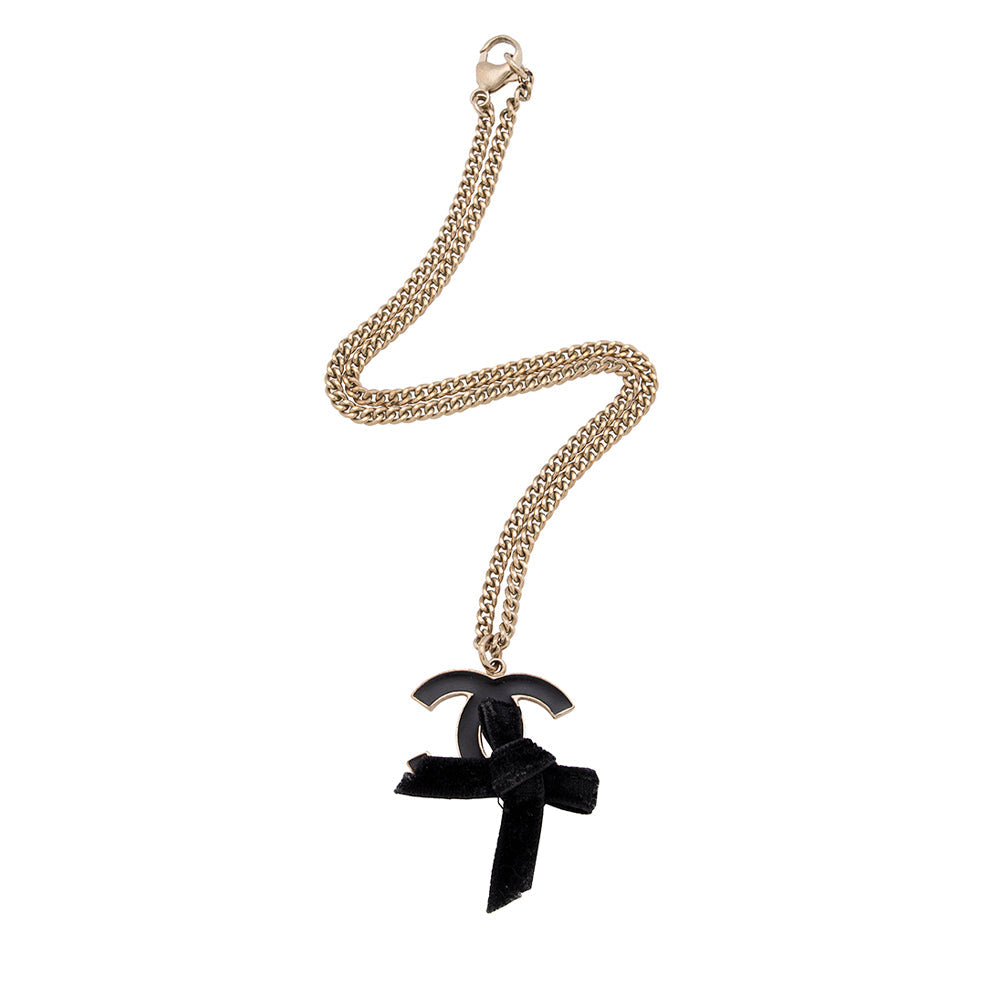 Chanel Velvet Bow CC Pendant Necklace (SHF-16744)