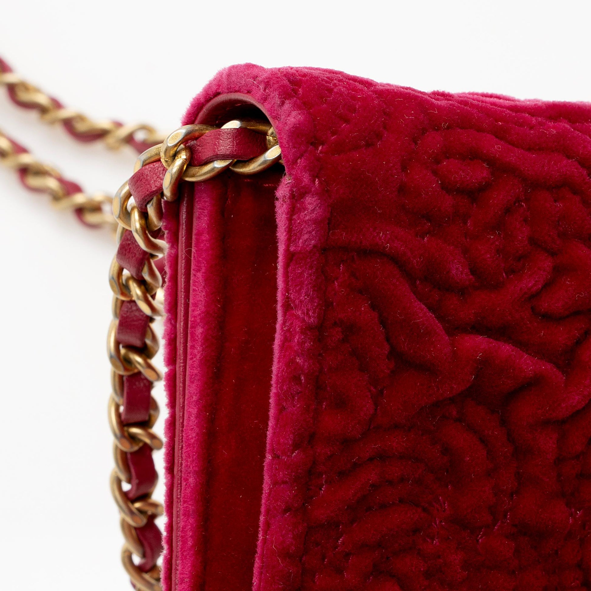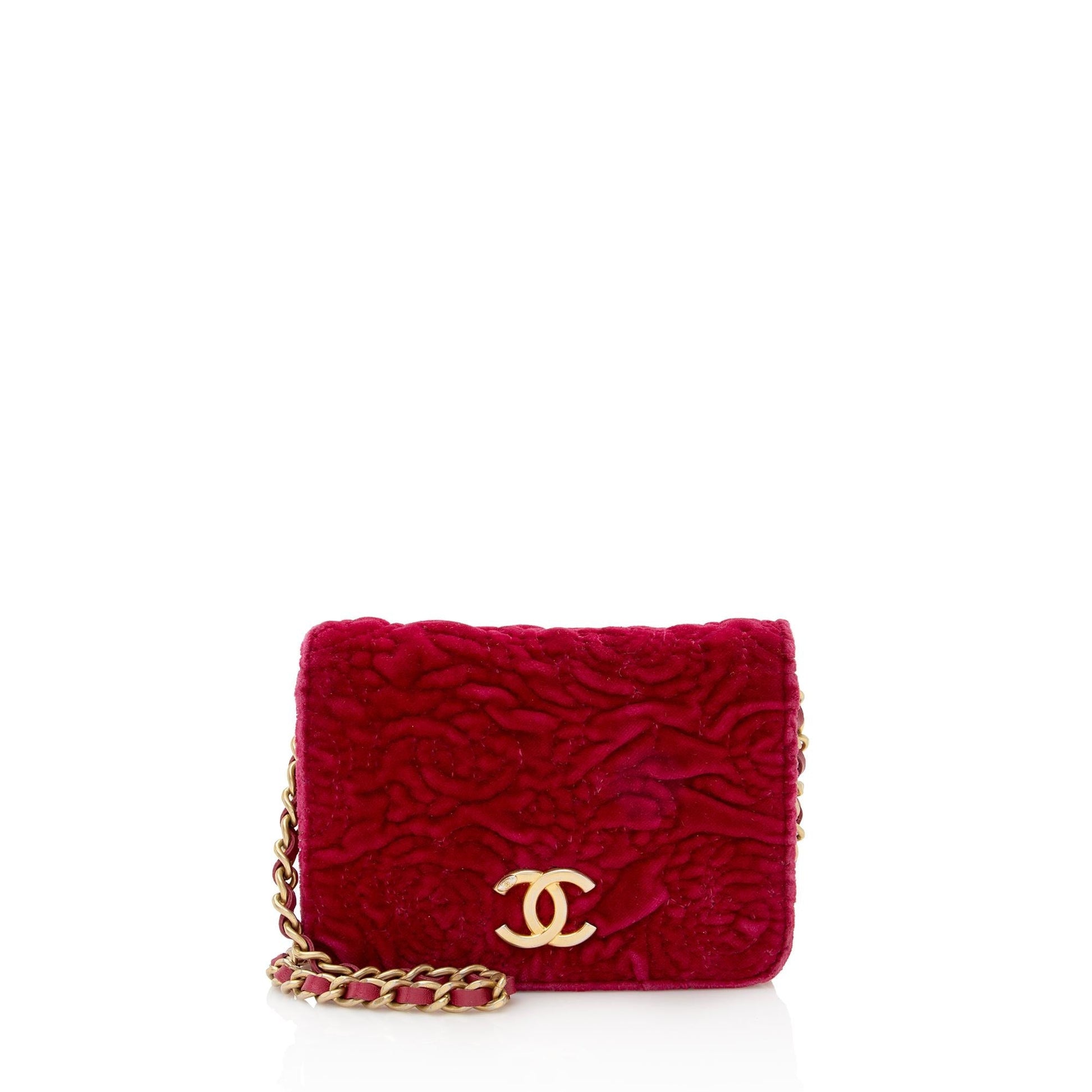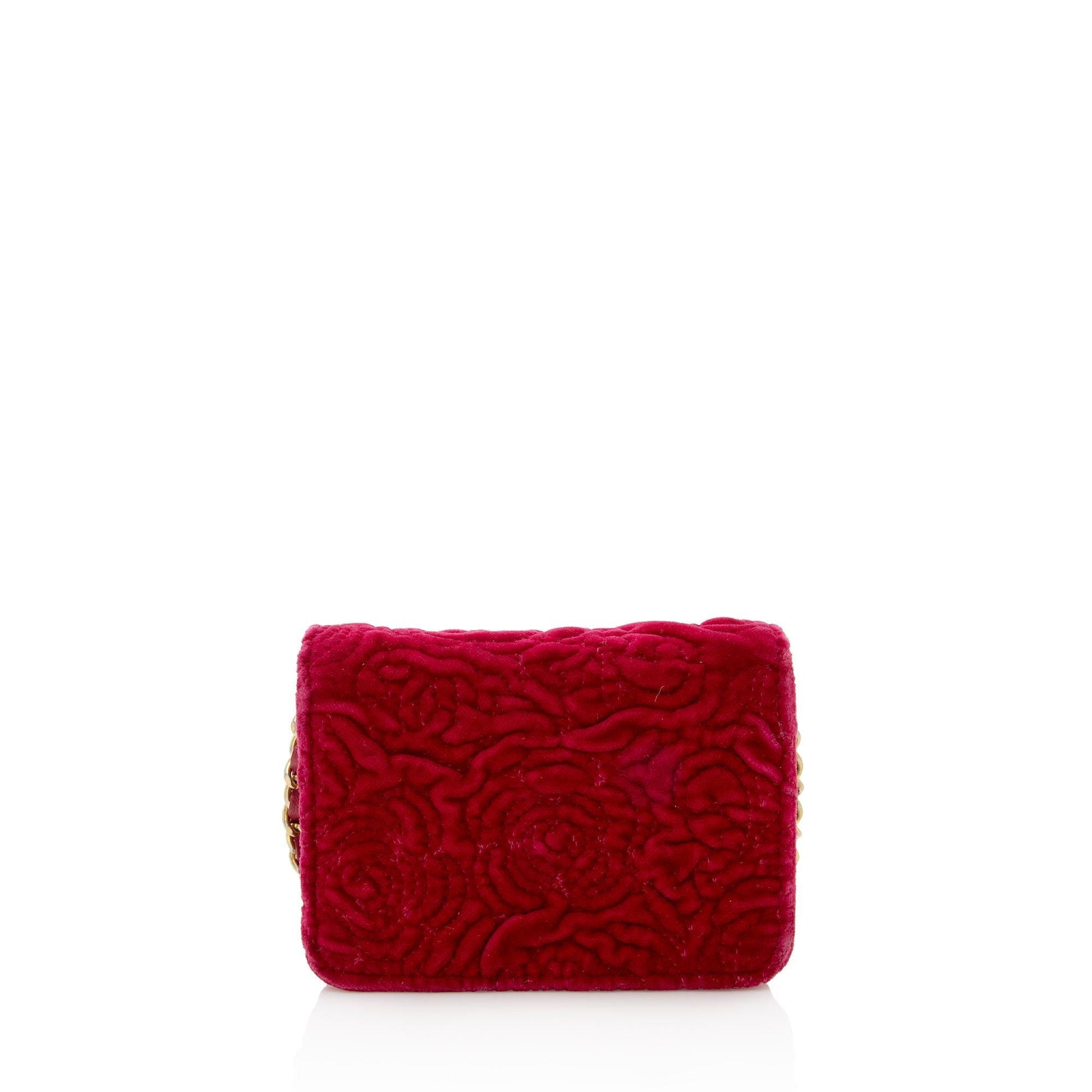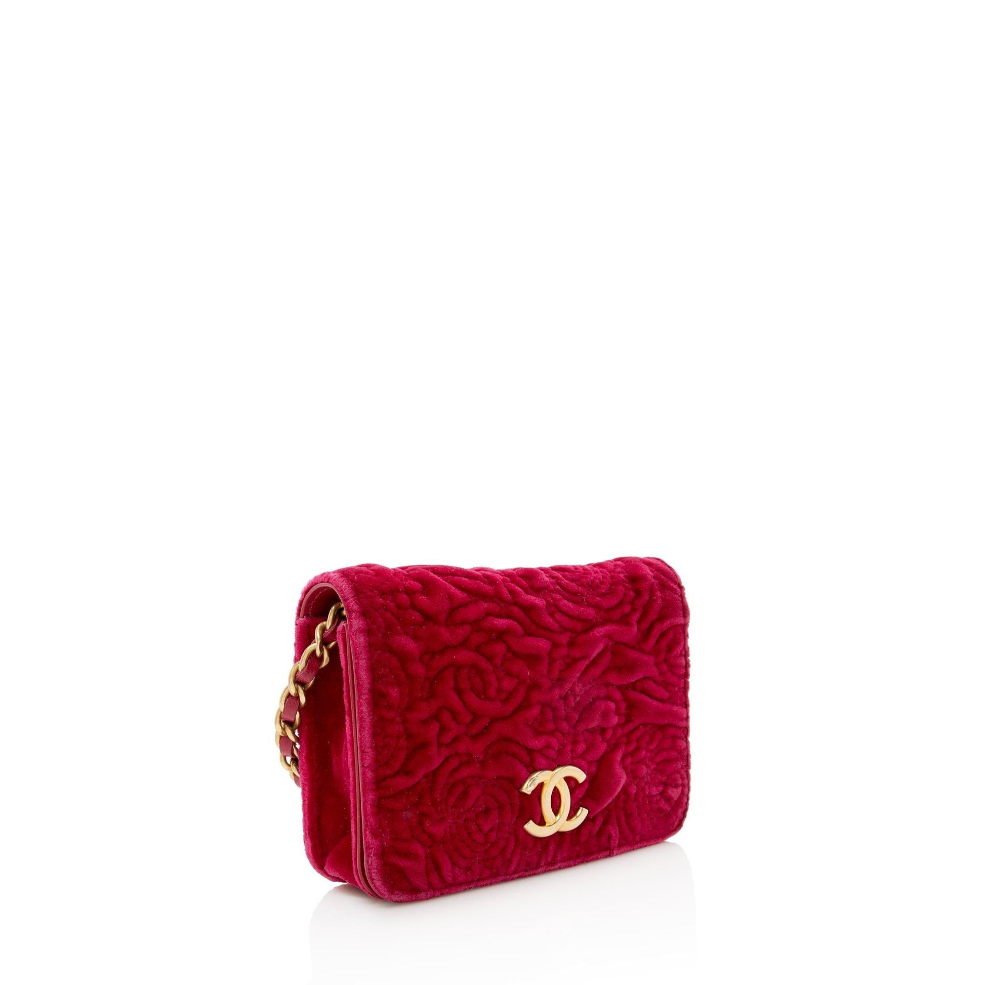 Chanel Velvet Camellia Flap Coin Purse on Chain (SHF-22731)