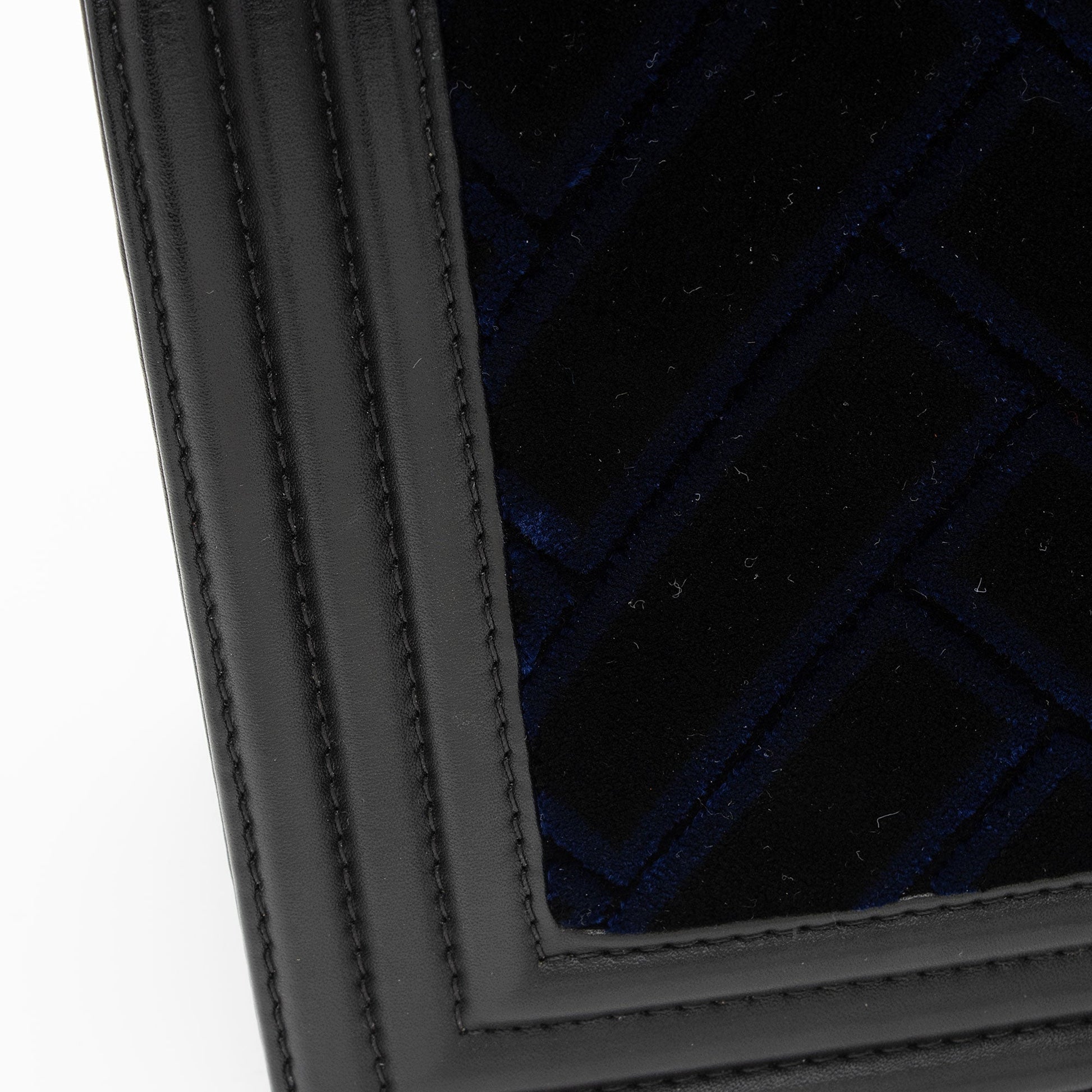 Condition Notes: Light scuffs to exterior bottom corners. Minor scuffs throughout exterior velvet. Light surface scratches to hardware. Light scuffs throughout interior calfskin. Minor wear throughout interior.