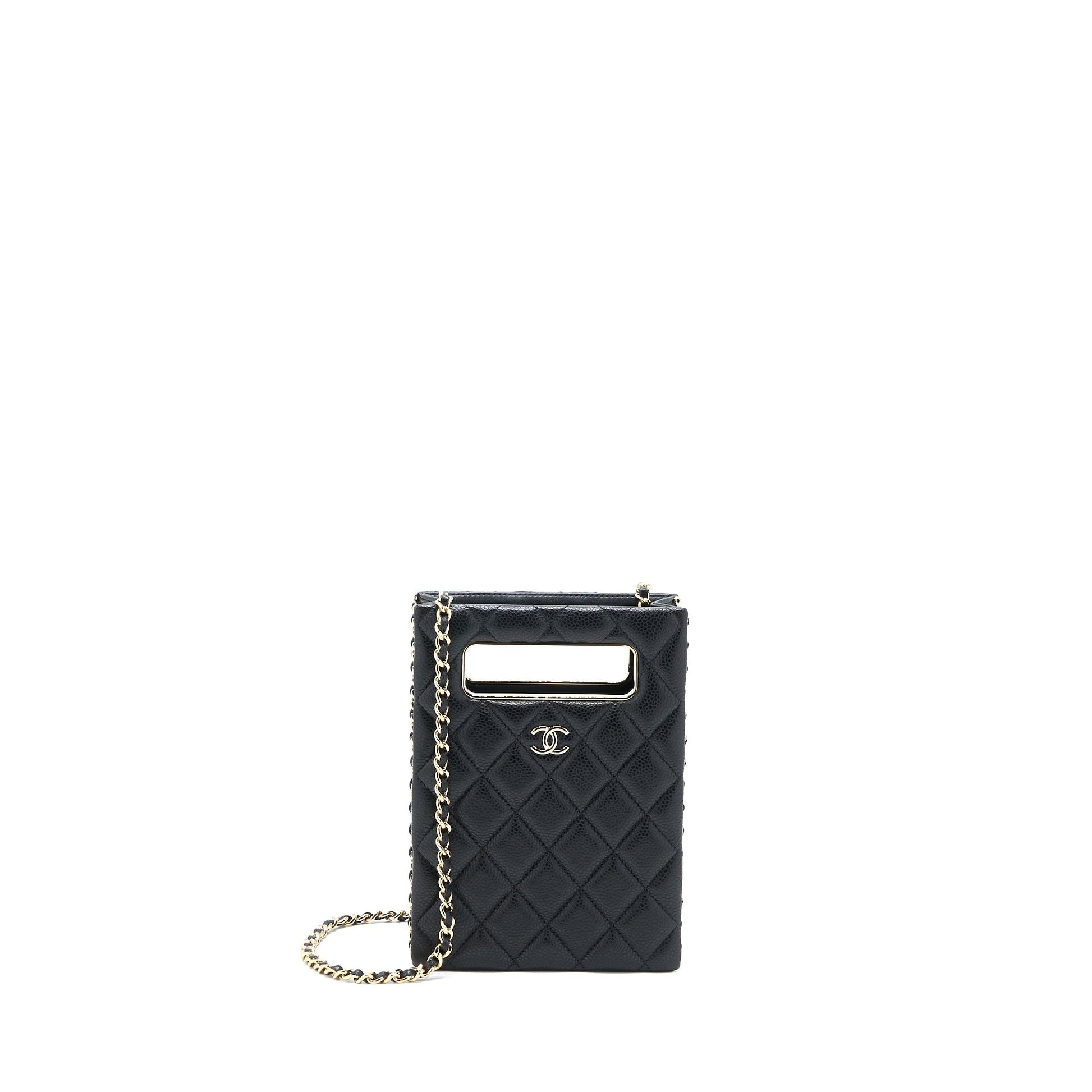 Chanel Vertical Evening Chain Bag Caviar Black LGHW (Microchip)
