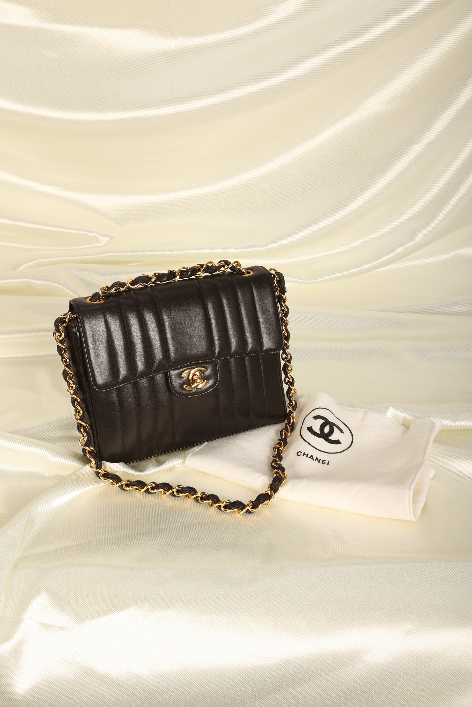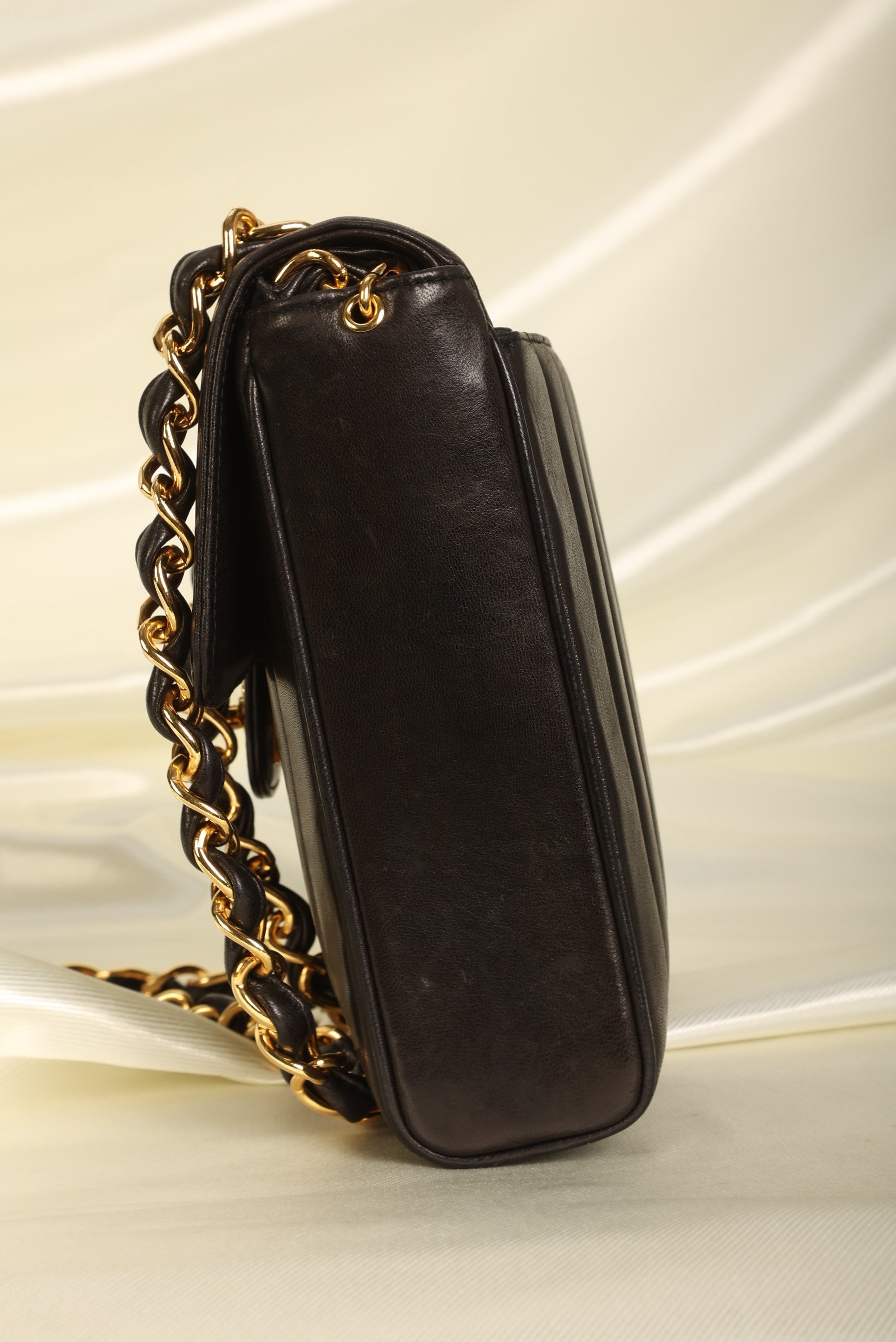 A rare?Chanel gem crafted in lambskin, with vertical quilting and 24kt gold plated hardware. Buttery soft lambskin. Classic black and gold combo allows this to go perfectly with every outfit!