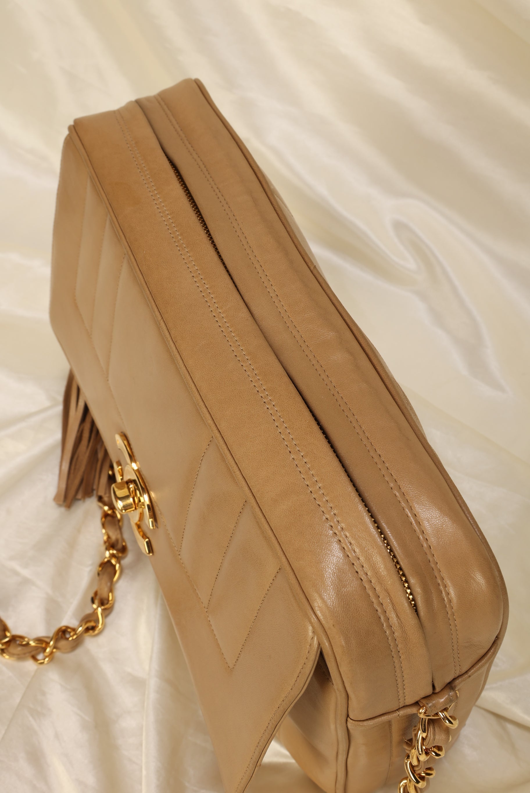 Please note: Hairline scratches on turnlock. Chain is in beautiful yellow gold condition. Some?marks on exterior and parts of?edges. Clean interior. Overall beautiful vintage condition with lots of life!