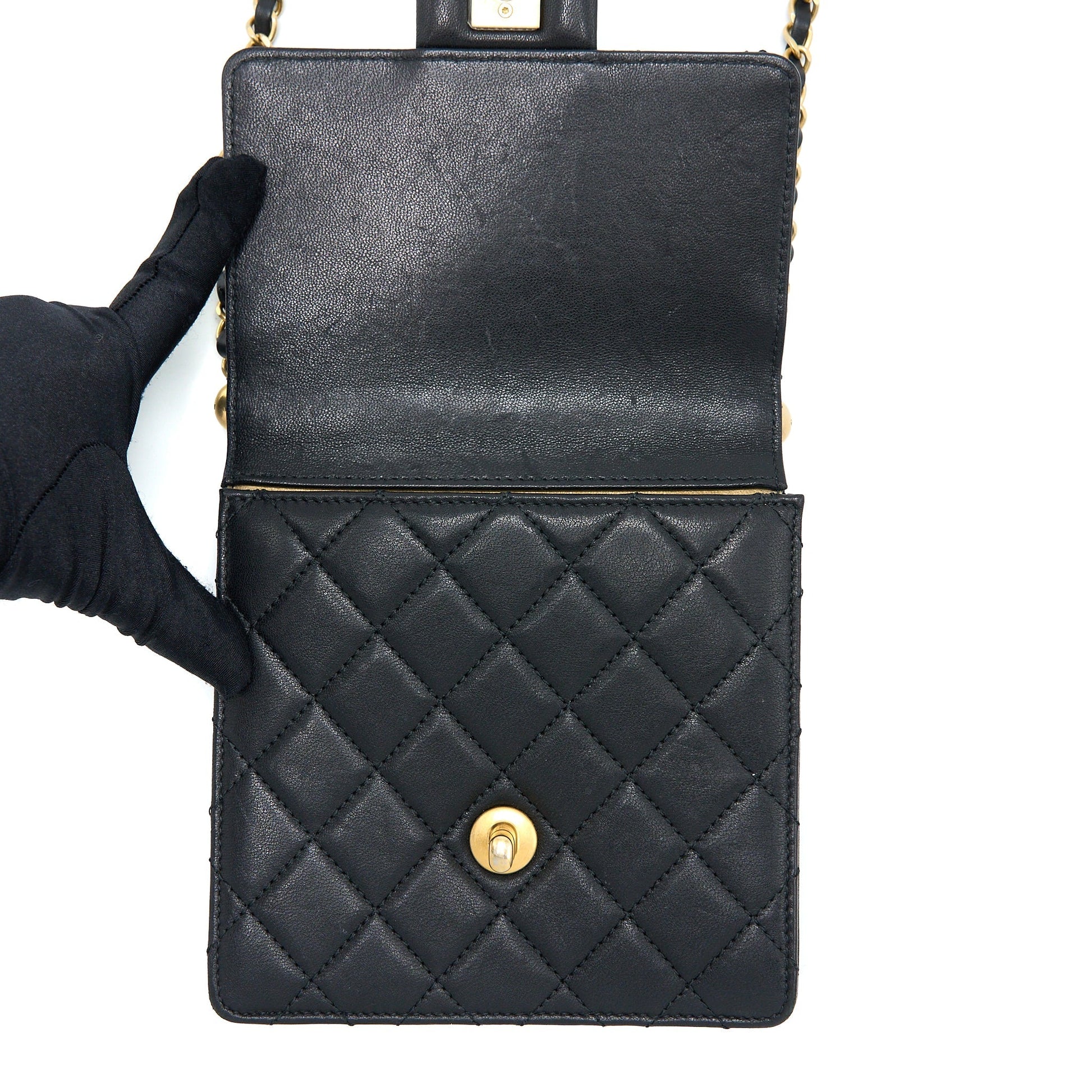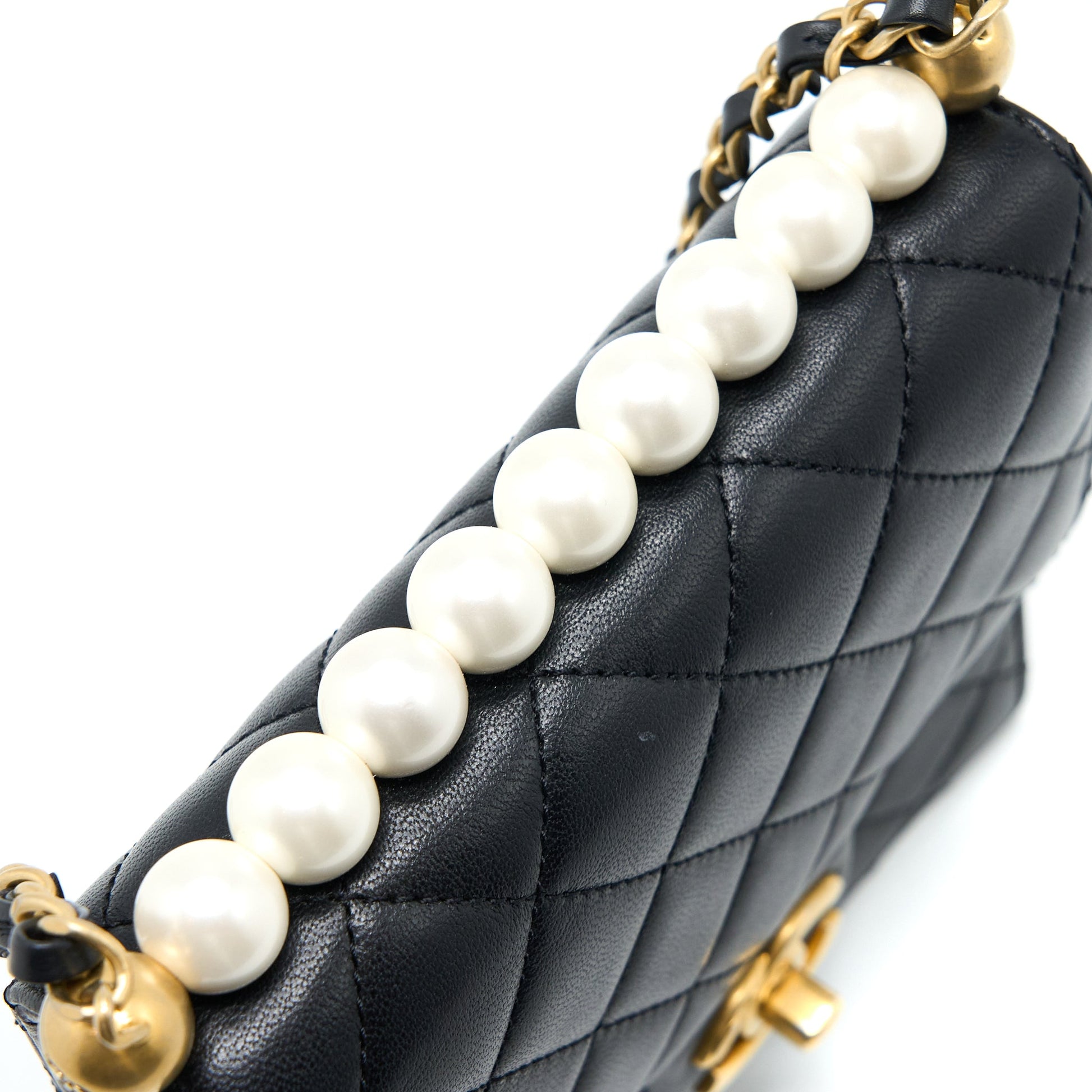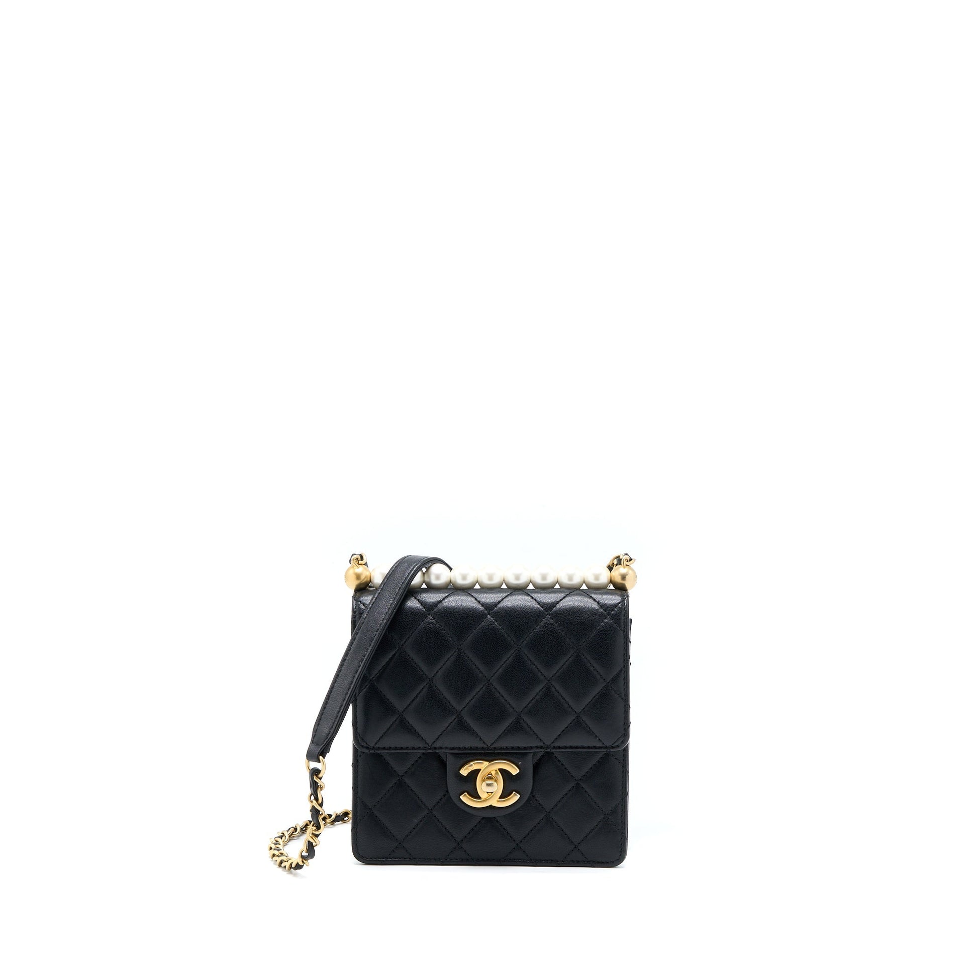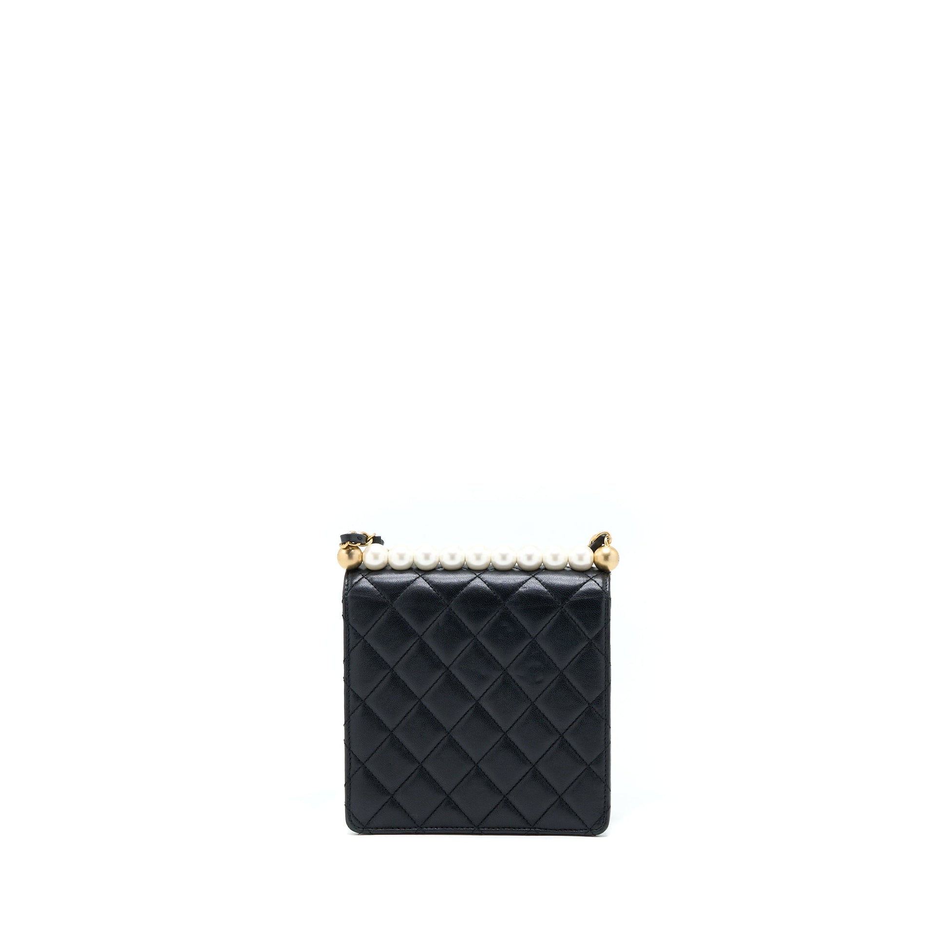Chanel Vertical Pearl Flap Bag Goatskin Black GHW