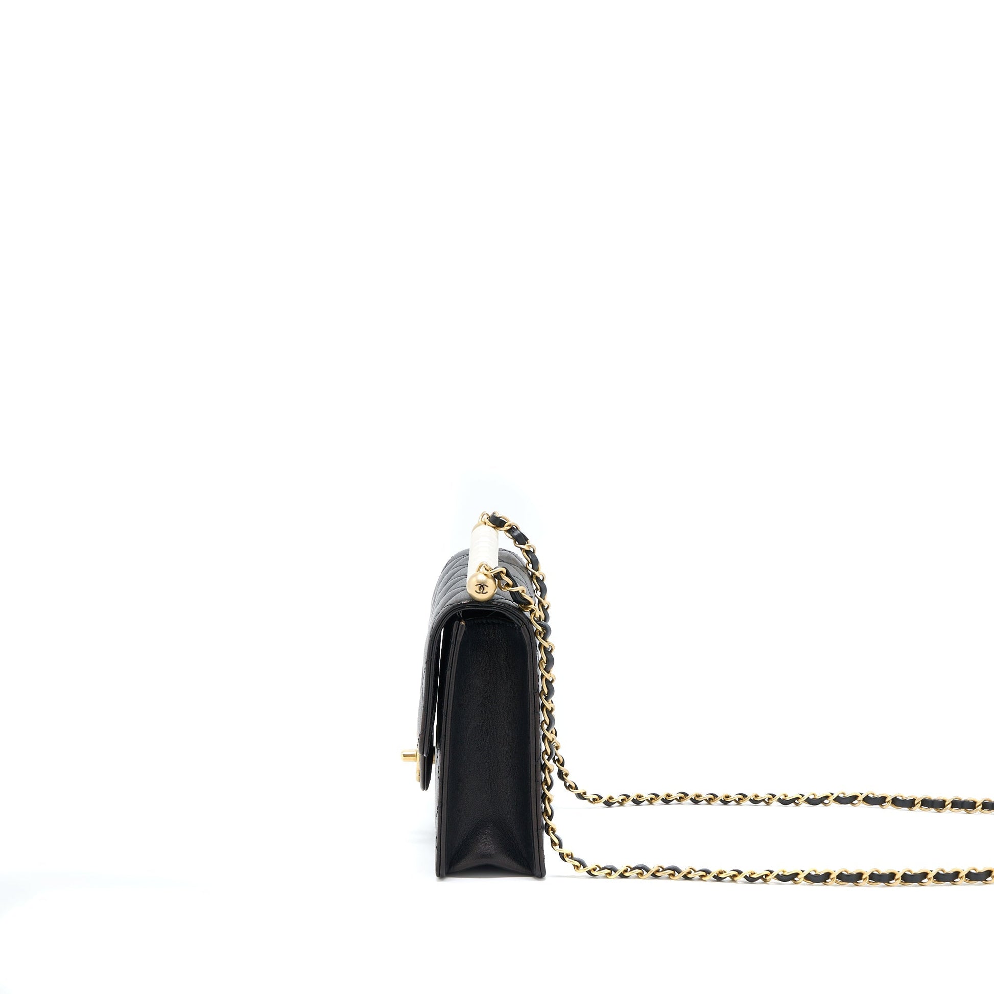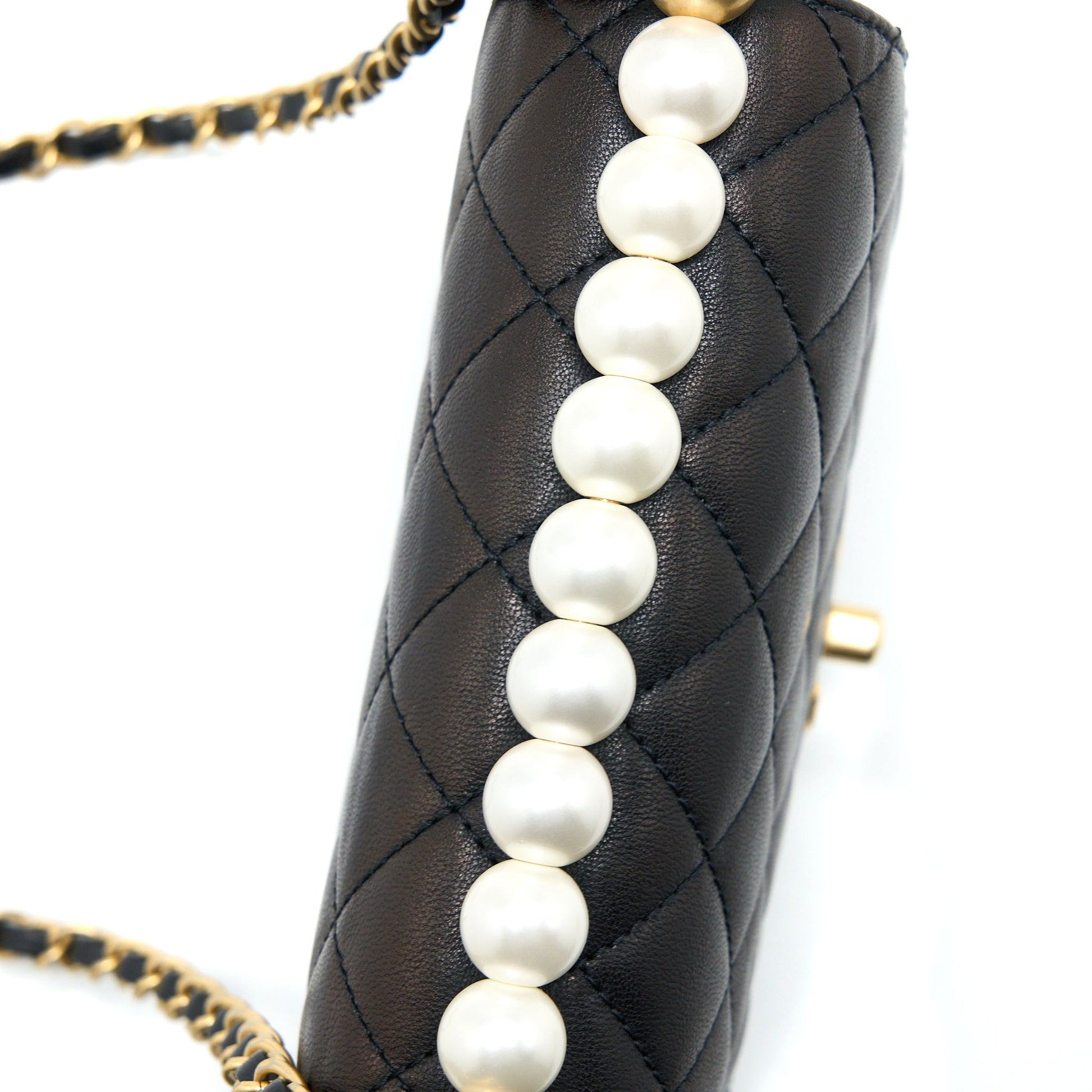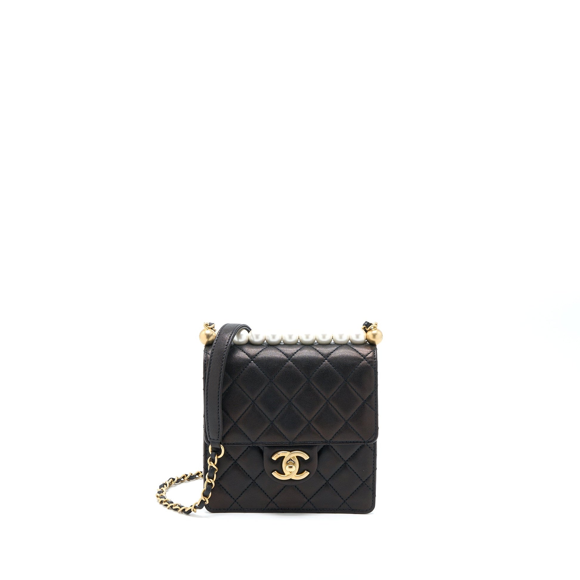 Chanel Vertical Pearl Flap Bag Goatskin Black GHW