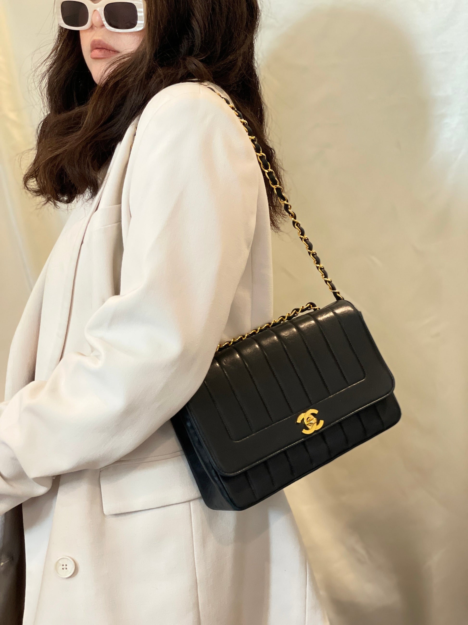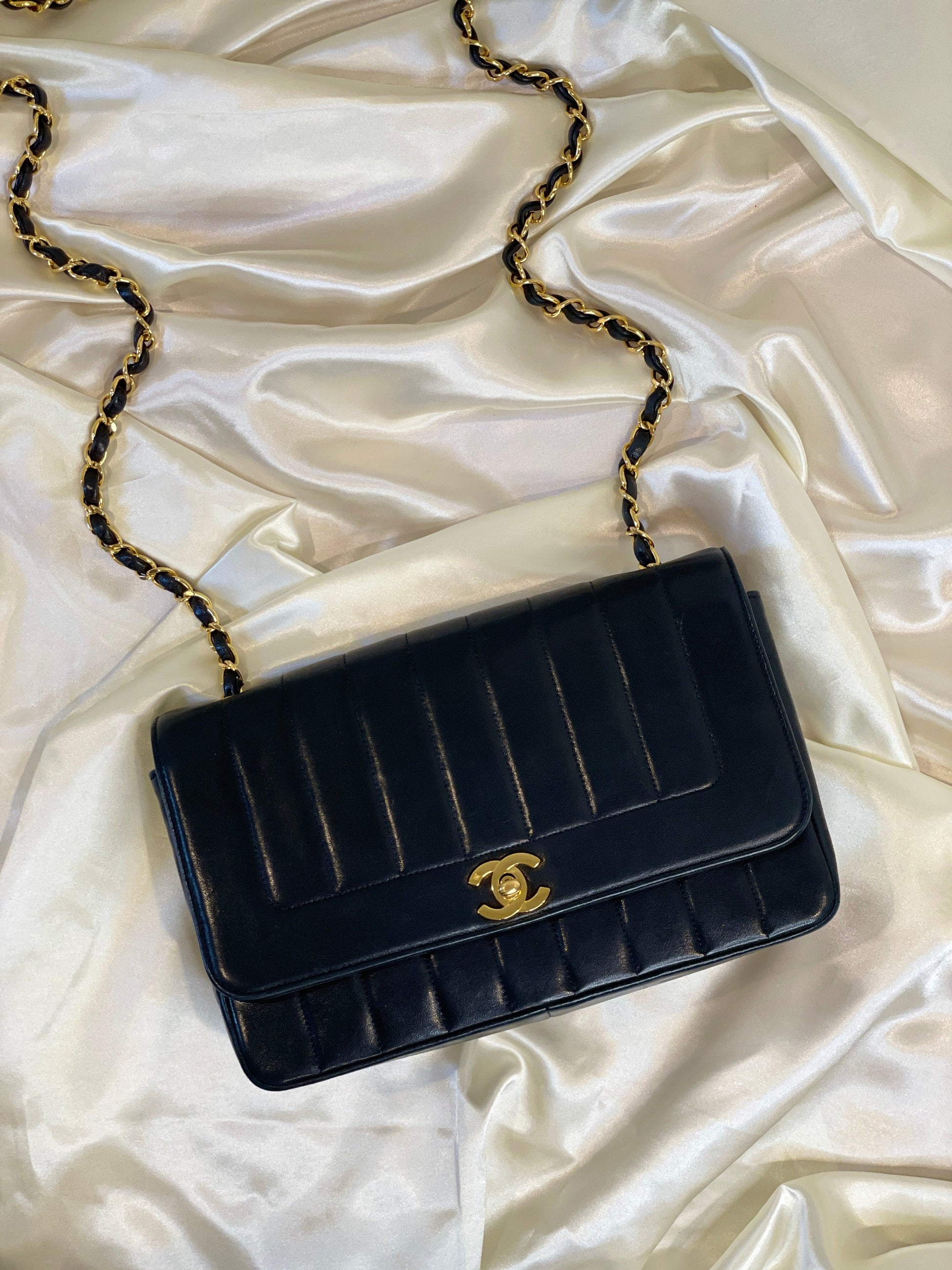 An extremely rare?Chanel gem crafted in lambskin, with vertical quilting and 24kt gold plated hardware. Exact bag in this condition currently?online for 6000+. Lambskin is nice and soft.