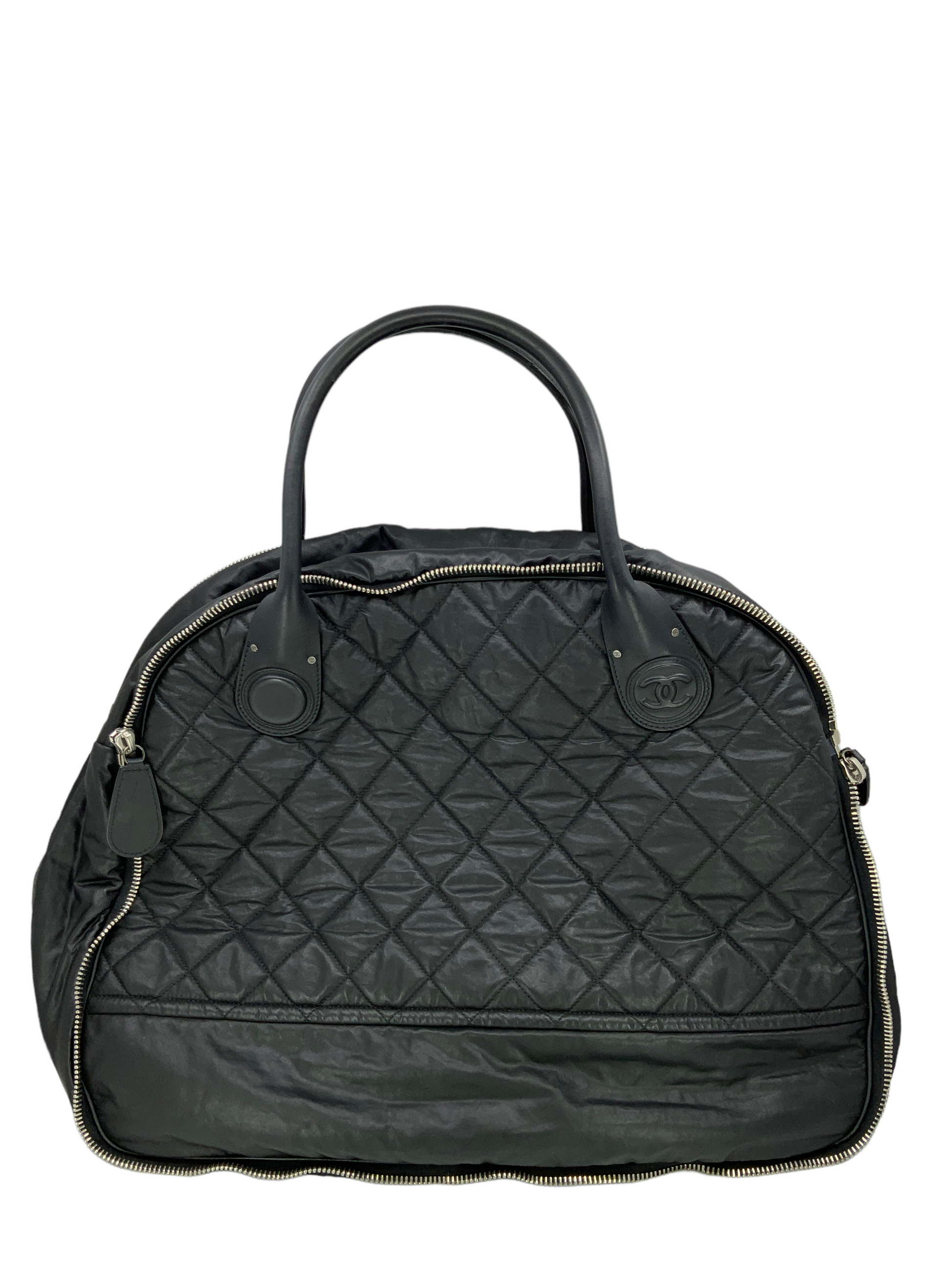 Travel in style with this Chanel Vertical Sport Large Weekender Bag beautifullycrafted from black diamond quilted leatherand silver-tone hardware. It featuresadual rolled leather topwith a signature 'CC'logo at the bottom of the handle and alarge bottom zip compartment. This ultra-spacious, light-weight travel companion will hold all your essentials with ease!Shop designer handbags by Chanelat.