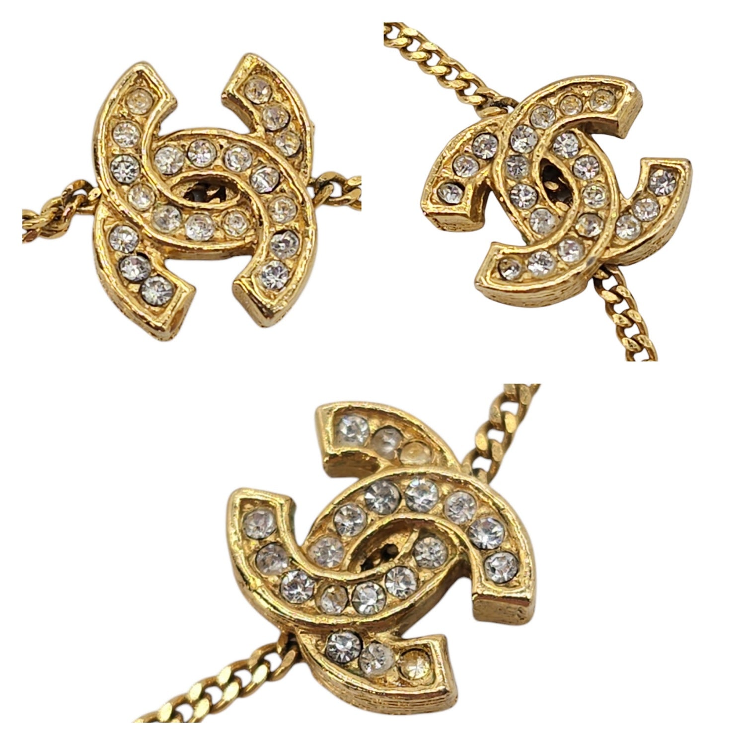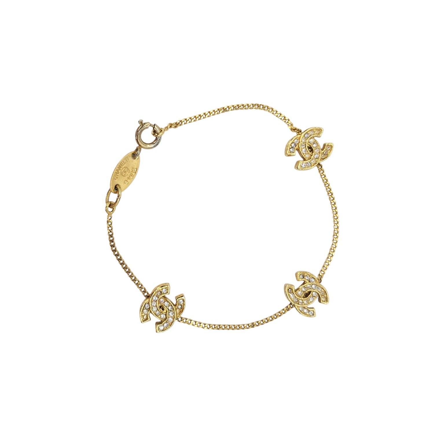 CHANEL Vintage Coco Mark 1982 CC Rhinestone Station Bracelet