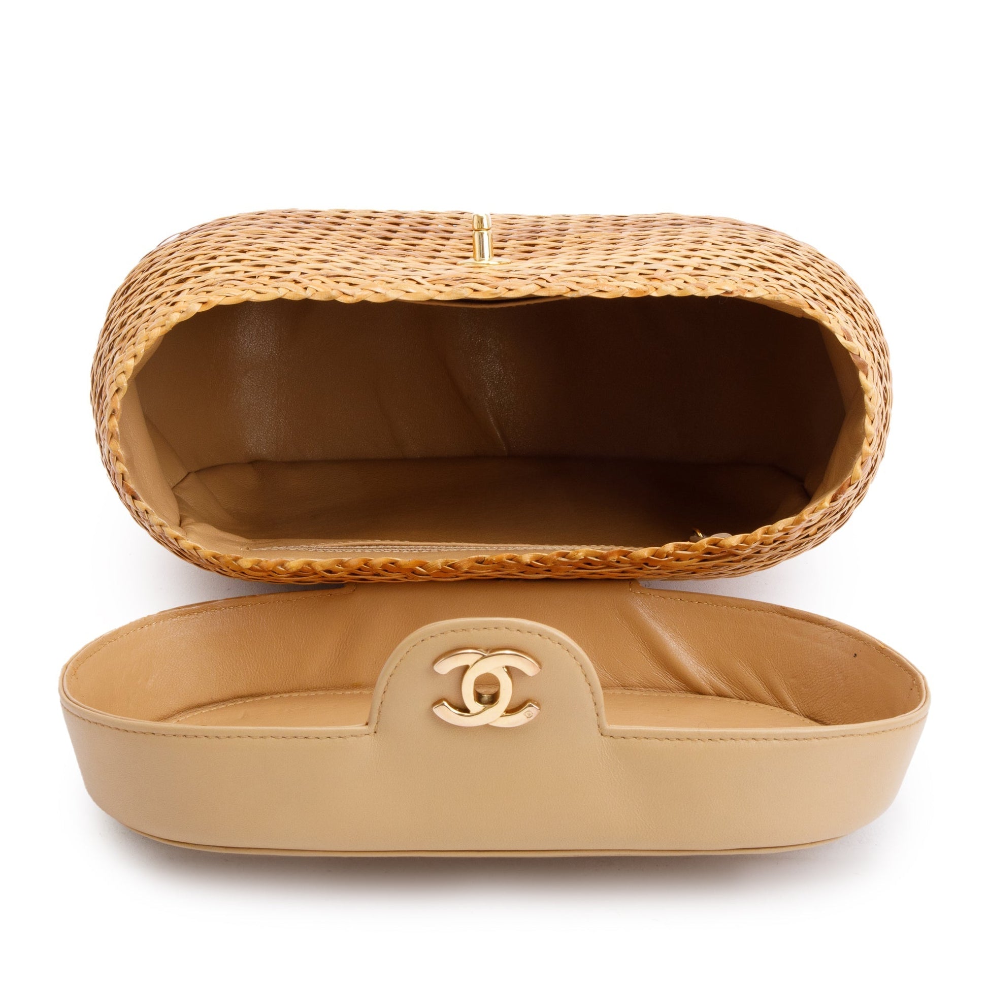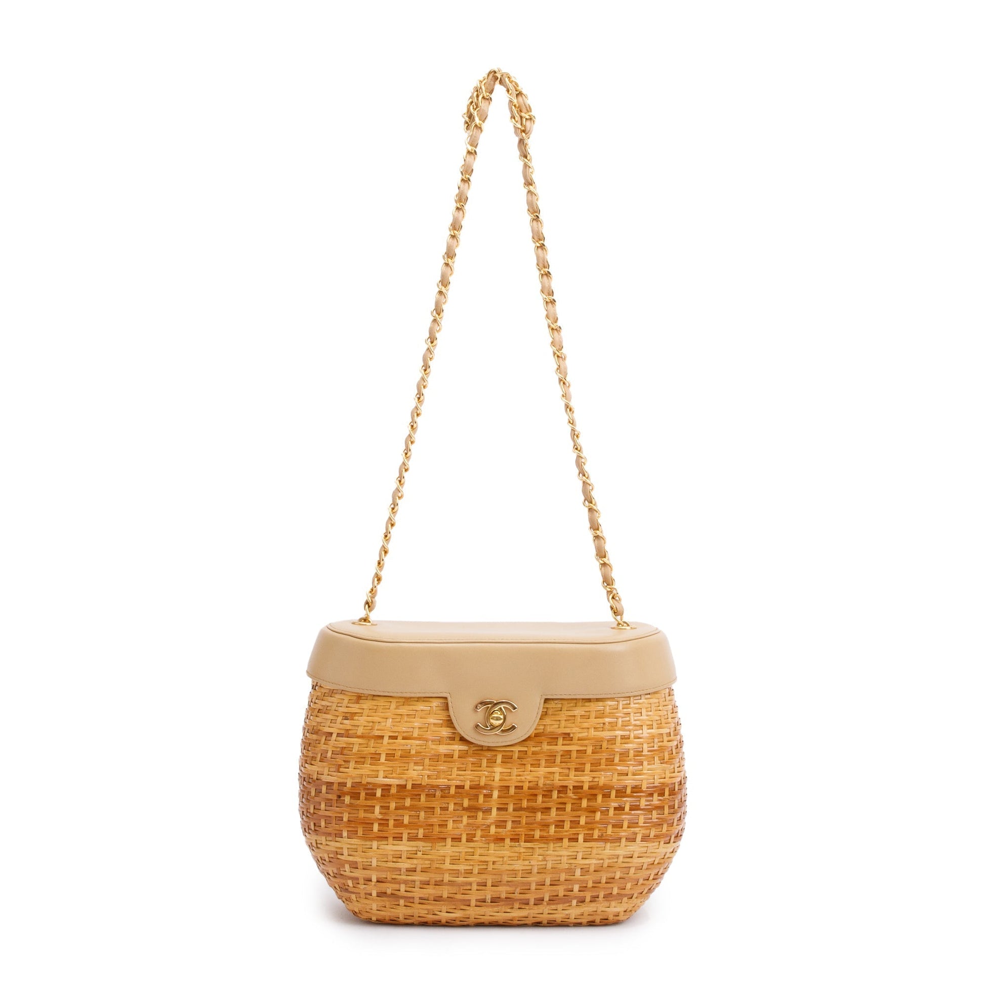 Chanel Vintage Beige Lambskin Leather Wicker Basket Bag w/ Authenticity Card