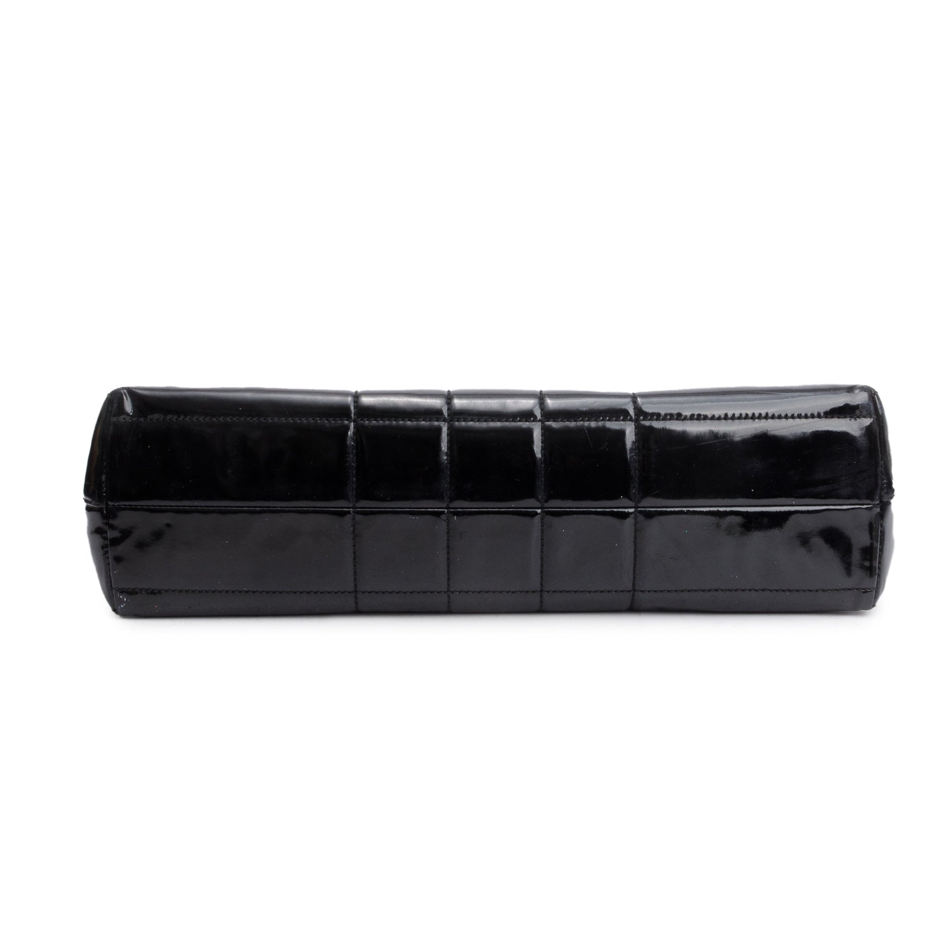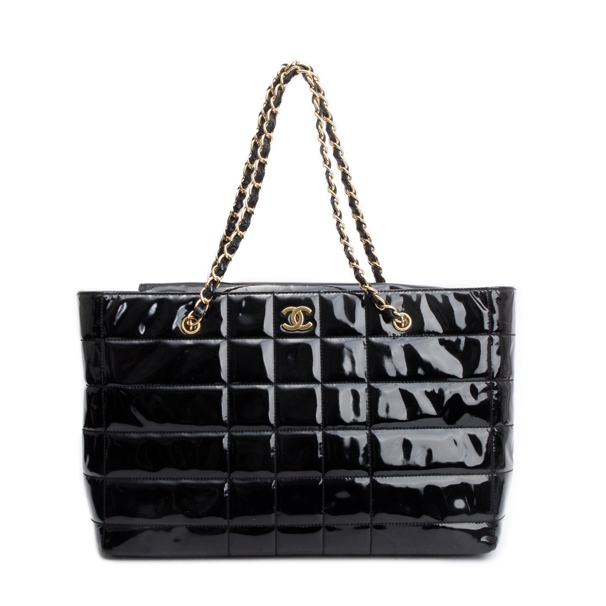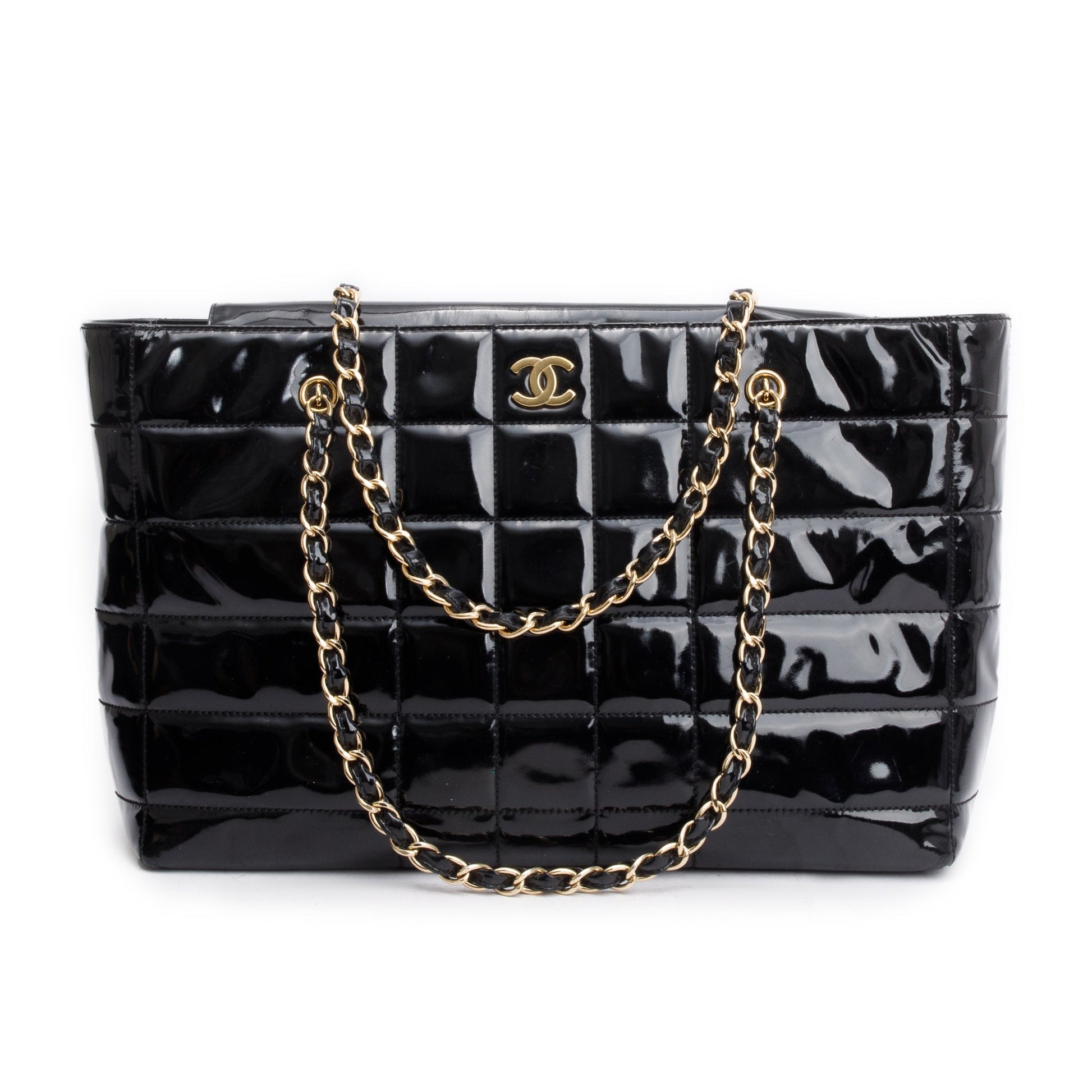 Chanel Vintage Black Chocolate Bar Quilted Patent Leather Tote