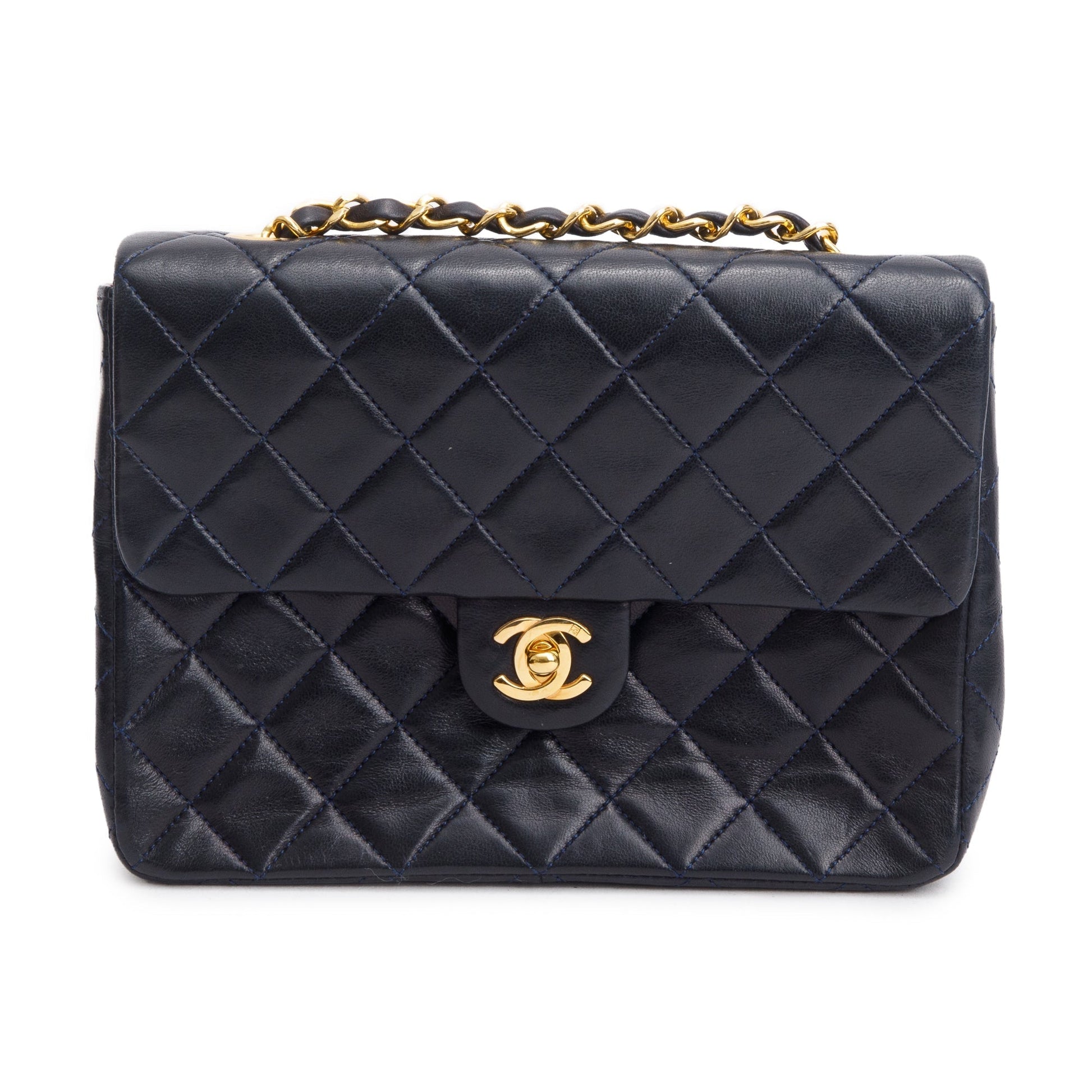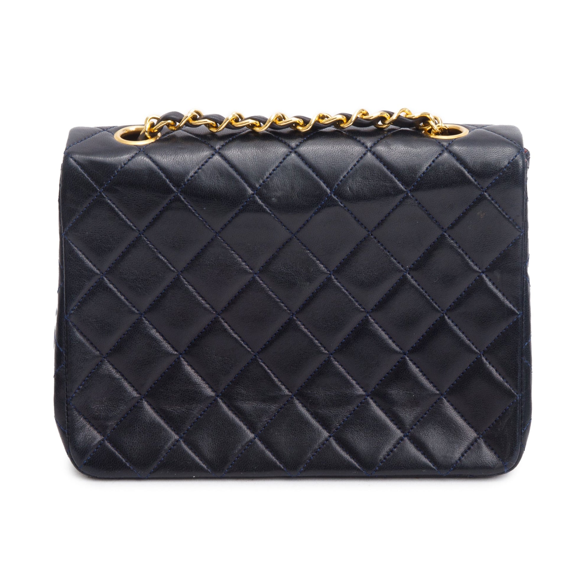 Chanel Vintage Black Leather Small Square Single Flap Bag