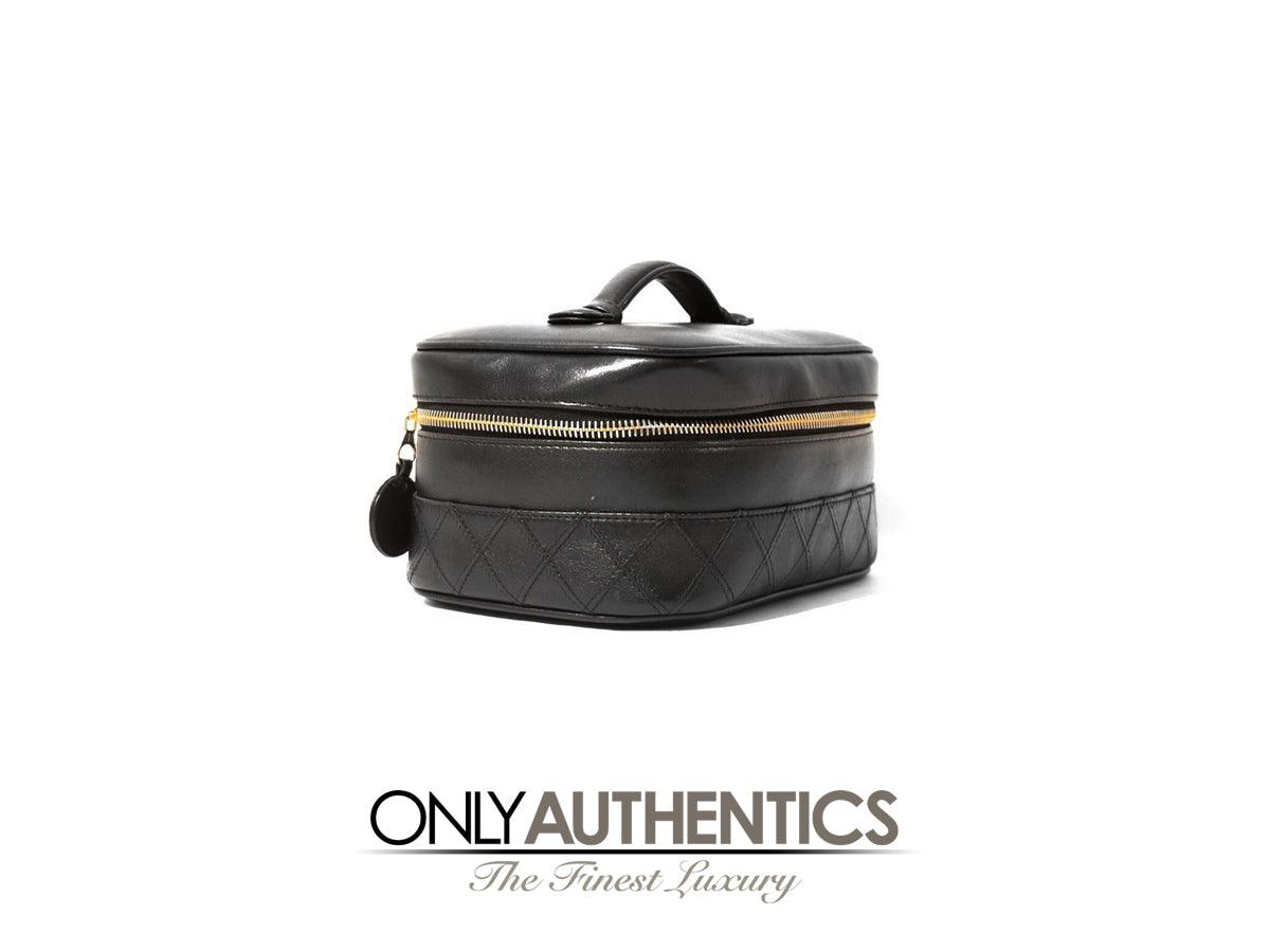 This Chanel Vintage Black Leather Vanity Case is in truly mint condition. From the mid 1990s, this piece is a timeless addition to any collection.
