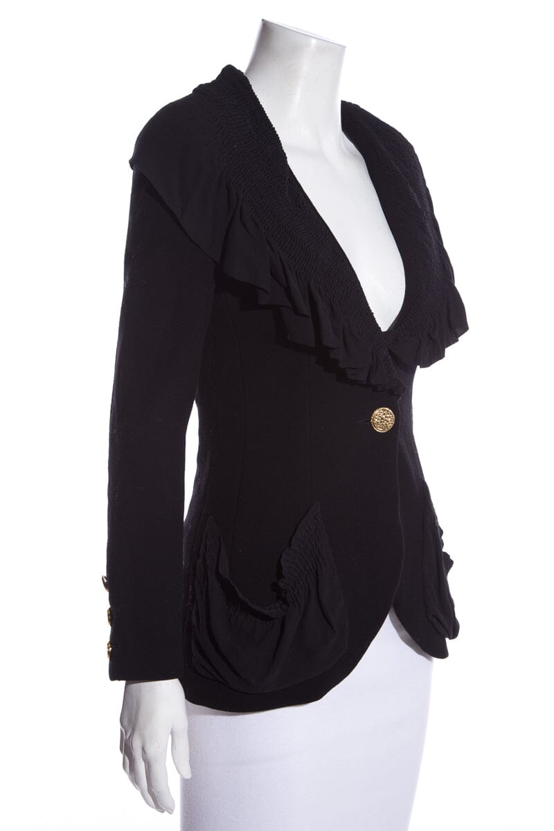 Chanel Vintage Black Ruffled Blazer SZ 34