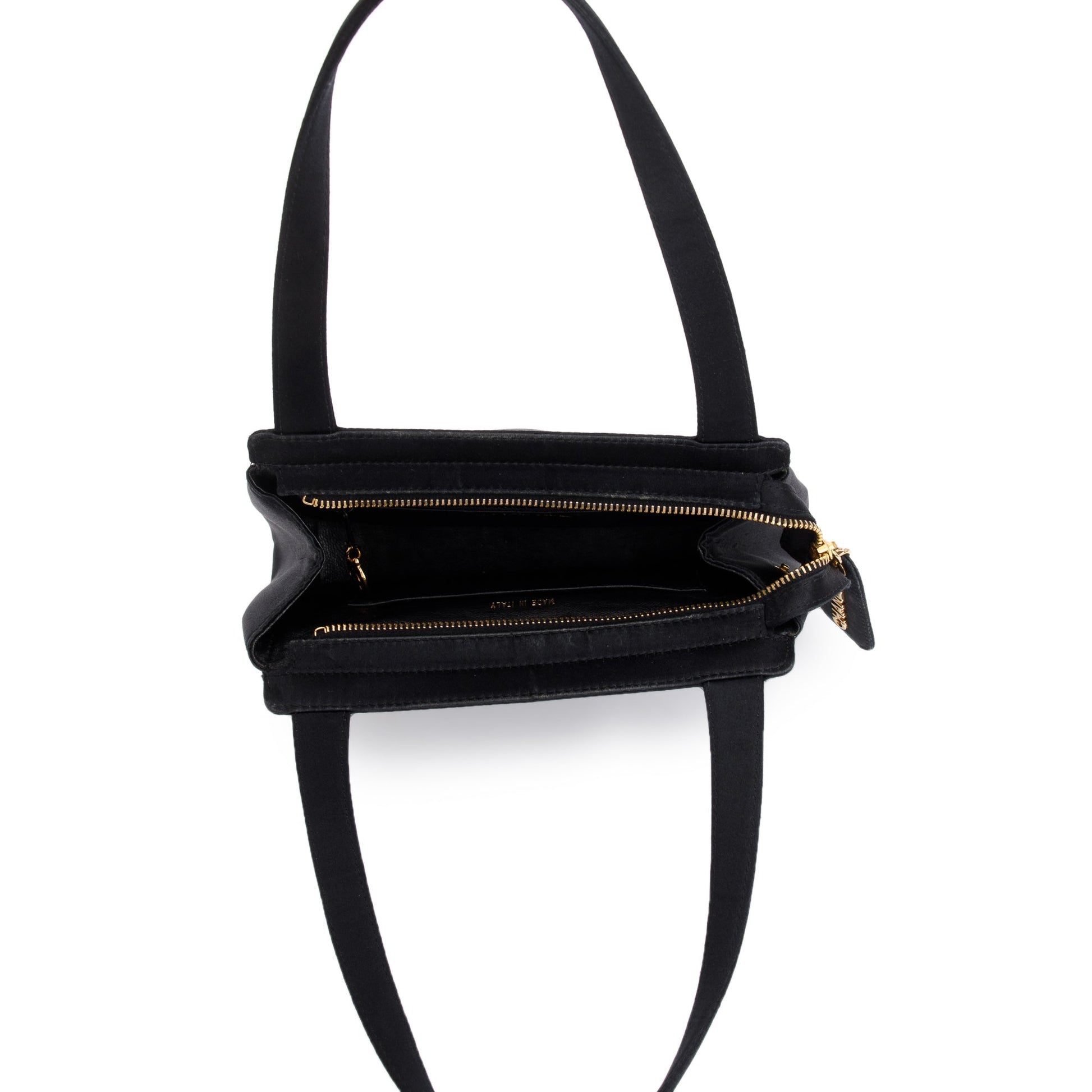 Chanel Vintage Black Satin Camelia Top Handle Bag w/ Authenticity Card