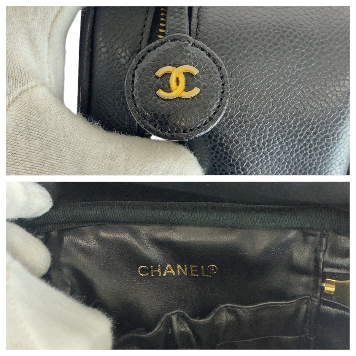 Item name : Chanel Vintage Caviar Skin Hand Vanity Bag