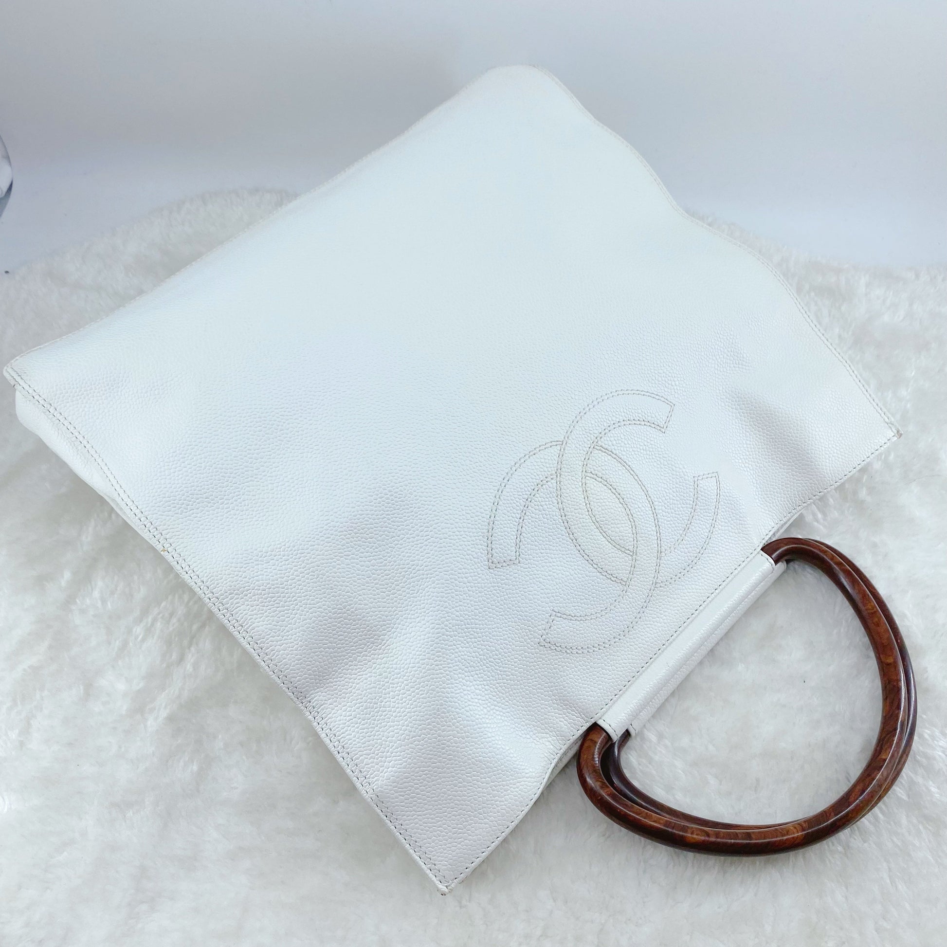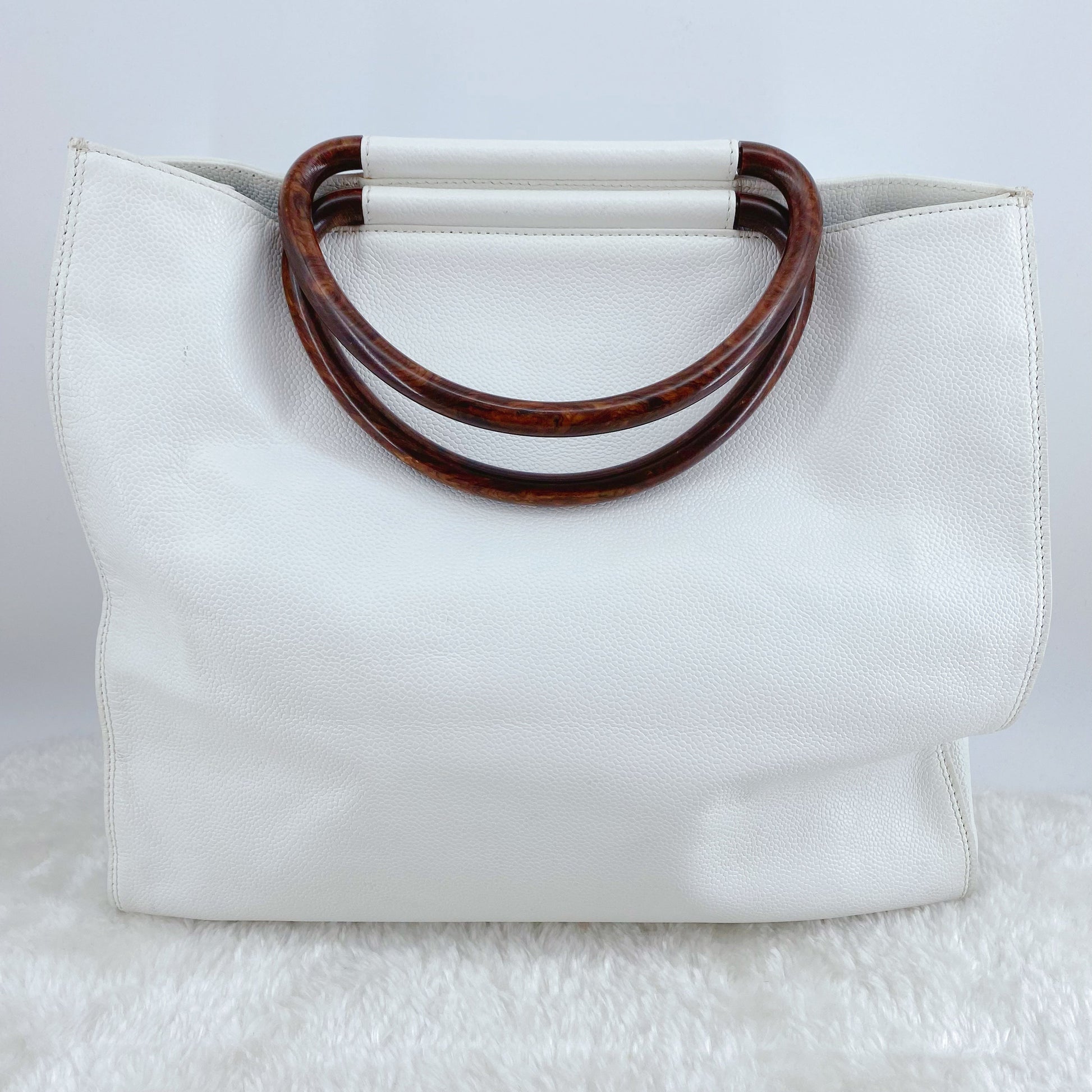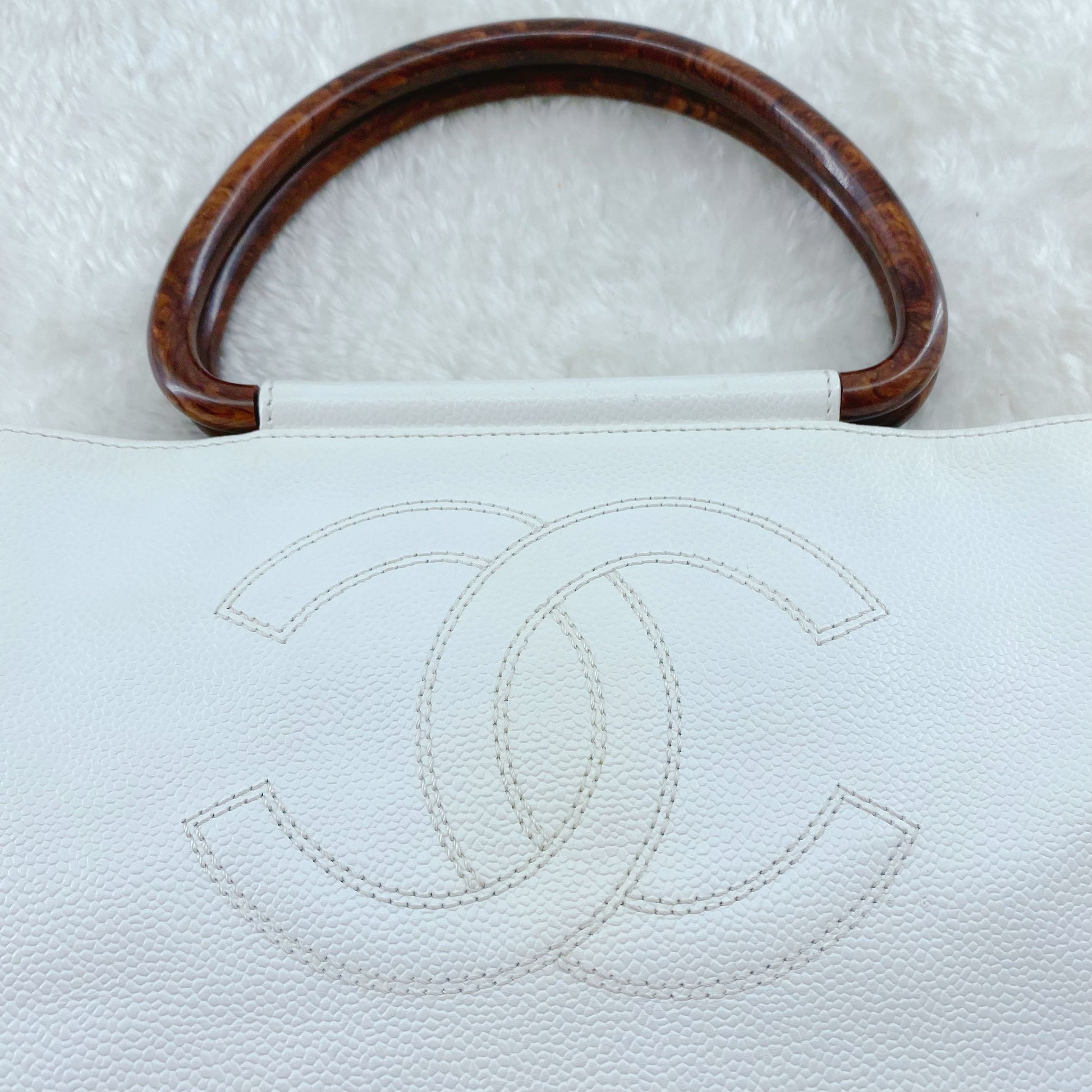 Chanel Vintage Caviar Wood Handle Tote