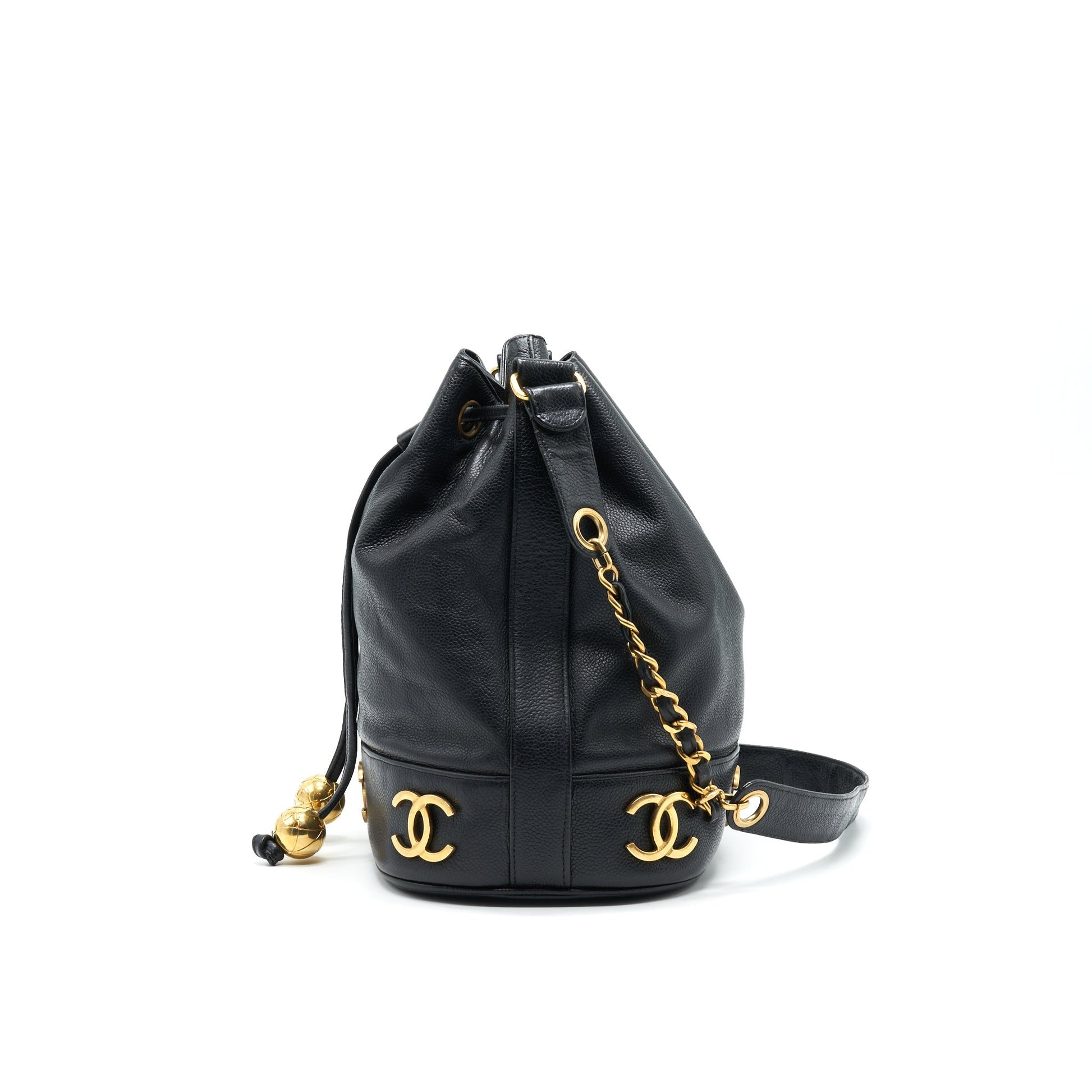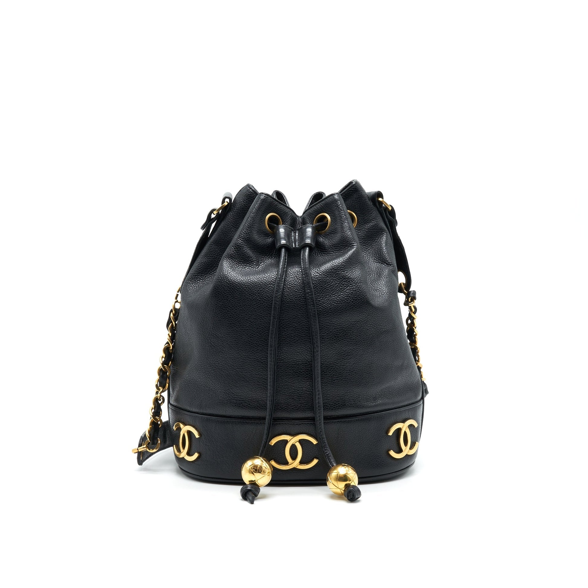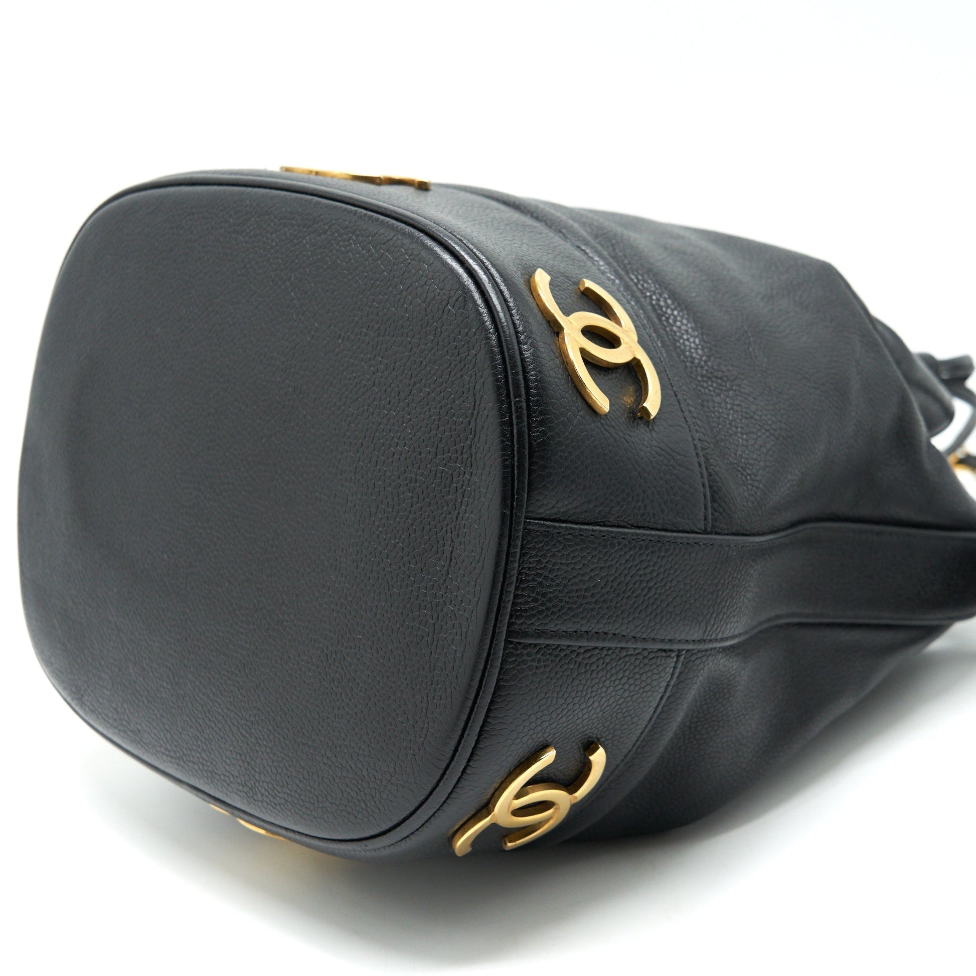CHANEL Vintage CC Logo Pearl Crush Caviar Bucket Bag Black