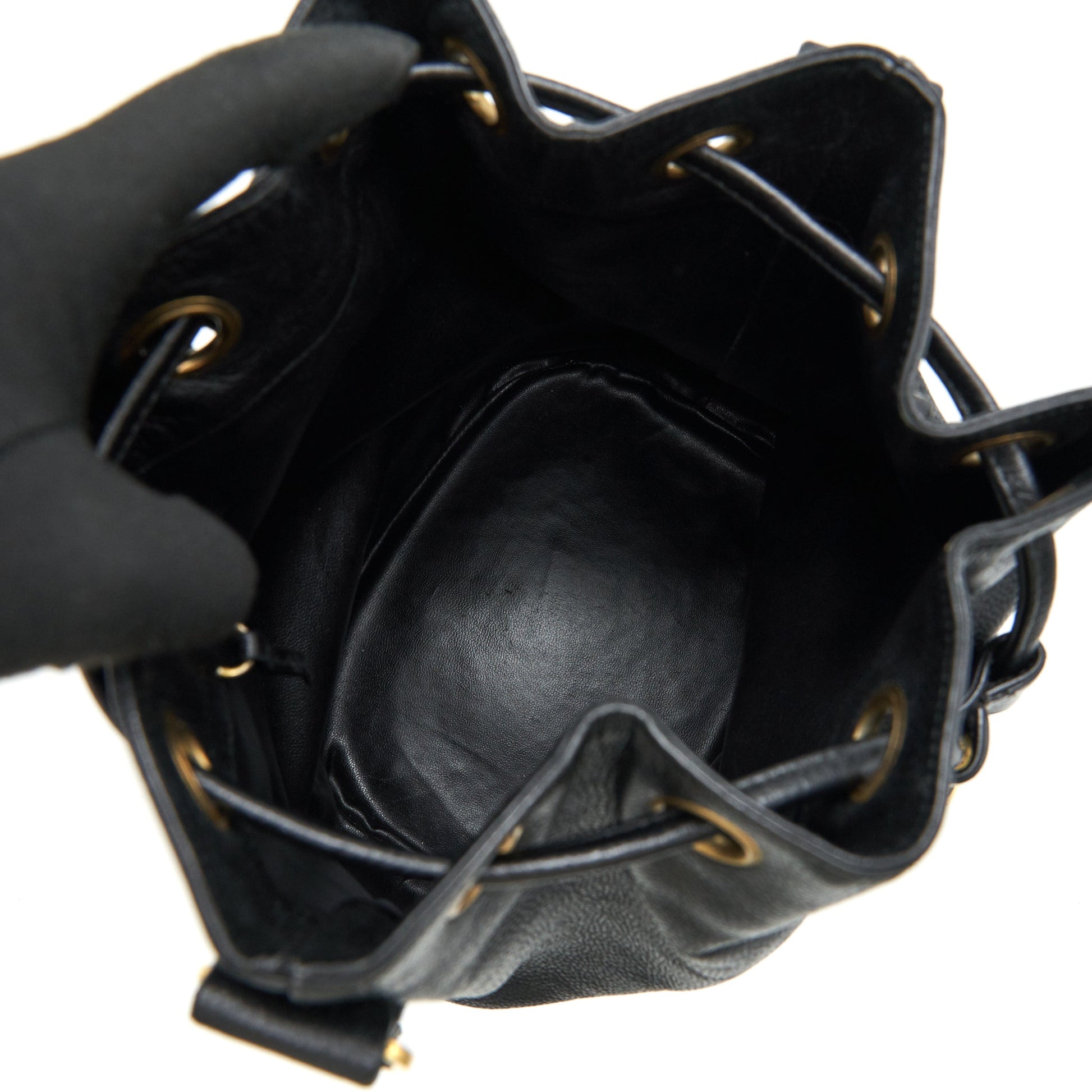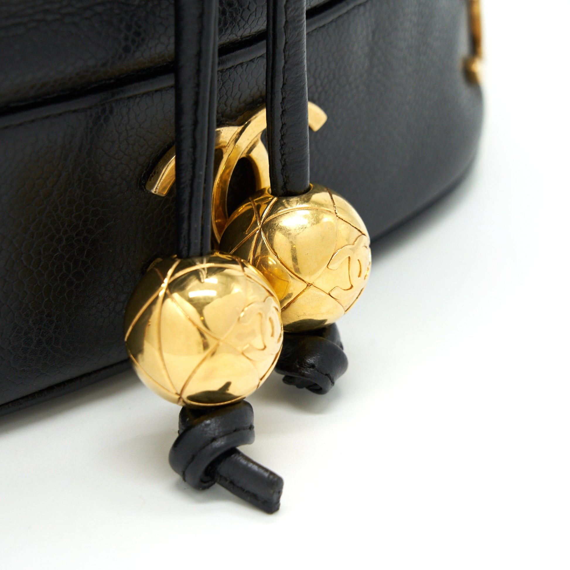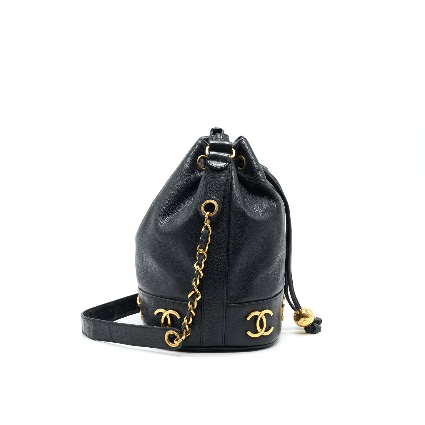 CHANEL Vintage CC Logo Pearl Crush Caviar Bucket Bag Black