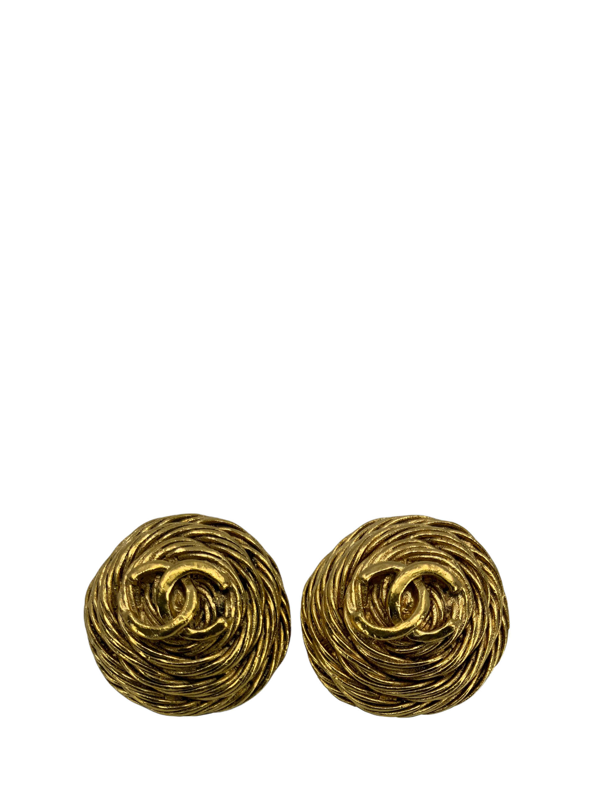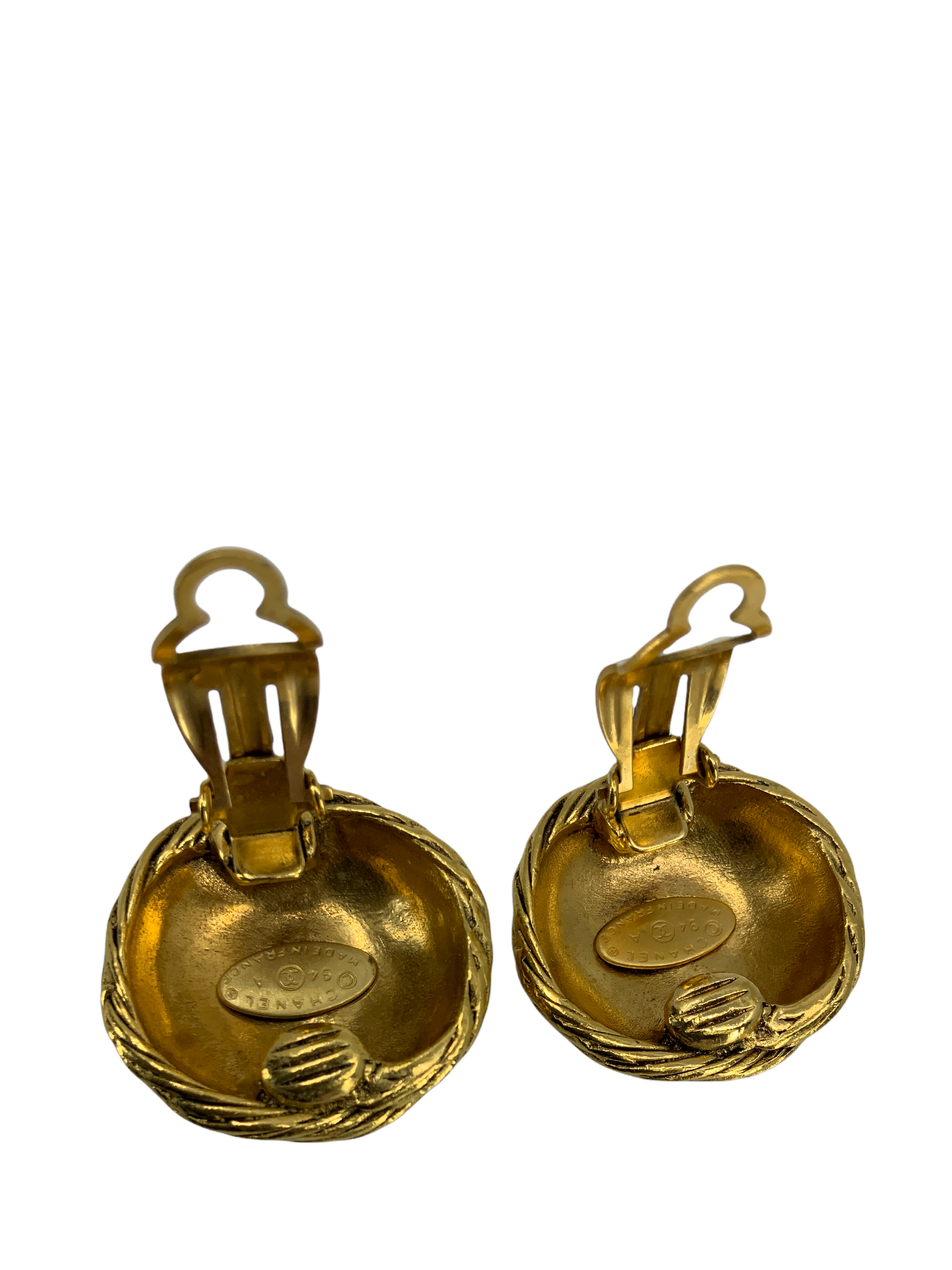 CHANEL Vintage CC Logo Round Clip On Earrings