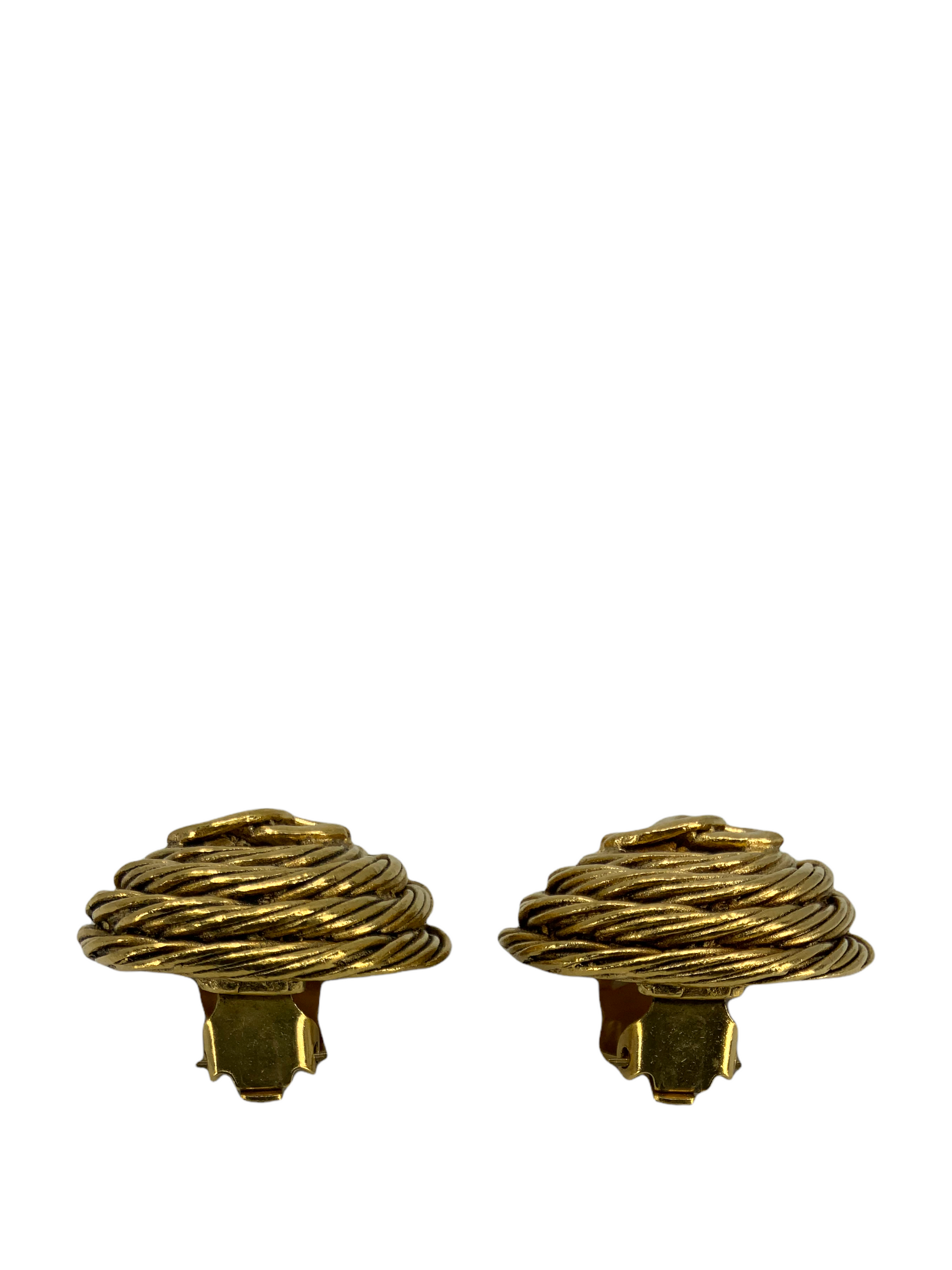 Prepare to turn heads with these CHANEL Vintage CC Logo Round Clip On Earrings. These gold-tone metal plated earrings featuresignature logo engravings andsecure clip-on closures.Perfect for day or evening wear with the timeless elegance of Chanel!