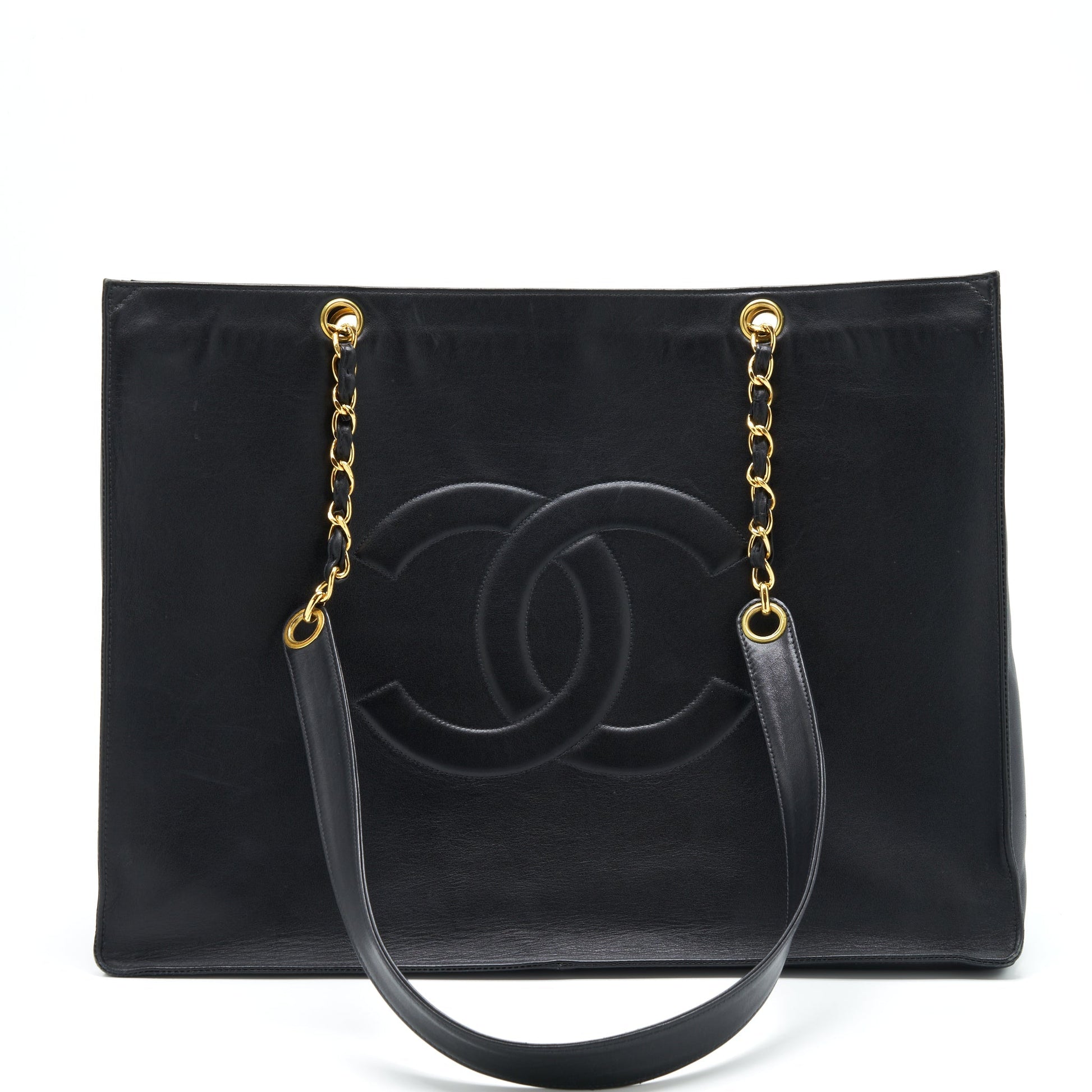 Chanel Vintage CC Timeless Shopping Tote Lambskin Black GHW