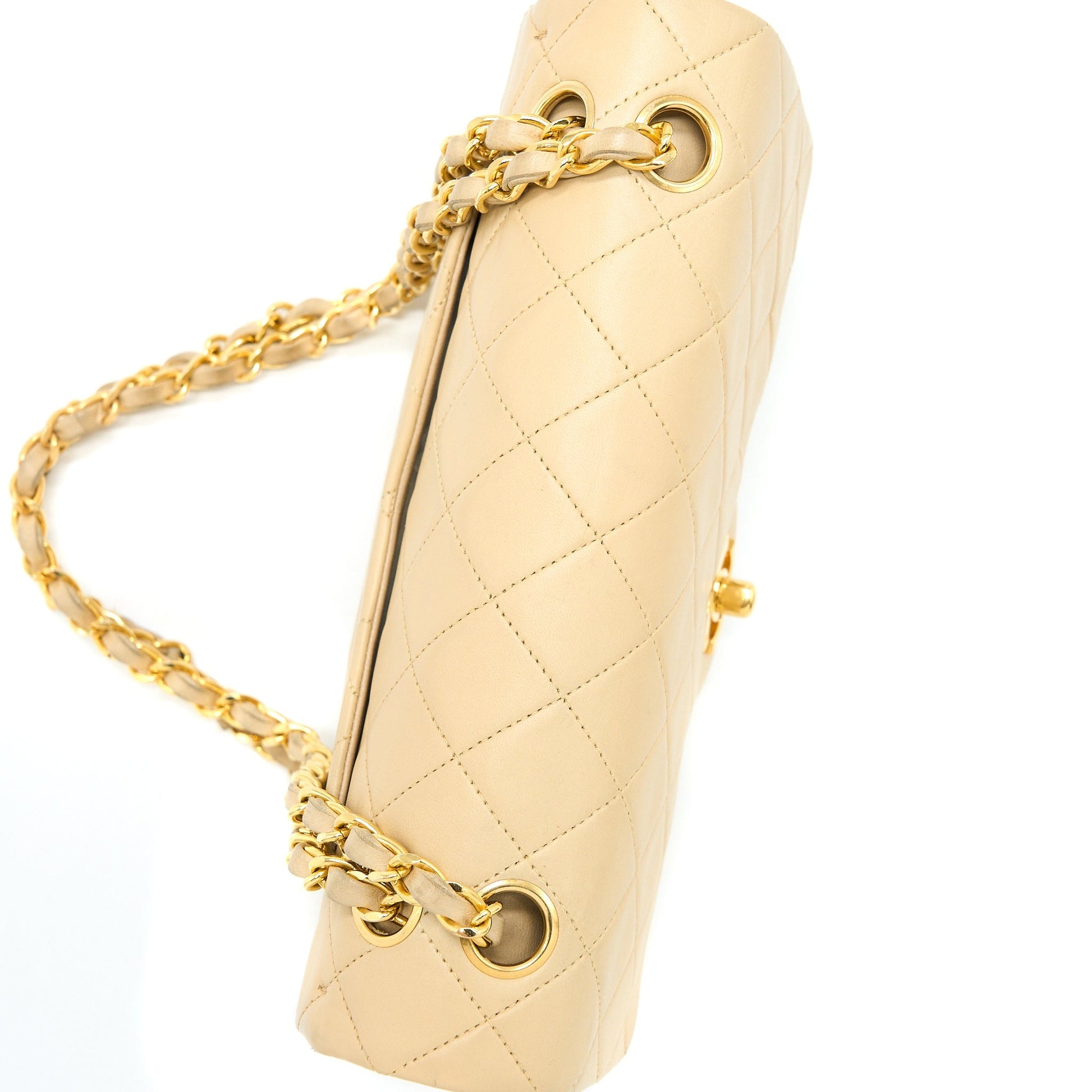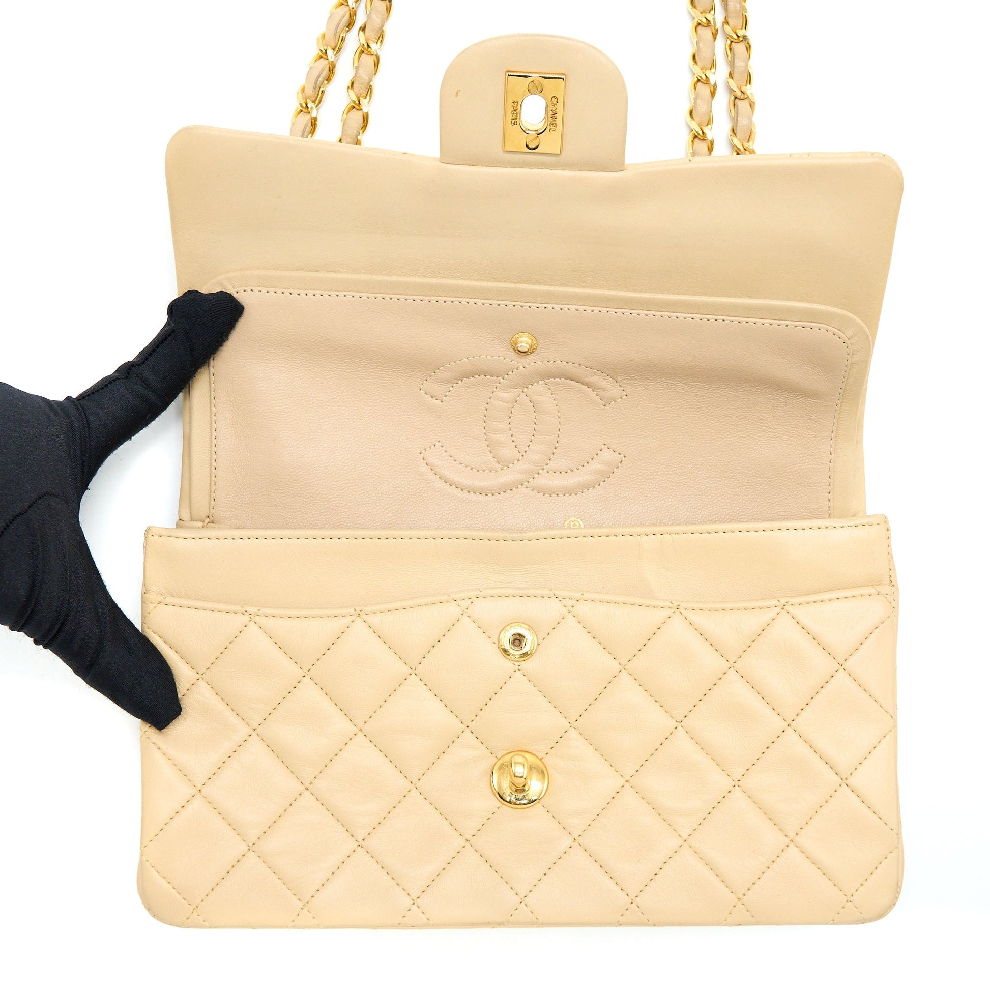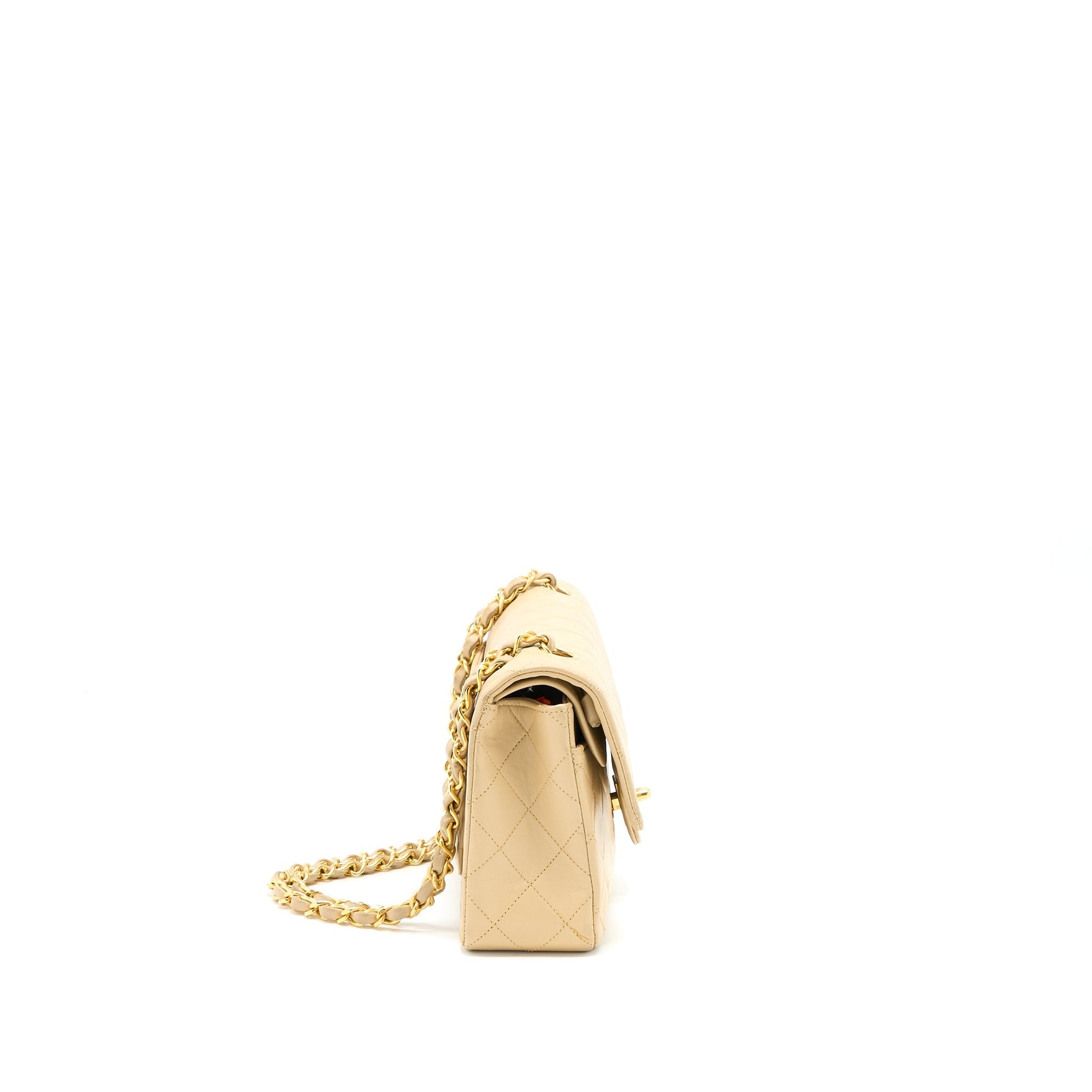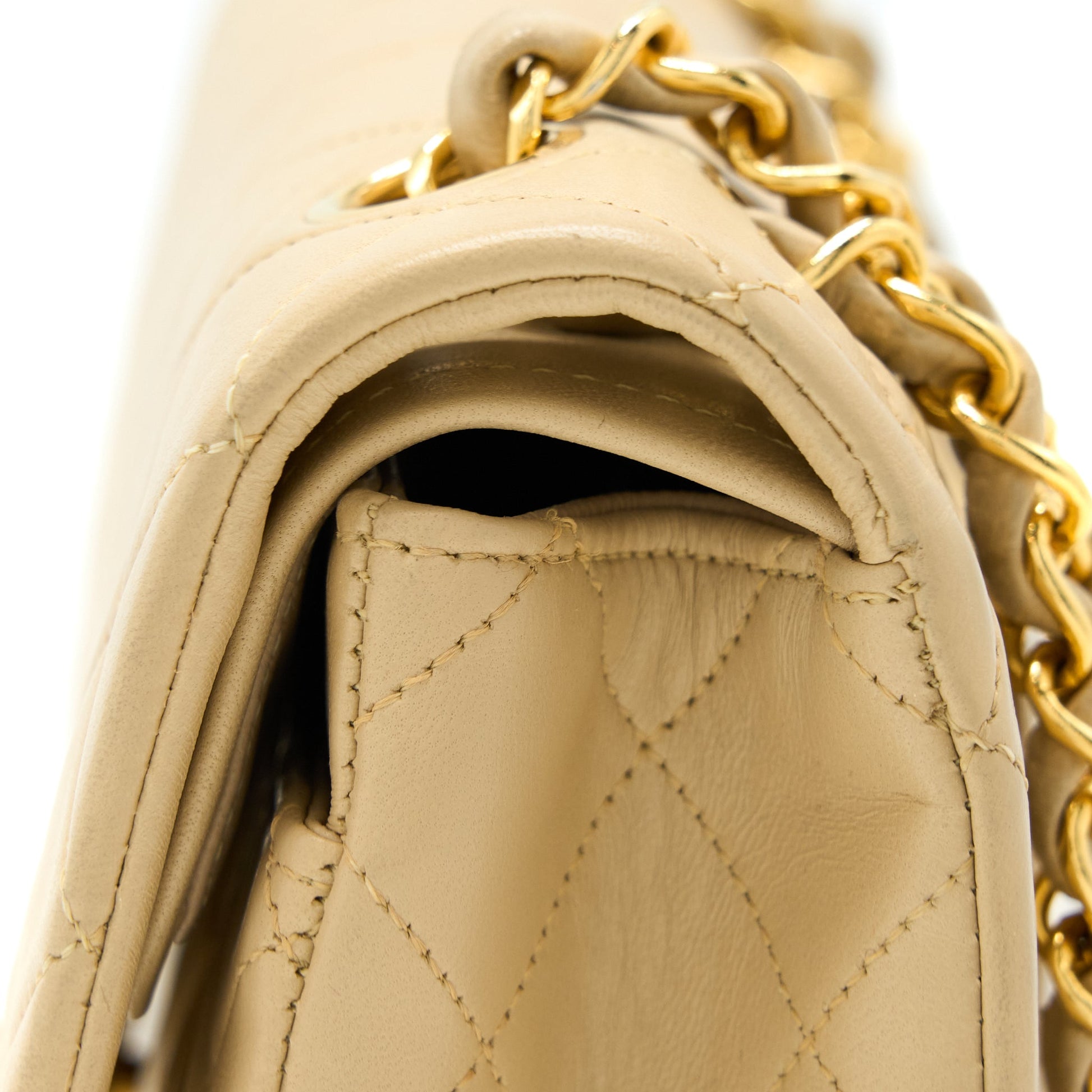 Chanel Vintage Small Classic Double Flap Bag Lambskin Beige GHW