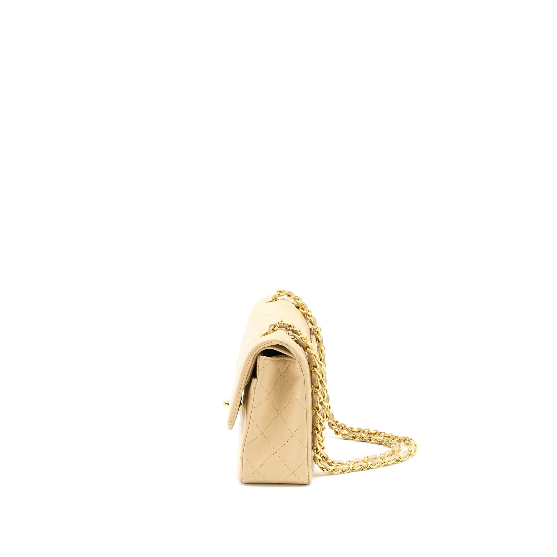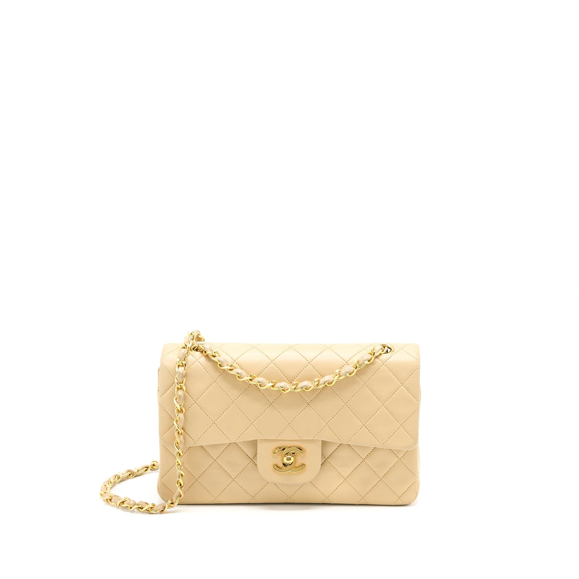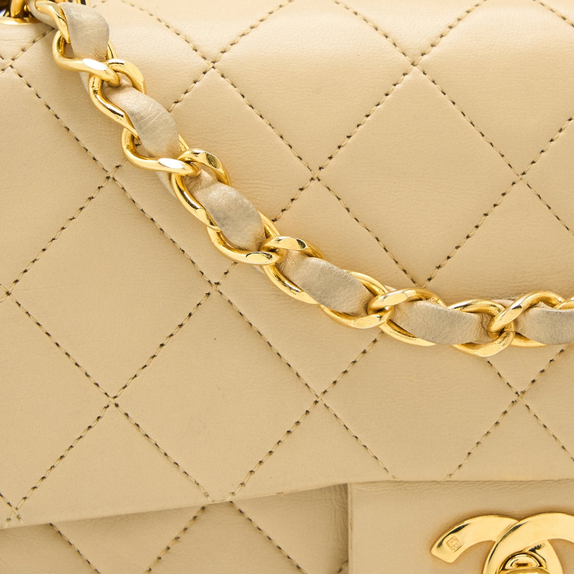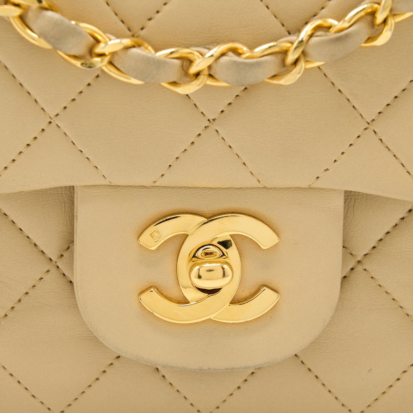 Chanel Vintage Small Classic Double Flap Bag Lambskin Beige GHW