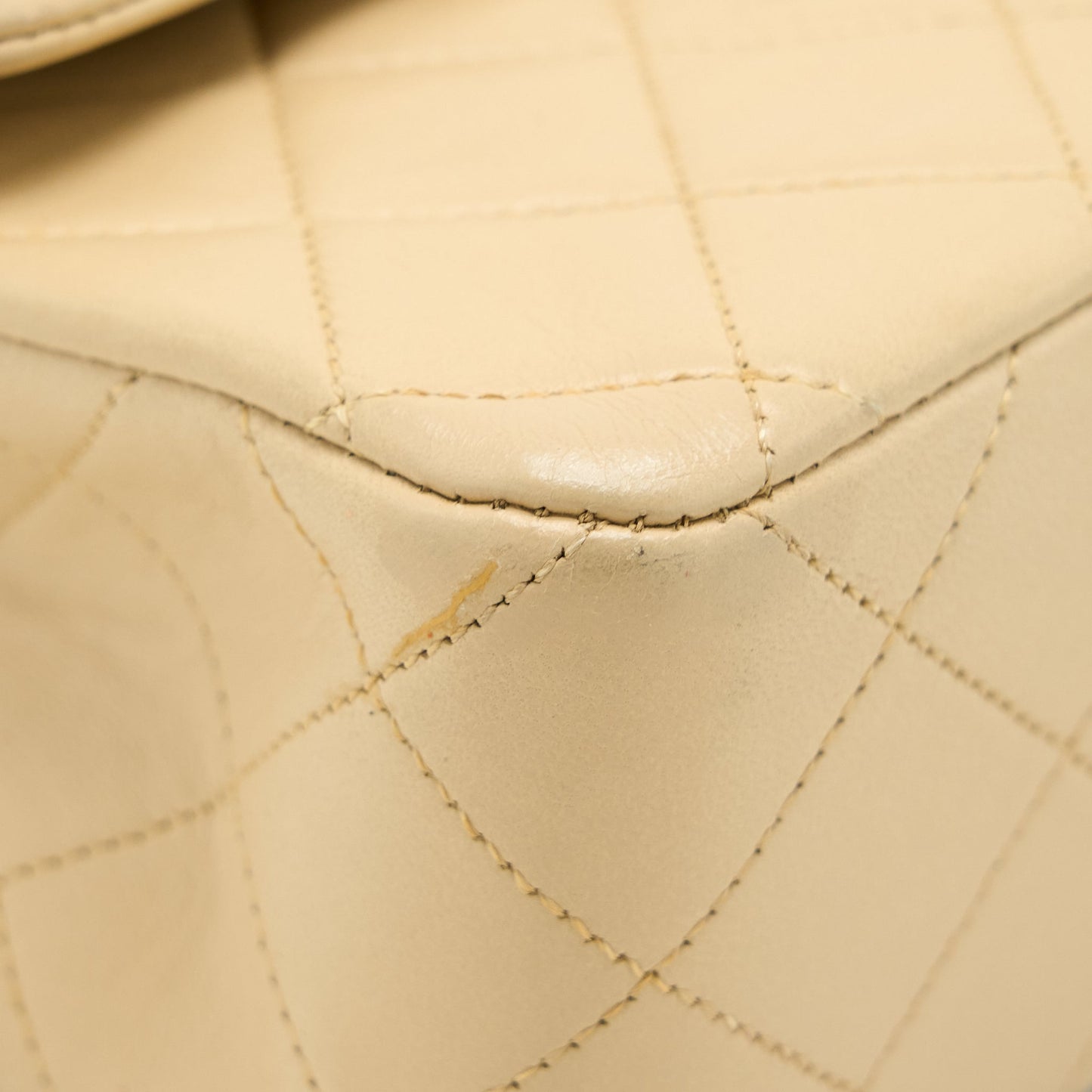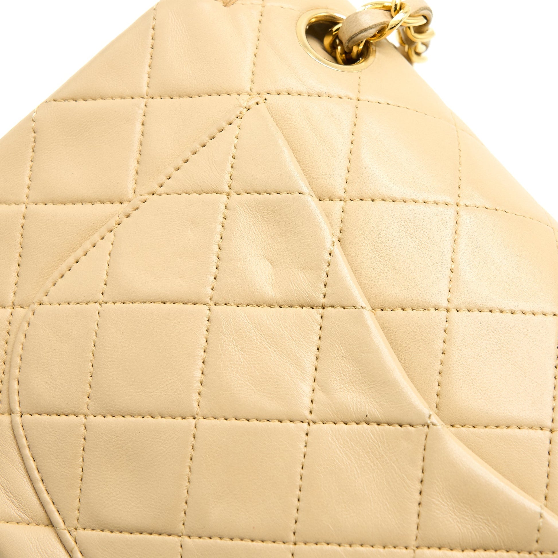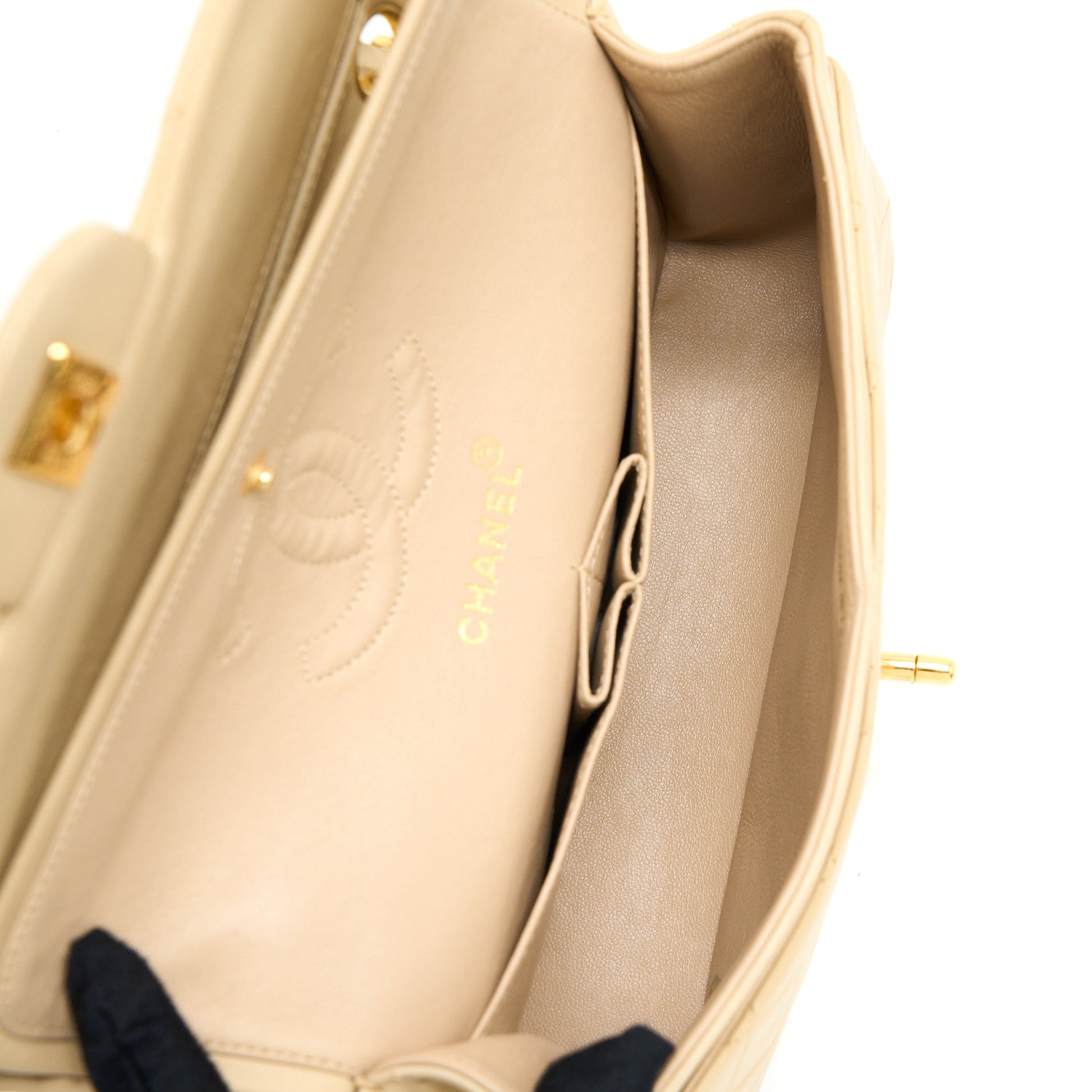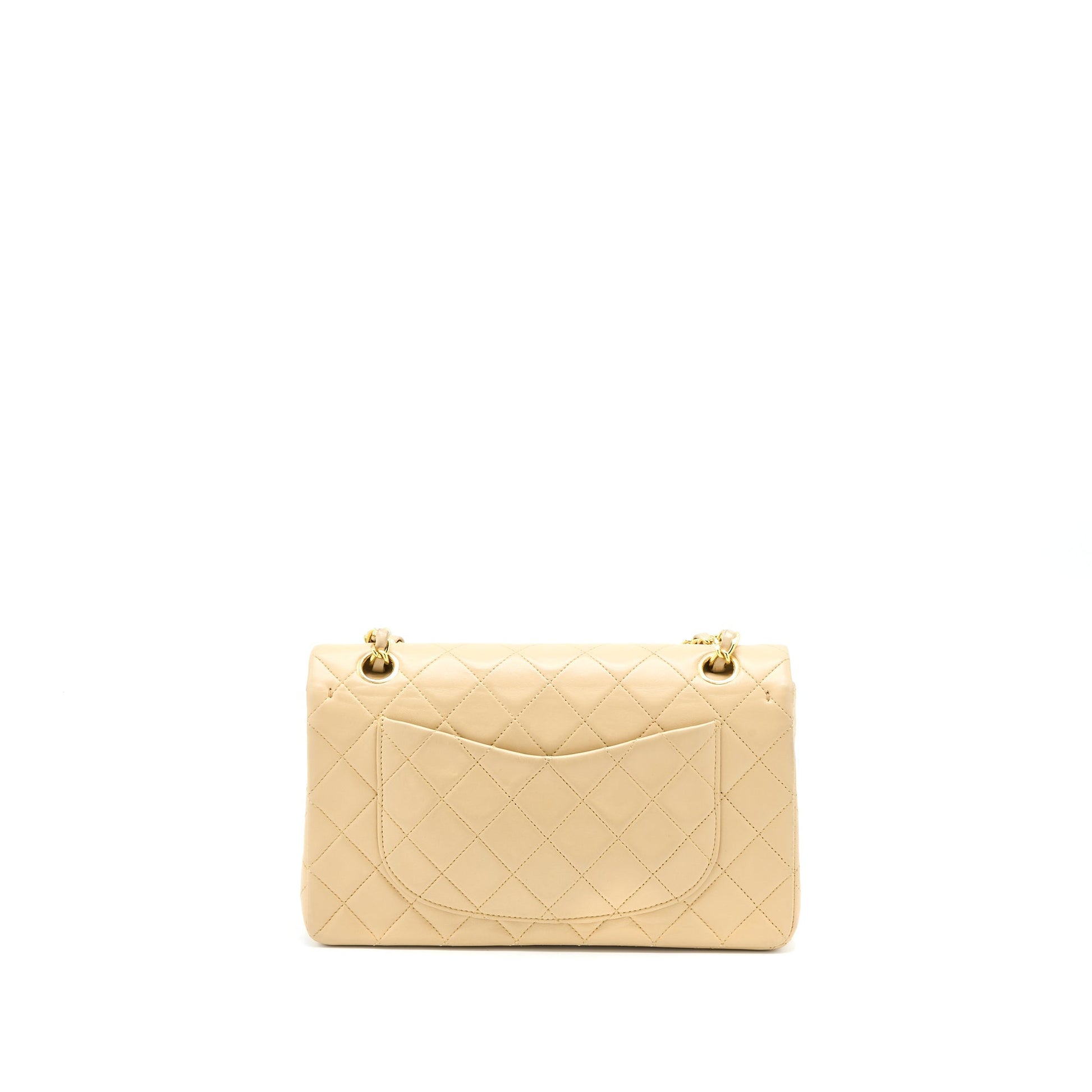Chanel Vintage Small Classic Double Flap Bag Lambskin Beige GHW