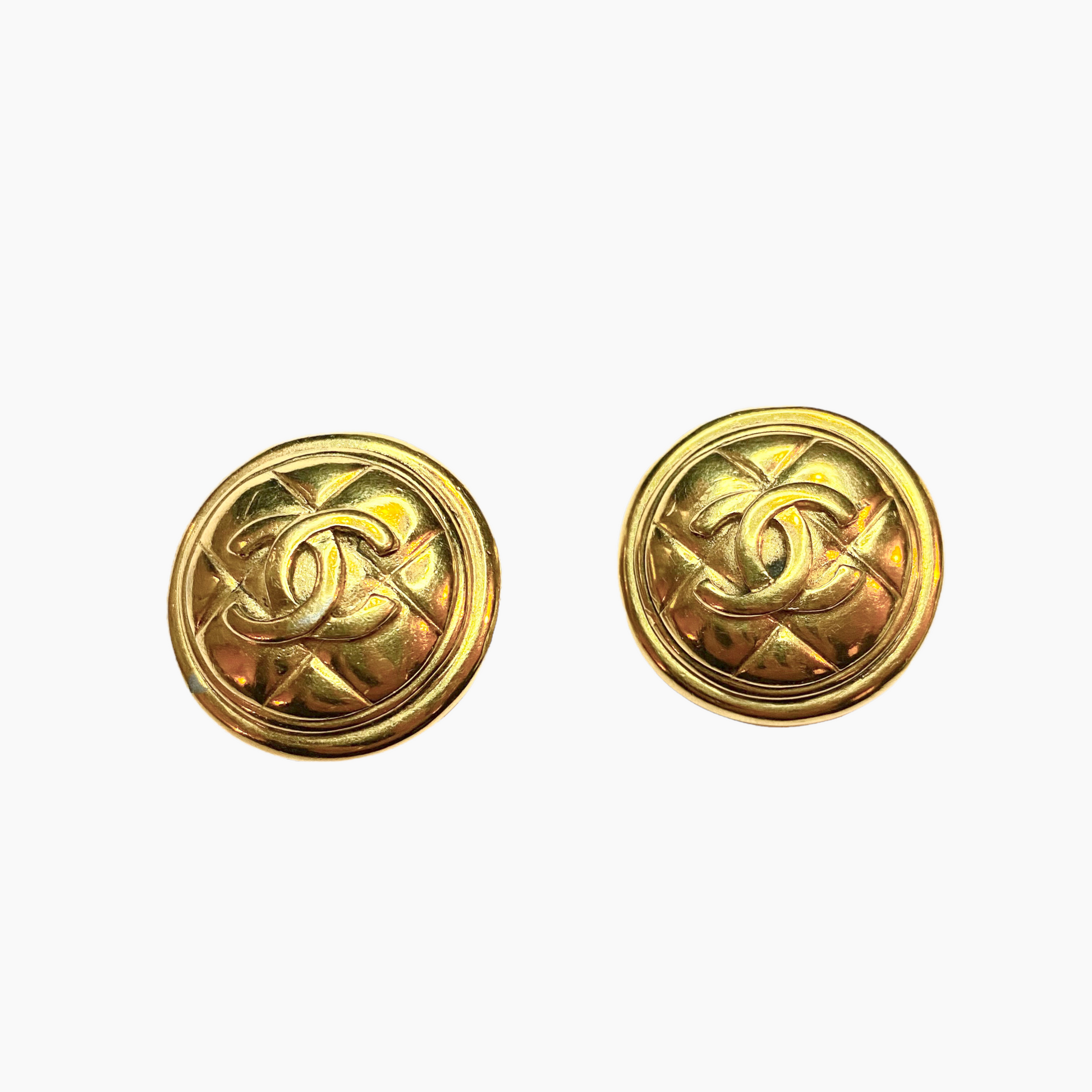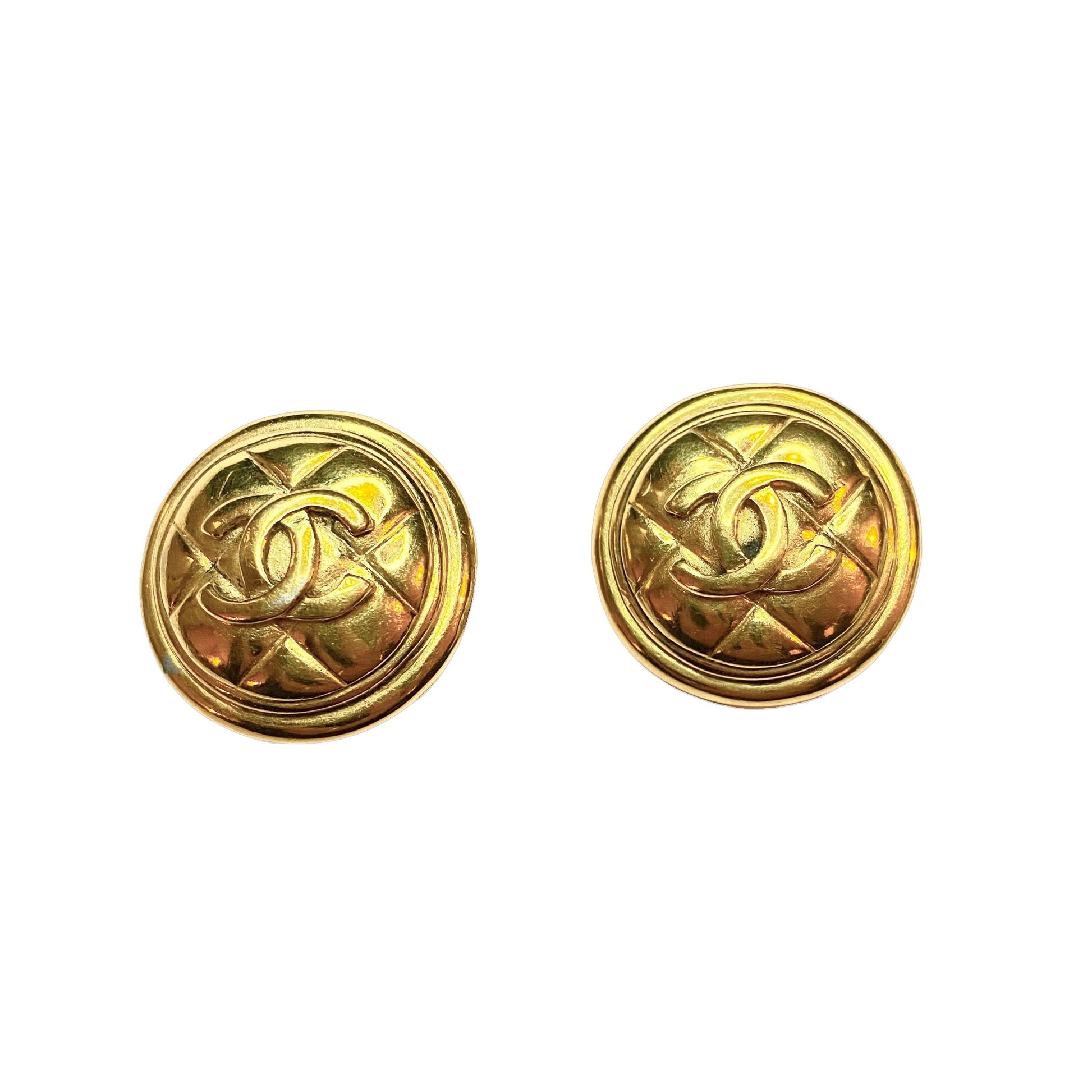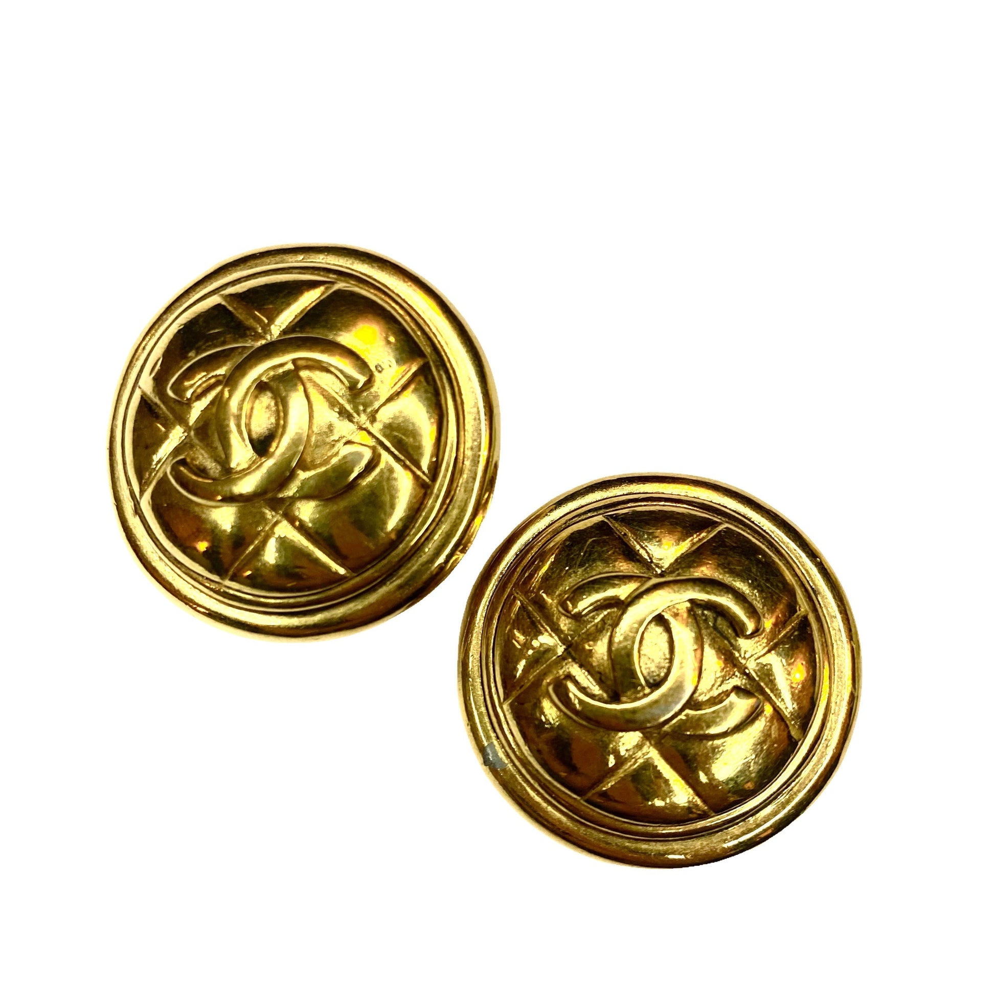 DESCRIPTION: Chanel vintage clip earrings quilted with logo