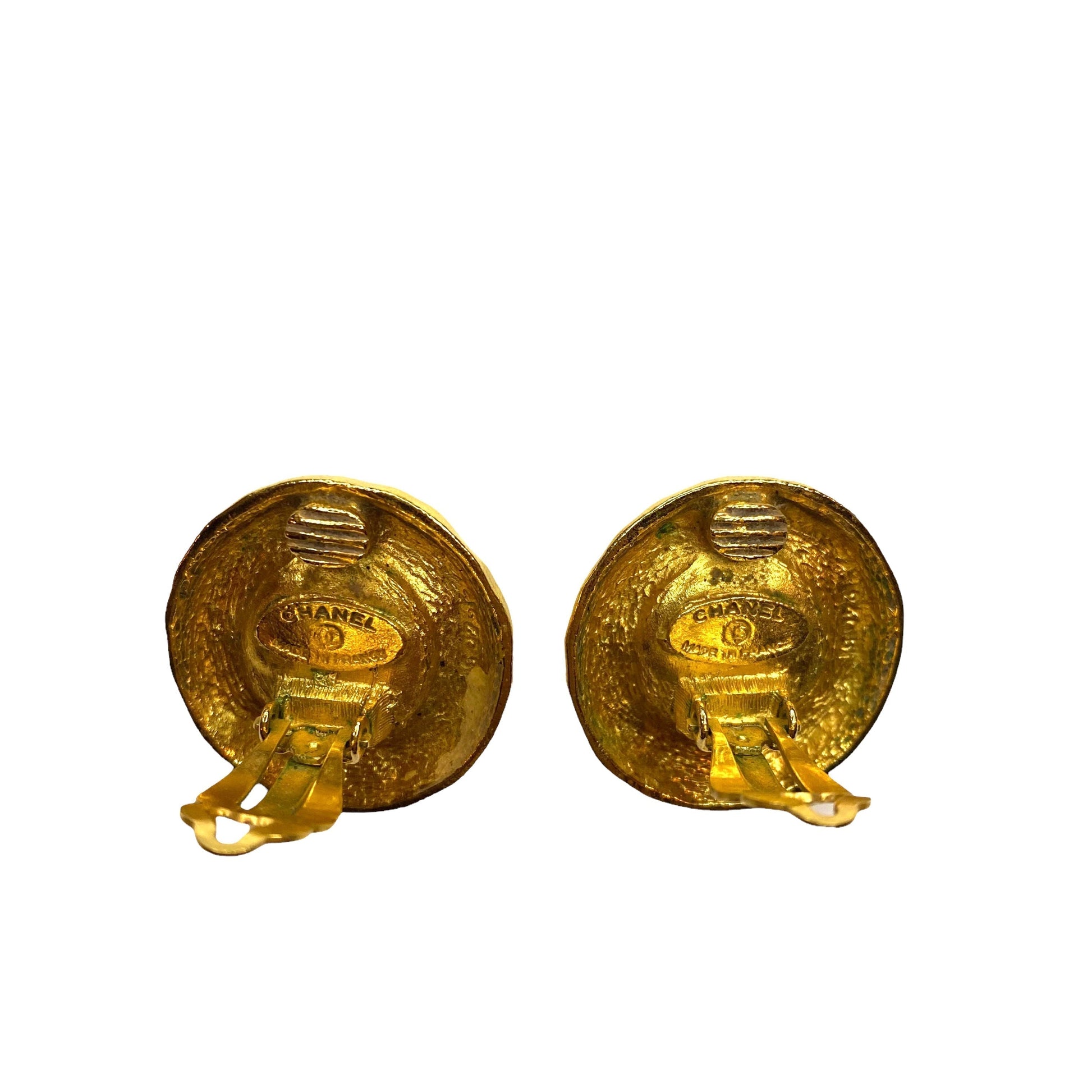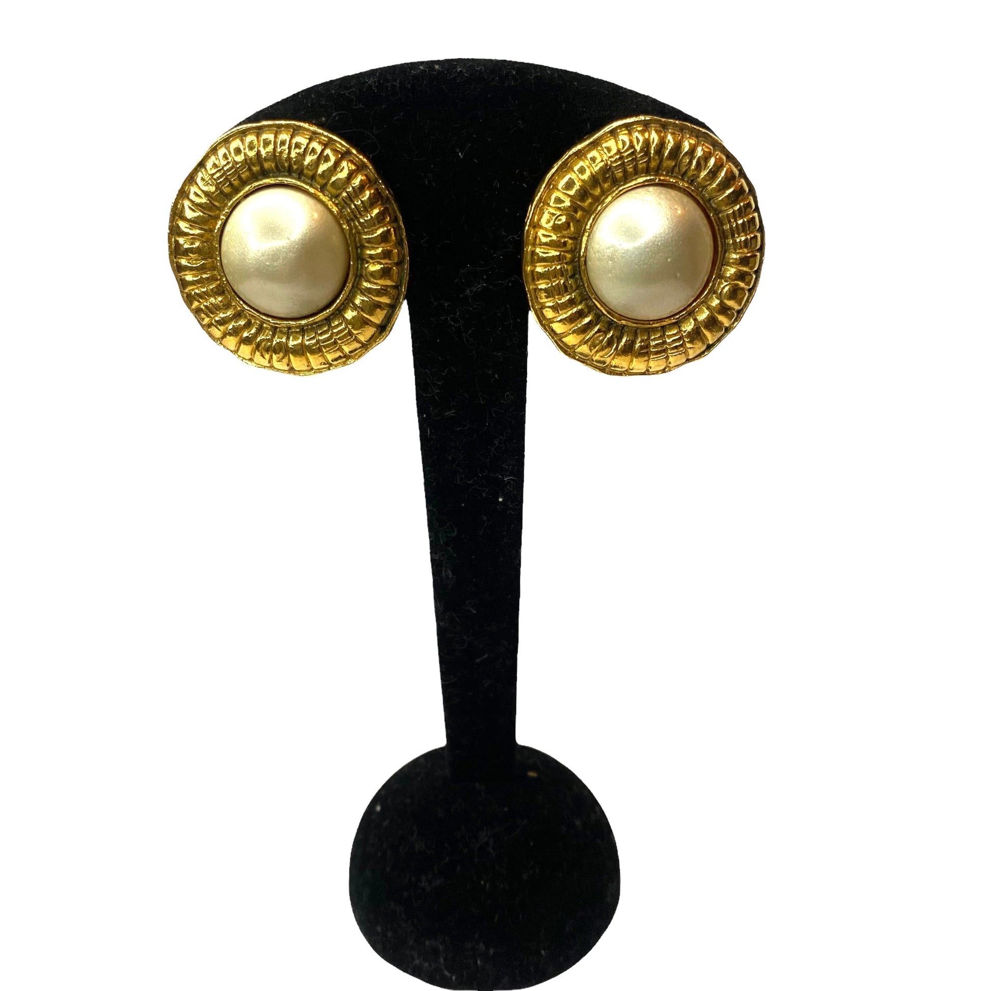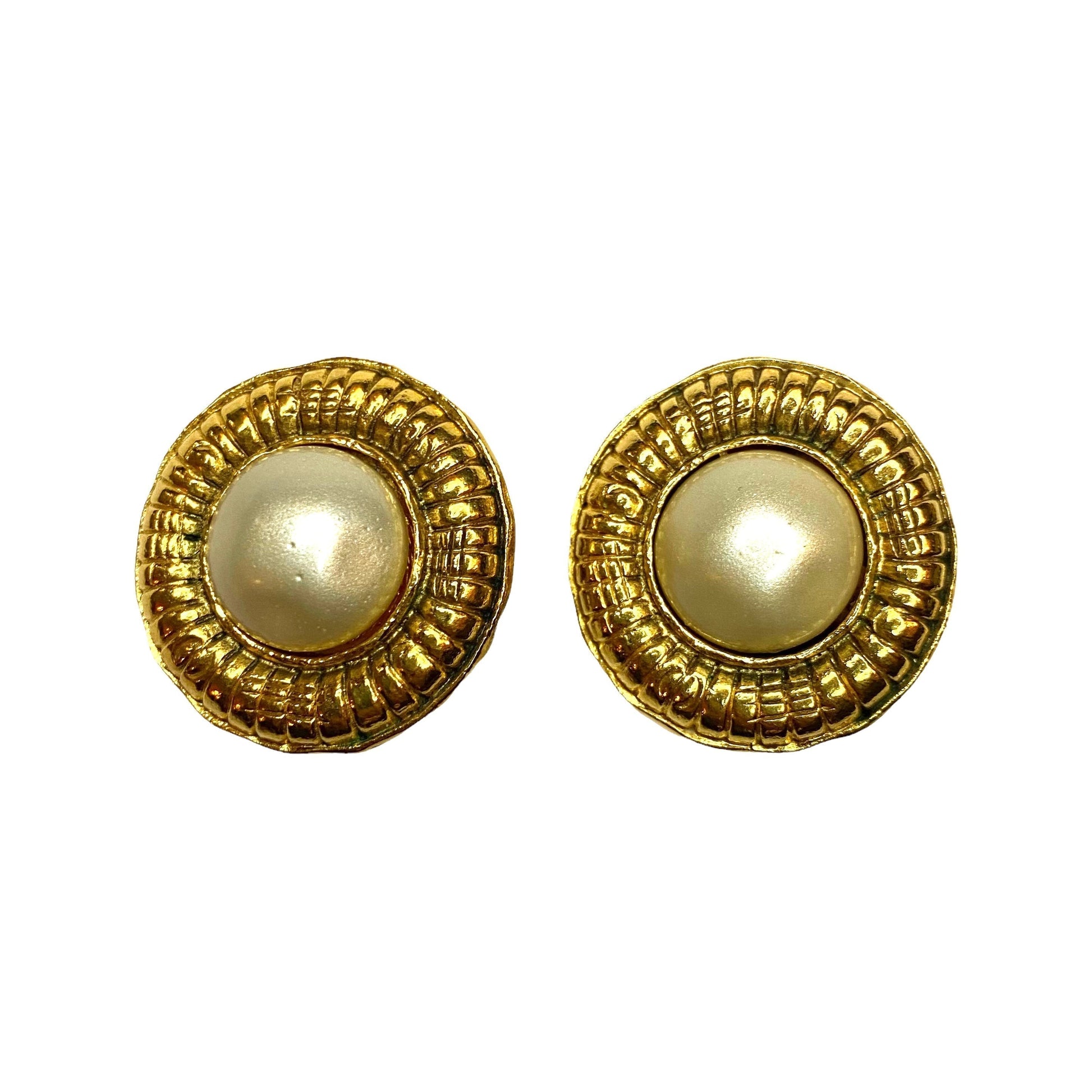 DESCRIPTION: Chanel vintage clip round earrings with glass pearl