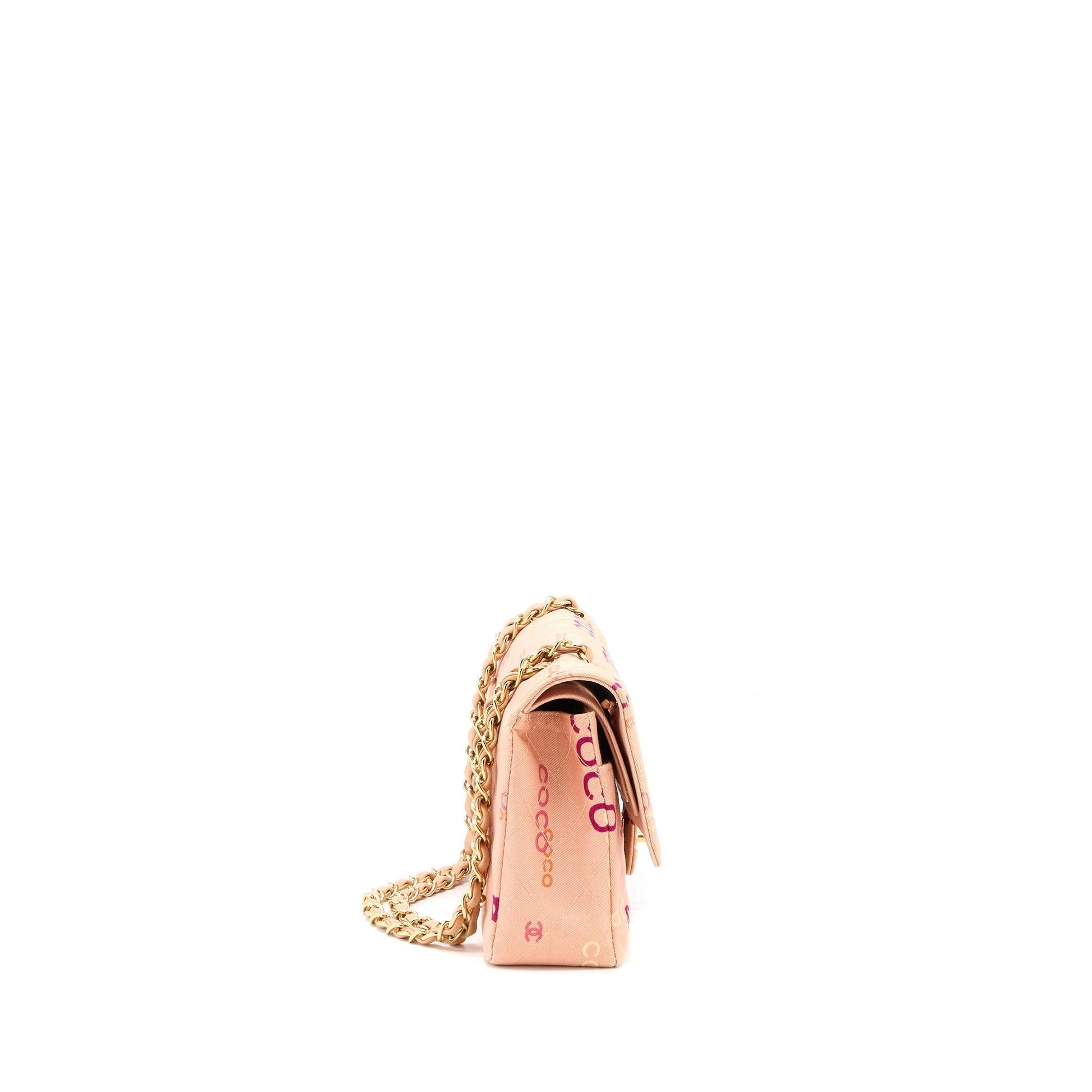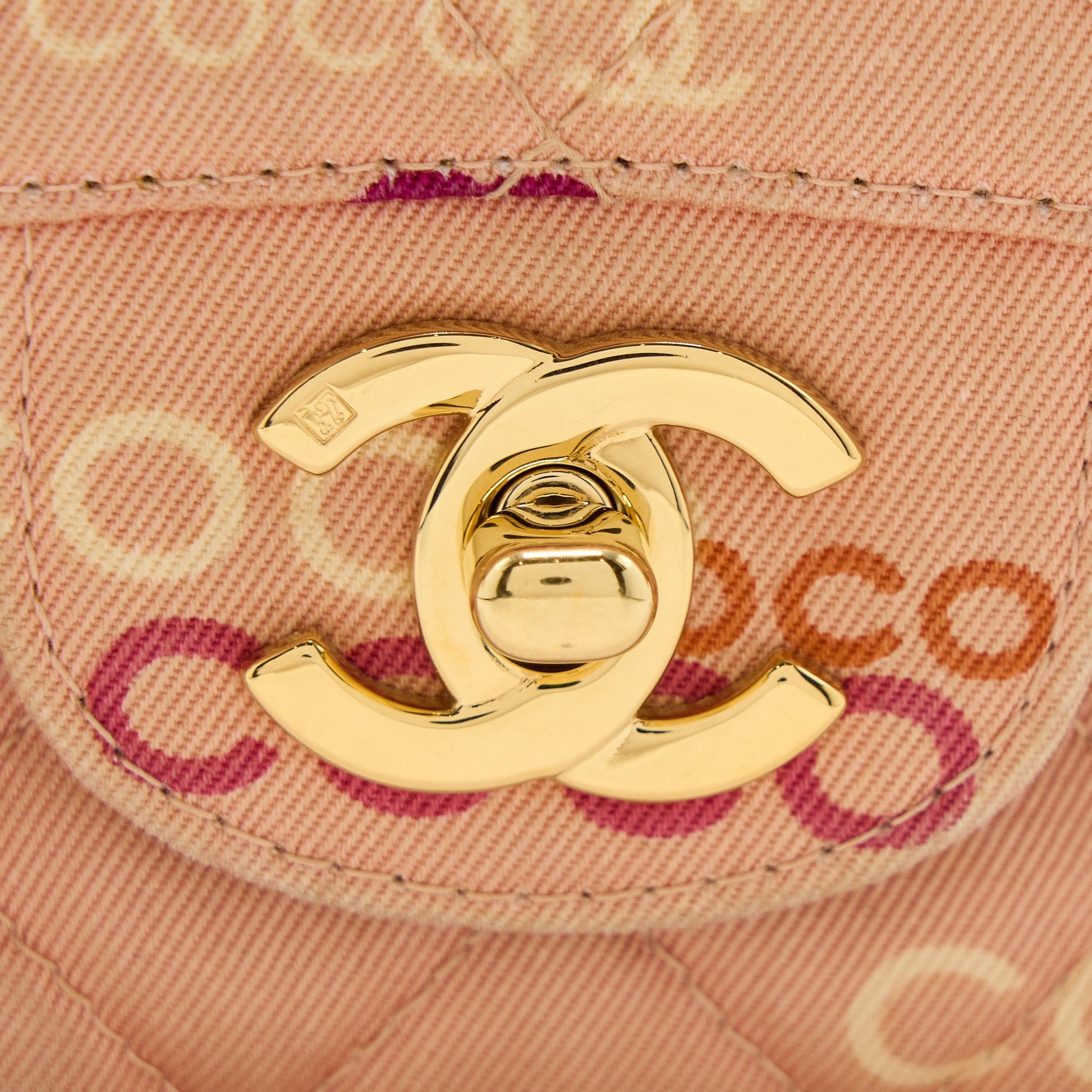Chanel Vintage Coco Medium Classic Flap Bag Fabric Pink GHW