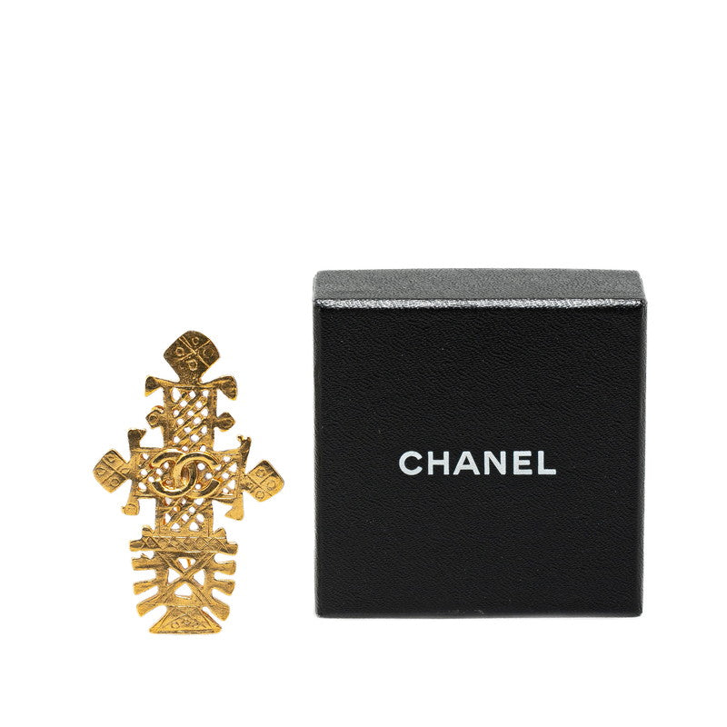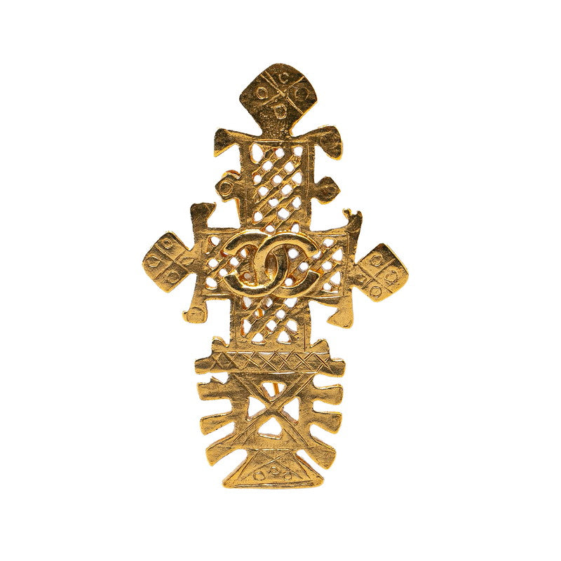 Item name : Chanel Vintage Cross Motif Brooch Gold