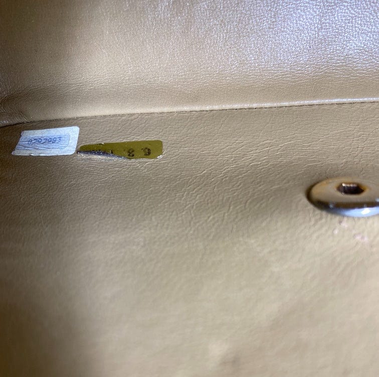 This bag comes with its serial sticker still attached inside plus the matching . The code tells us this bag was made between 1989-1991 in France.