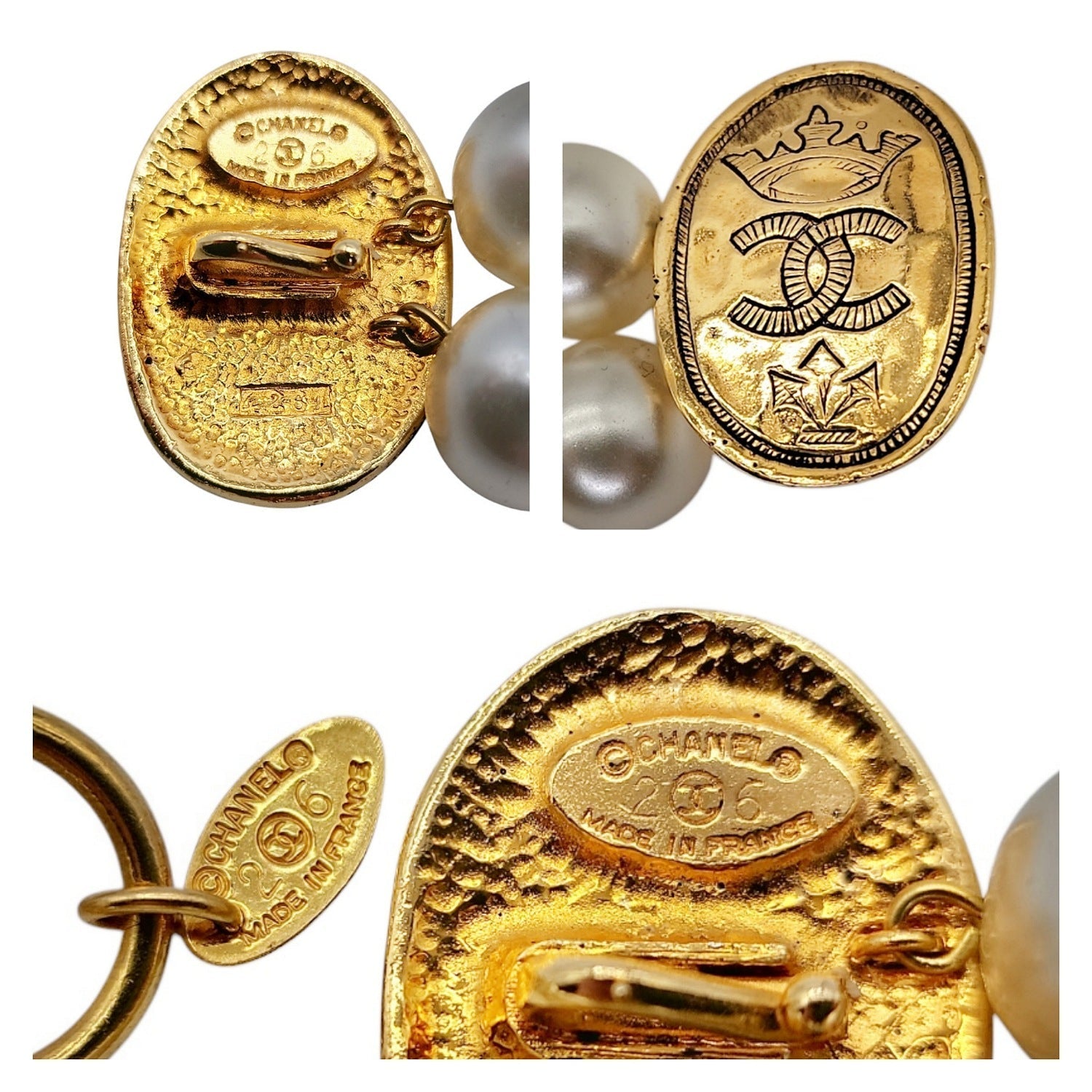 Experience the timeless elegance of this Chanel Vintage Crown Coco Mark Faux Pearl Bracelet. Featuring two strands of lustrous faux pearls linked by golden-toned hardware, this bracelet adds a touch of luxury to any outfit. The vintage CC crown plate with hook and loop closure provides a secure fit for wrists up to 7 inches. Indulge in the sophisticated and classic style of Chanel with this beautiful bracelet.