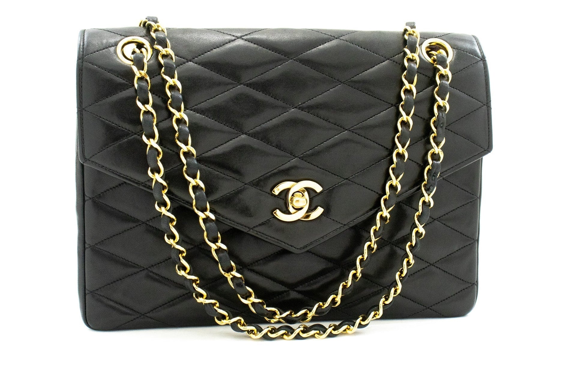 An CHANEL Vintage Envelope Chain Shoulder Bag Flap Quilted made of black Lambskin k32 This item is Vintage / Classic. The year of manufacture would be 1989-1991.