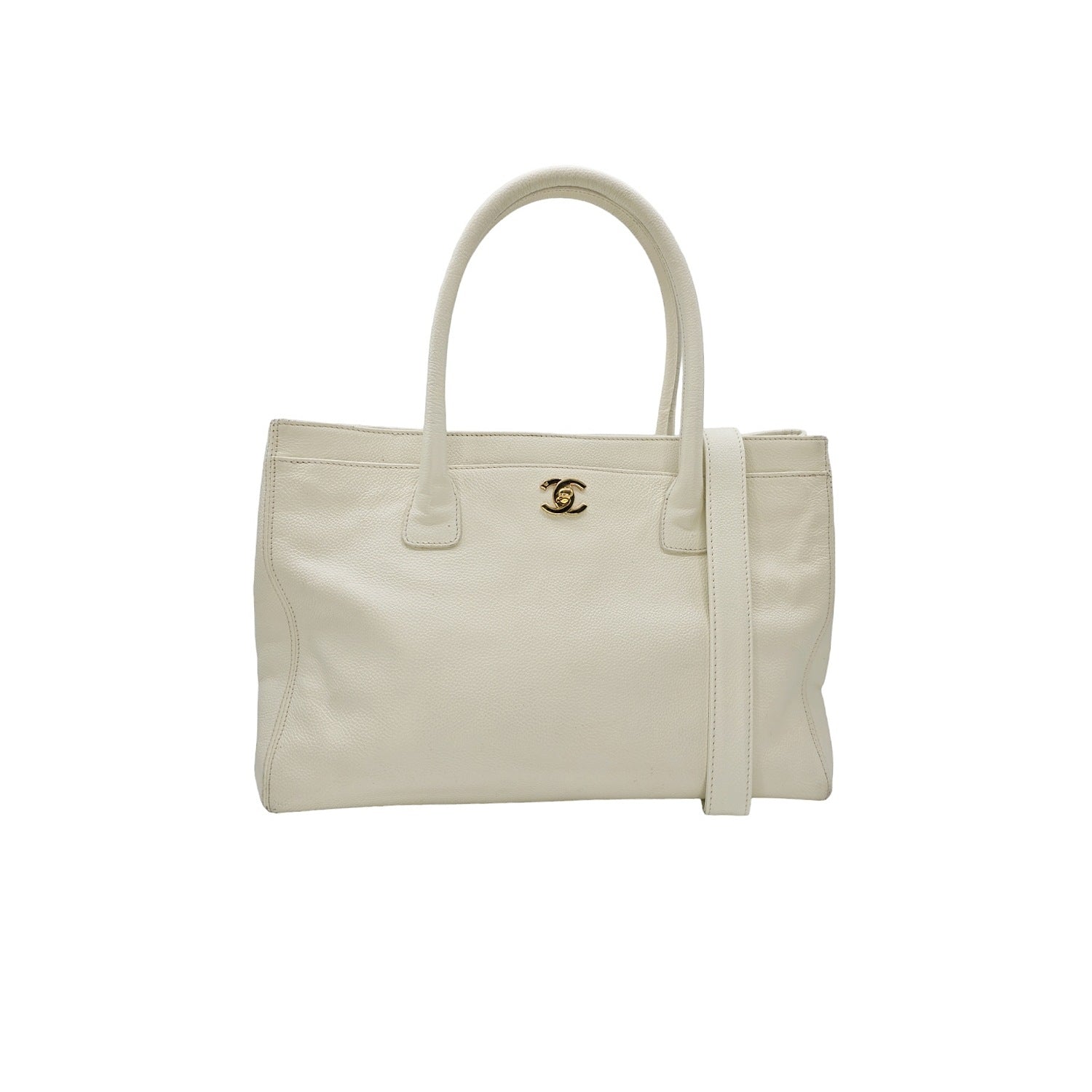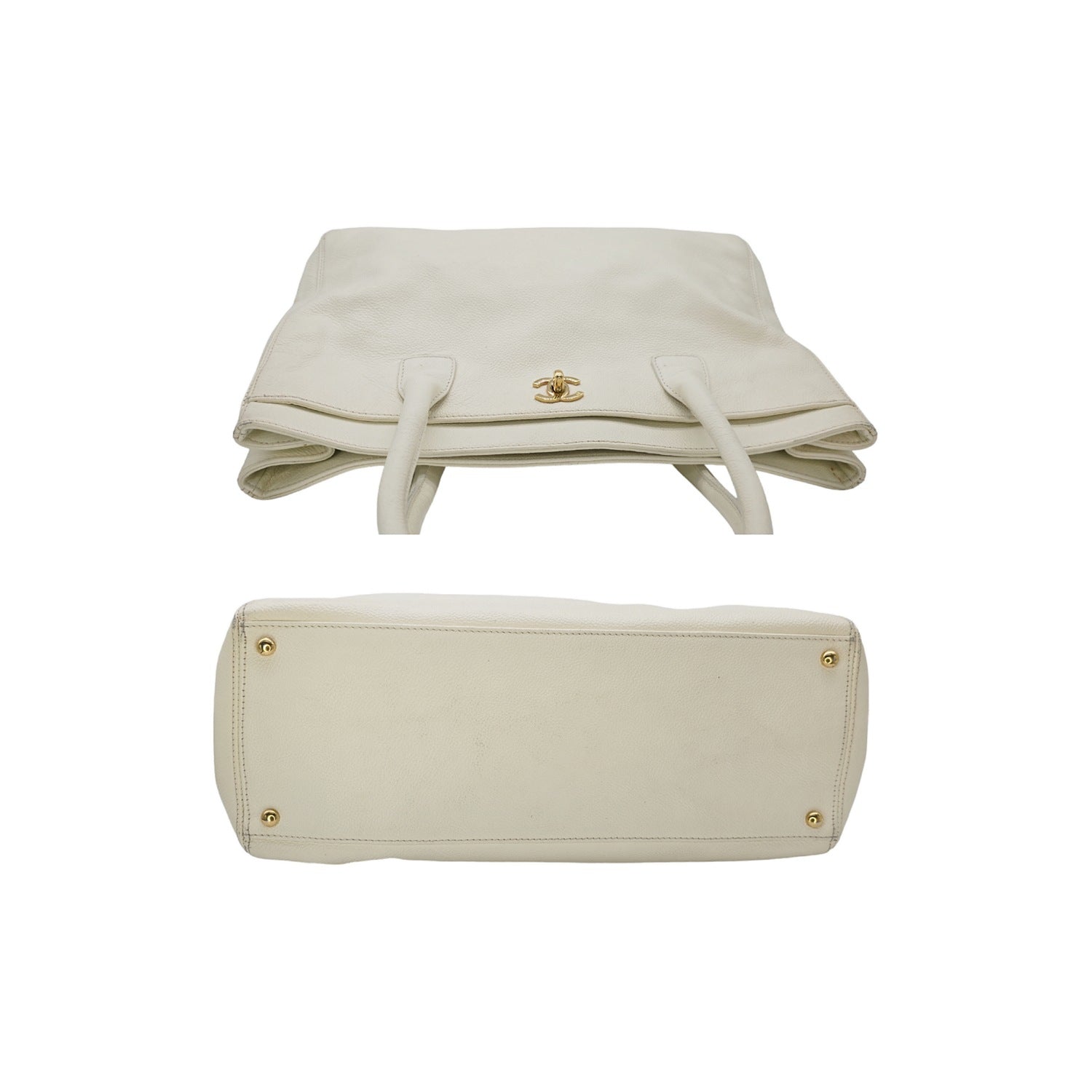 Chanel Vintage Calfskin Cerf Executive Shopper Tote White