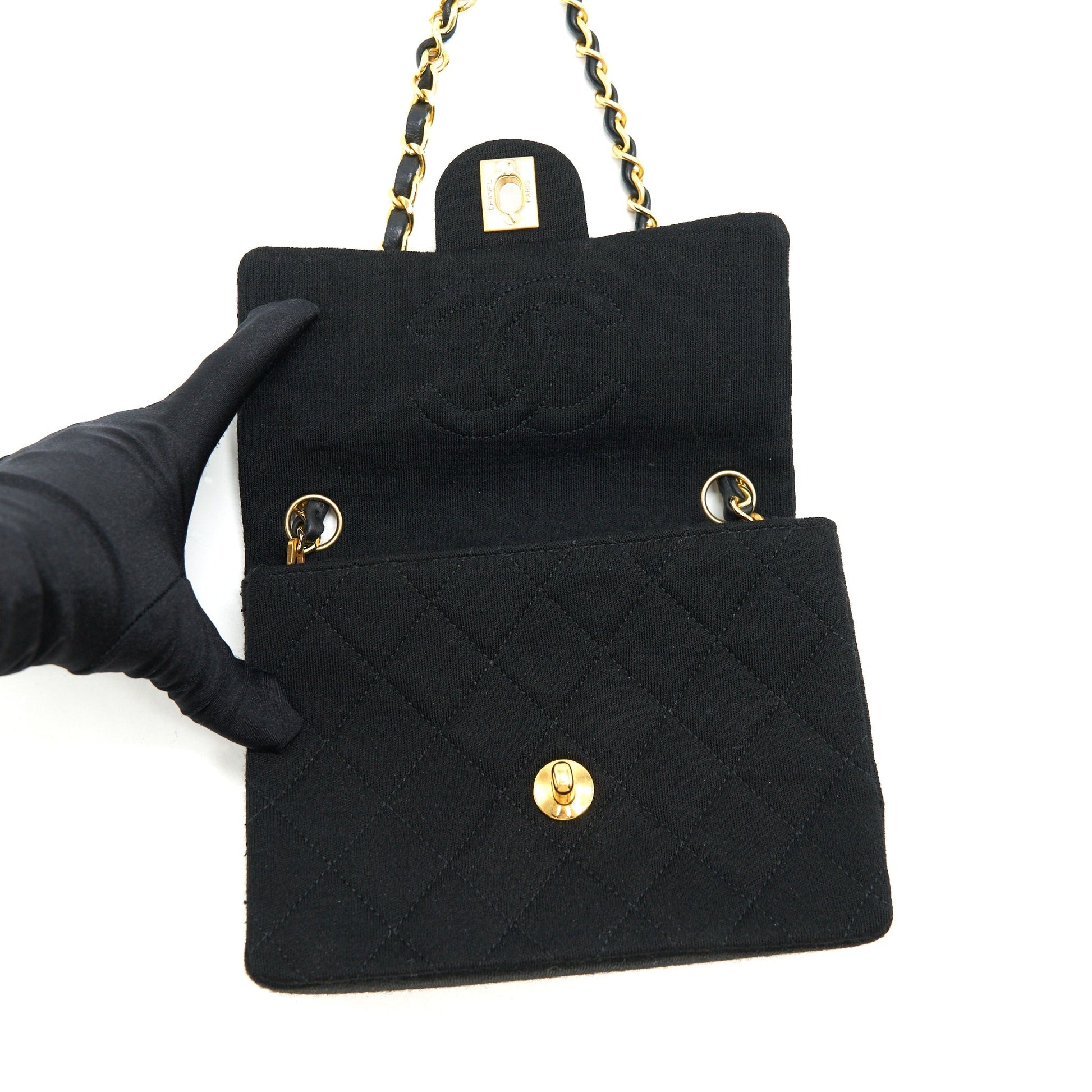Chanel Vintage Fabric Mini Square Flap Bag Black GHW