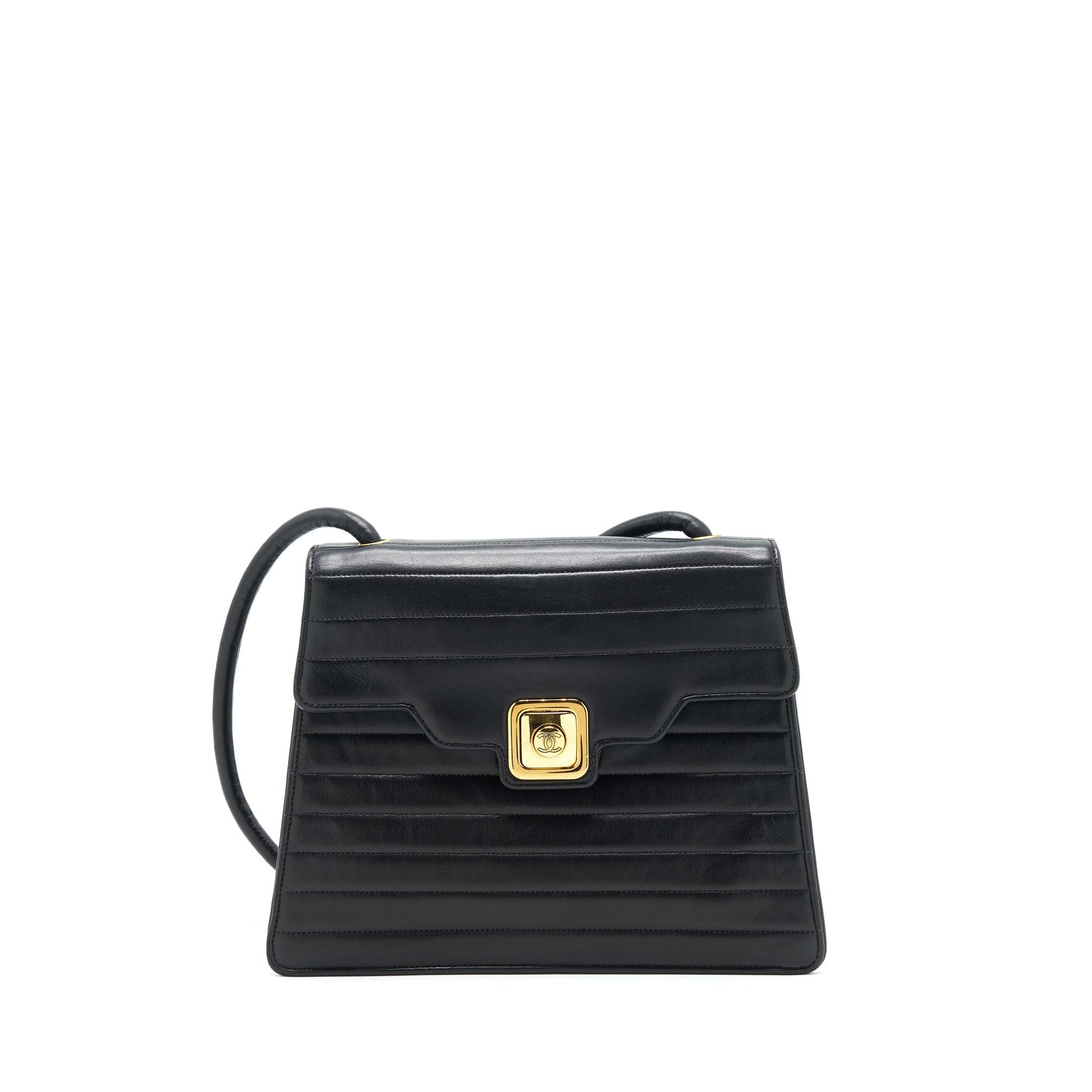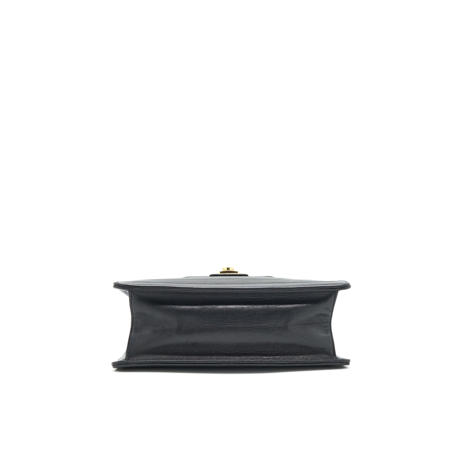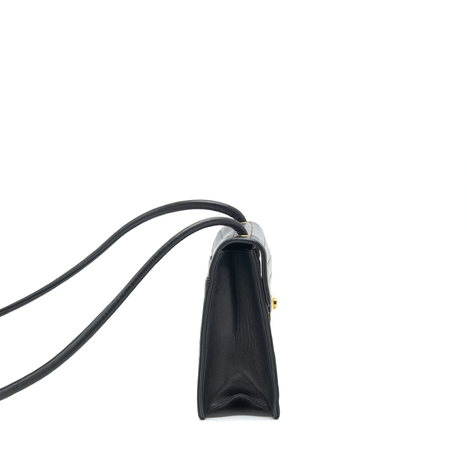 Chanel Vintage Kelly Flap Bag With Long Strap Black 24k GHW