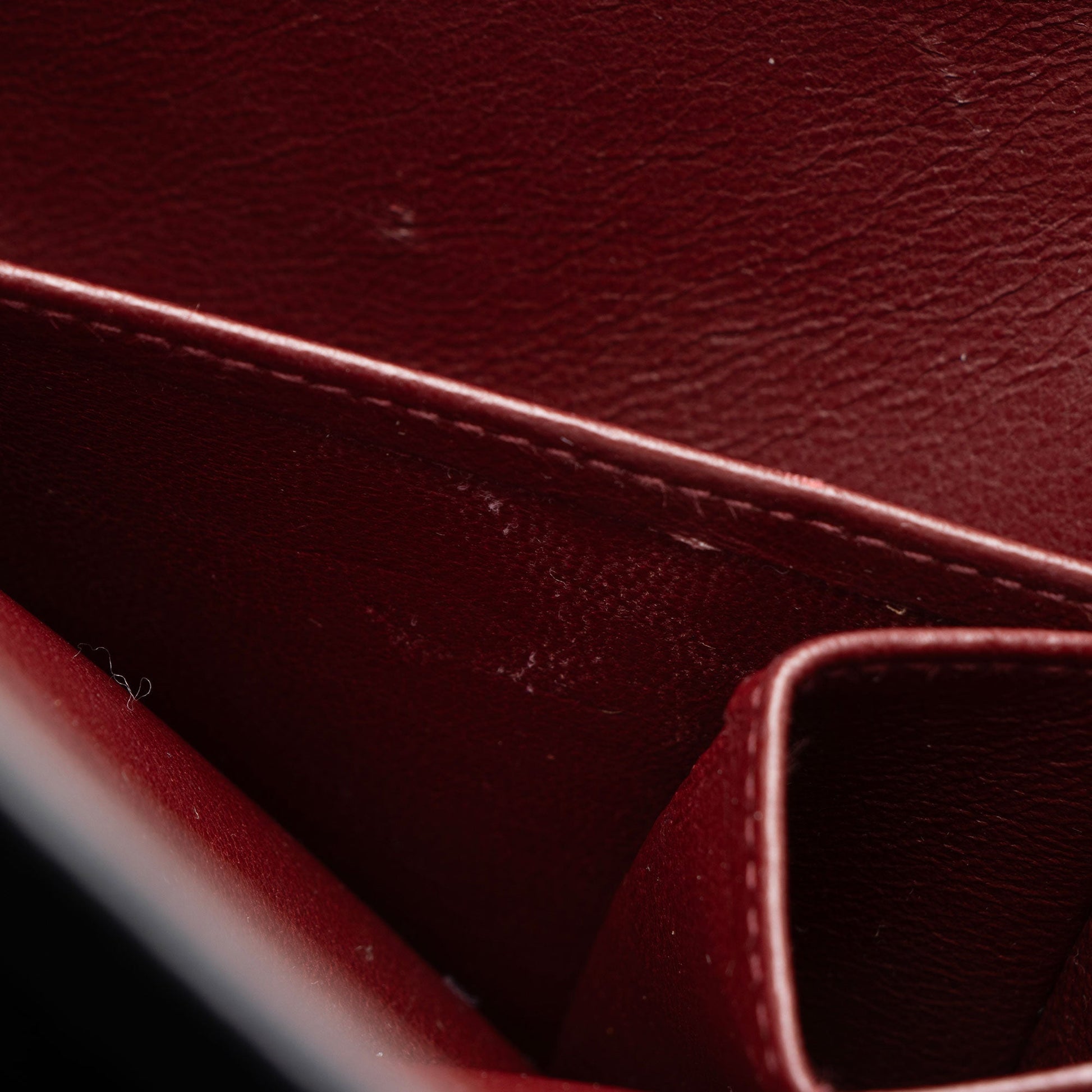 Condition Notes: Light scuffs to exterior bottom corners. Creasing and scuffs throughout exterior. Wear throughout lambskin woven in shoulder strap. Surface scratches to hardware. Heavy scuffs and wear throughout interior flap. Light creasing and scuffs throughout interior.