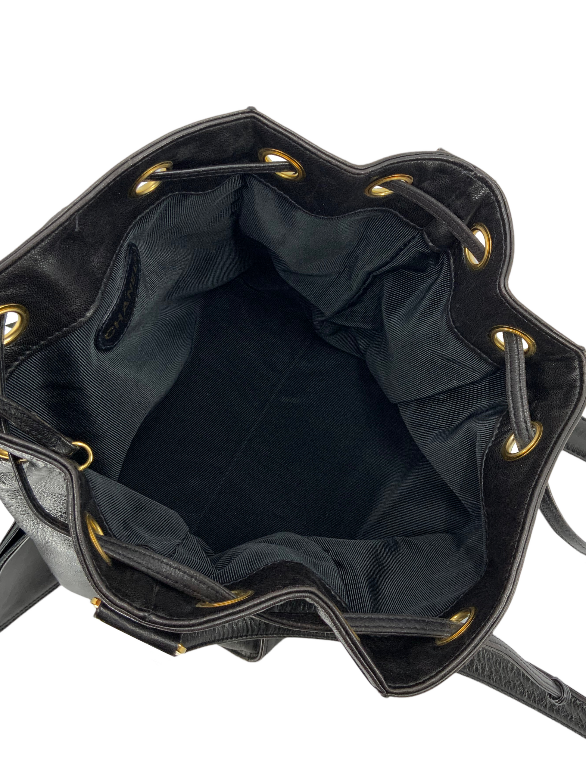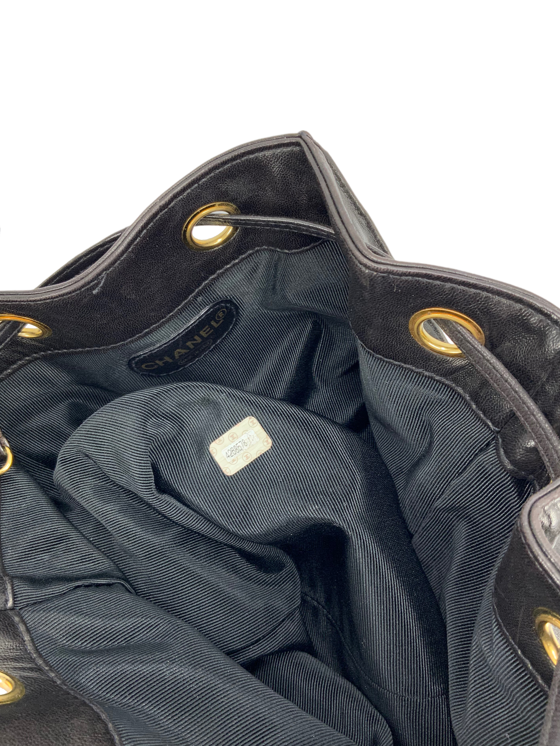 CHANEL Vintage Lambskin Drawstring Bucket Shoulder Bag