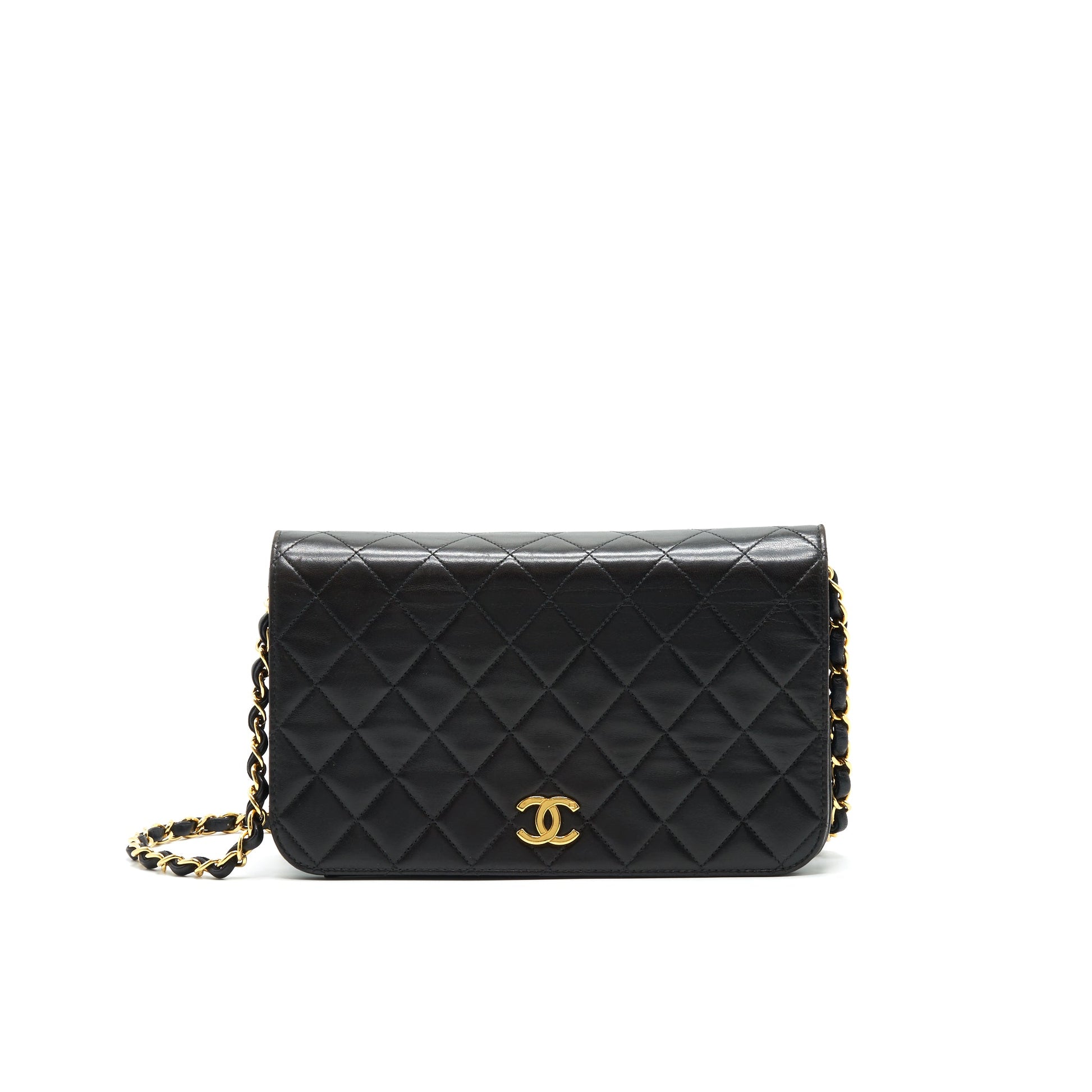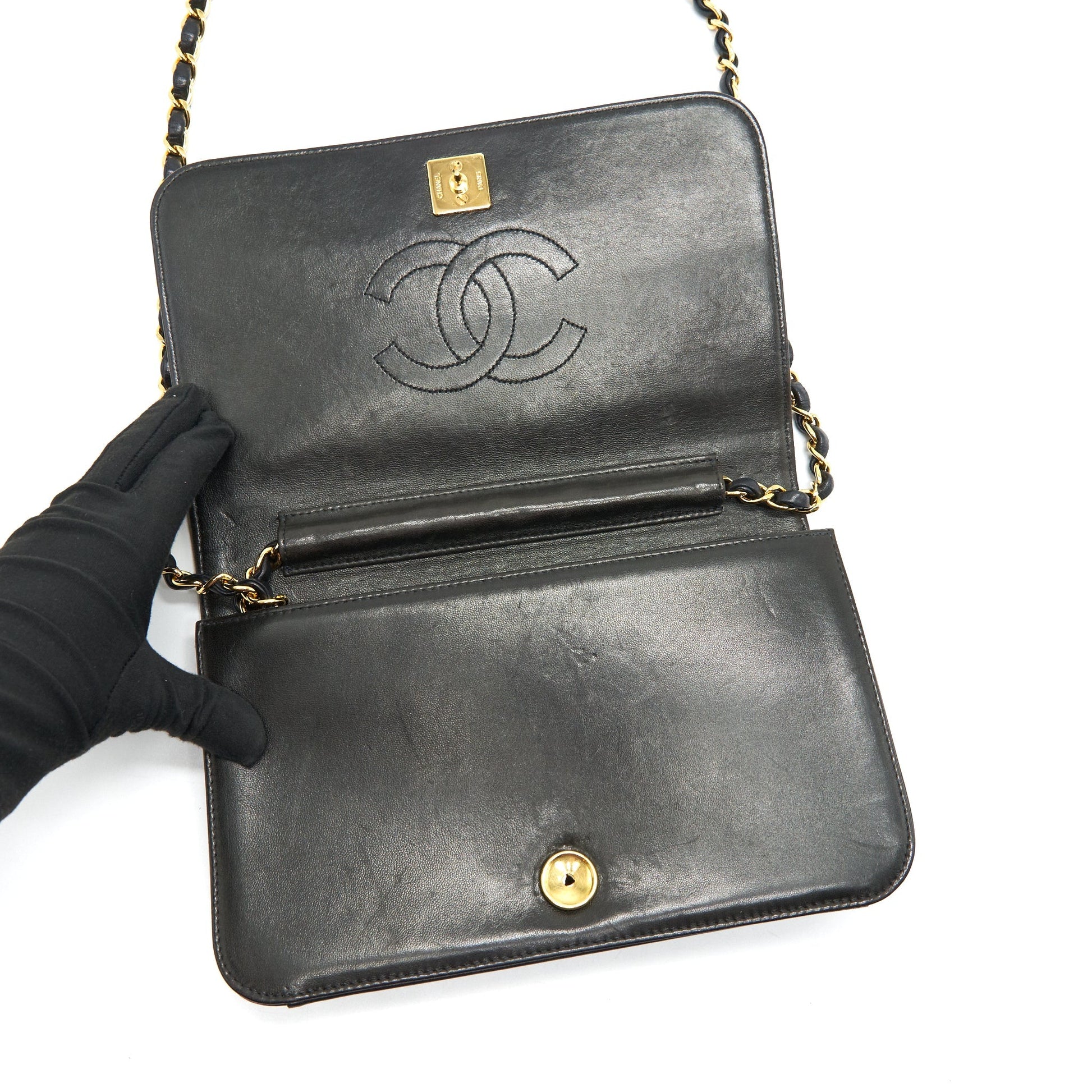 Chanel Vintage Lambskin Flap Bag with Chain Black 24K GHW