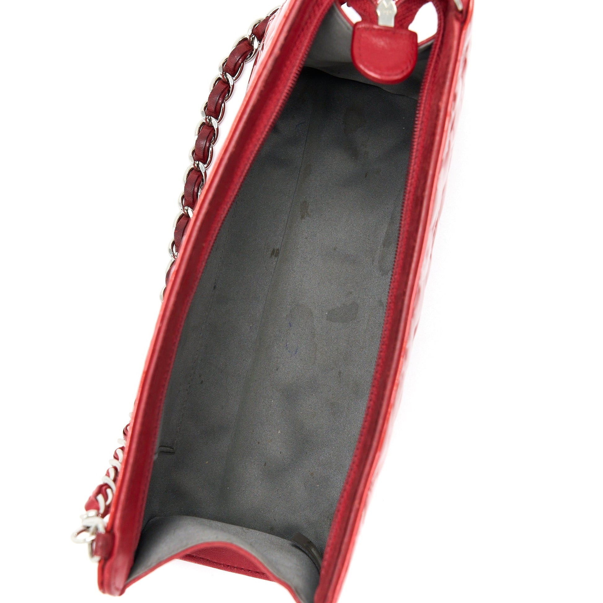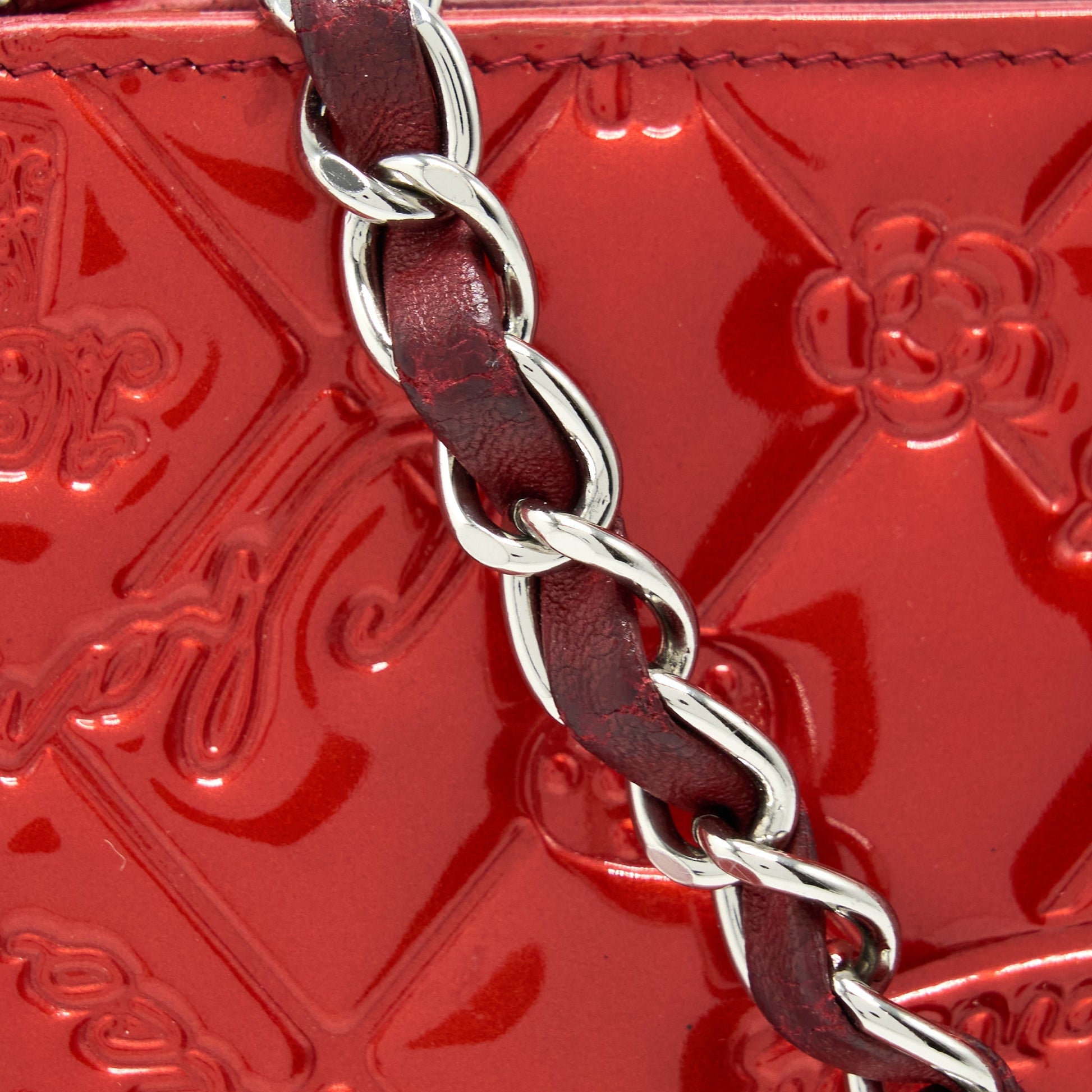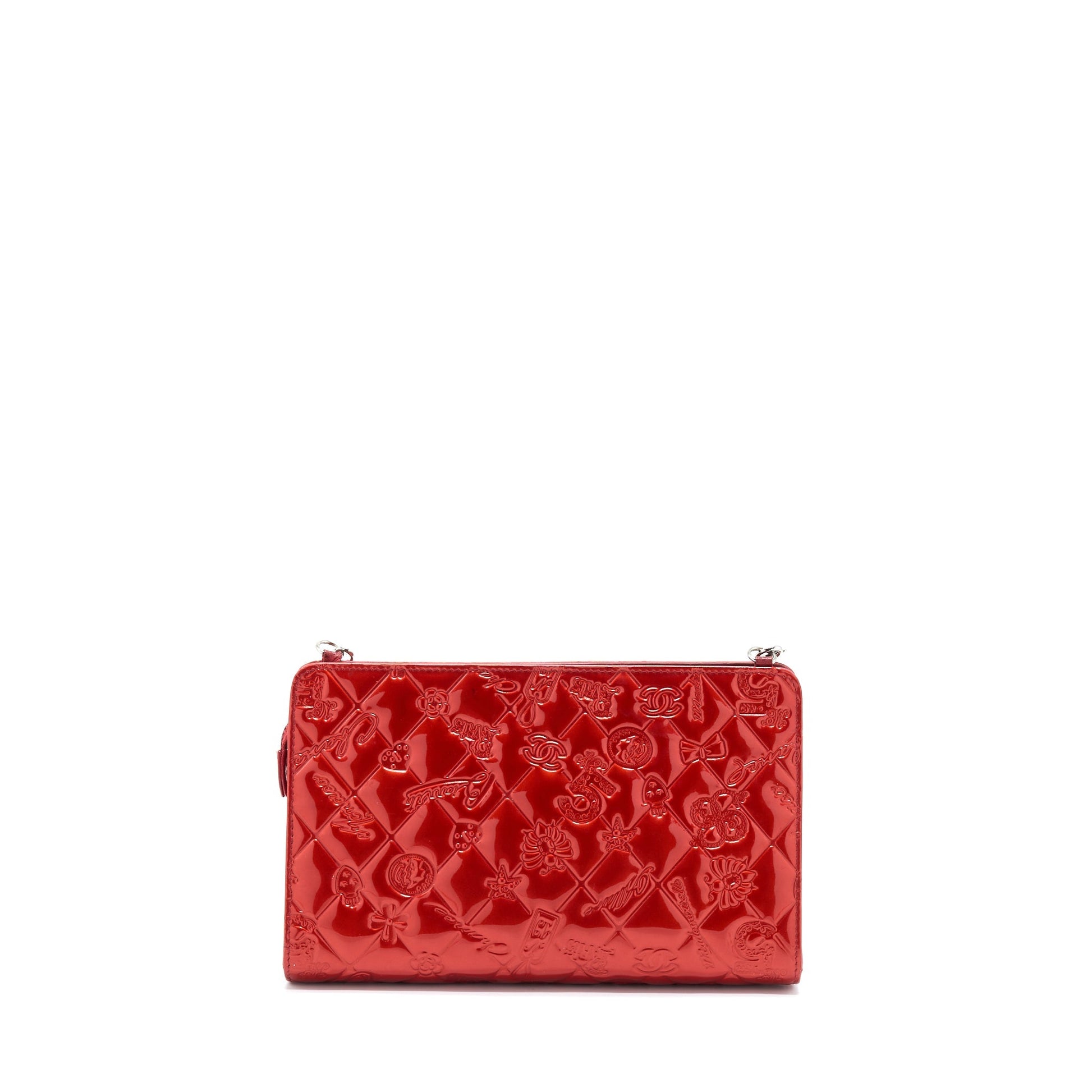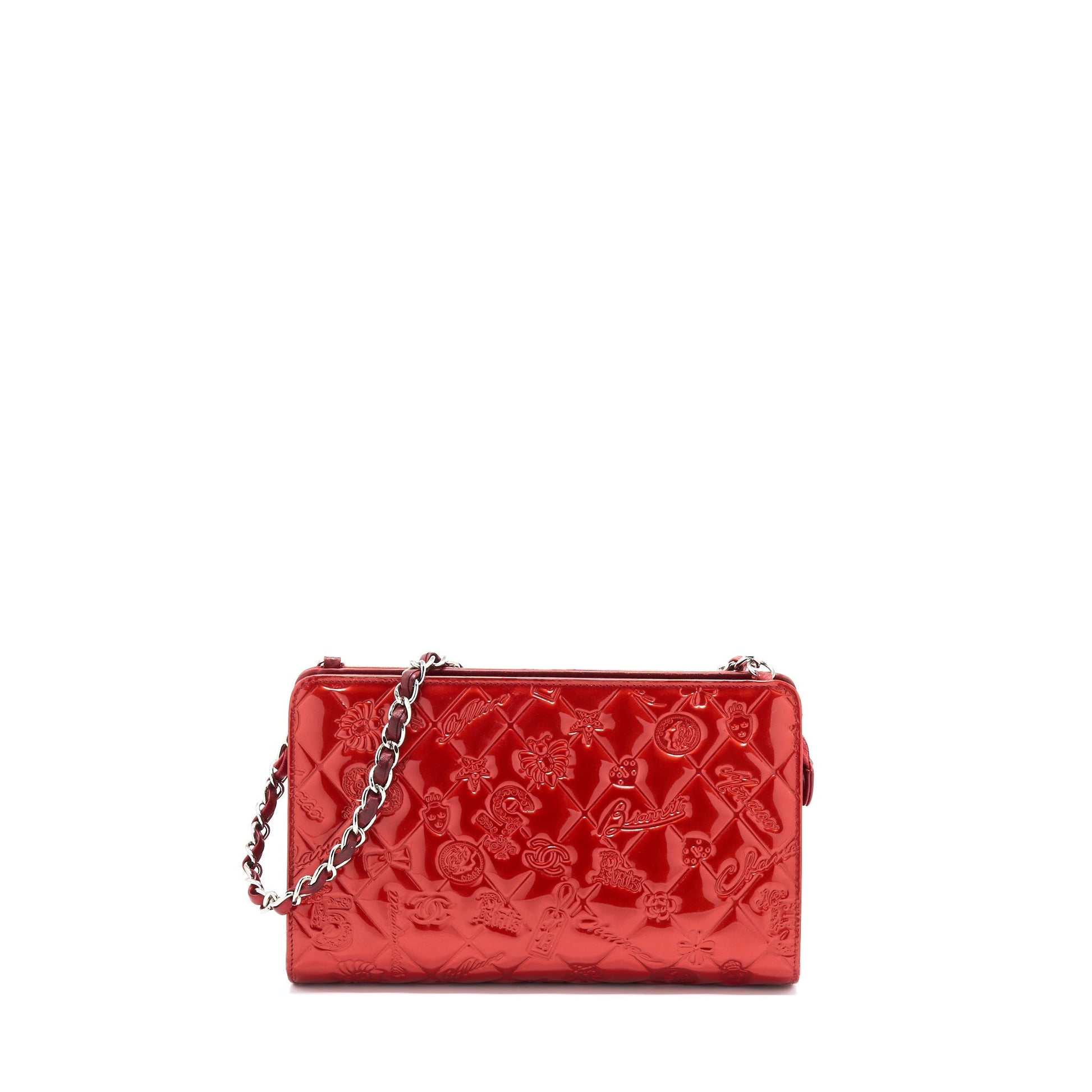 Chanel Vintage Leather Charm Printed Chain Shoulder Bag Red SHW