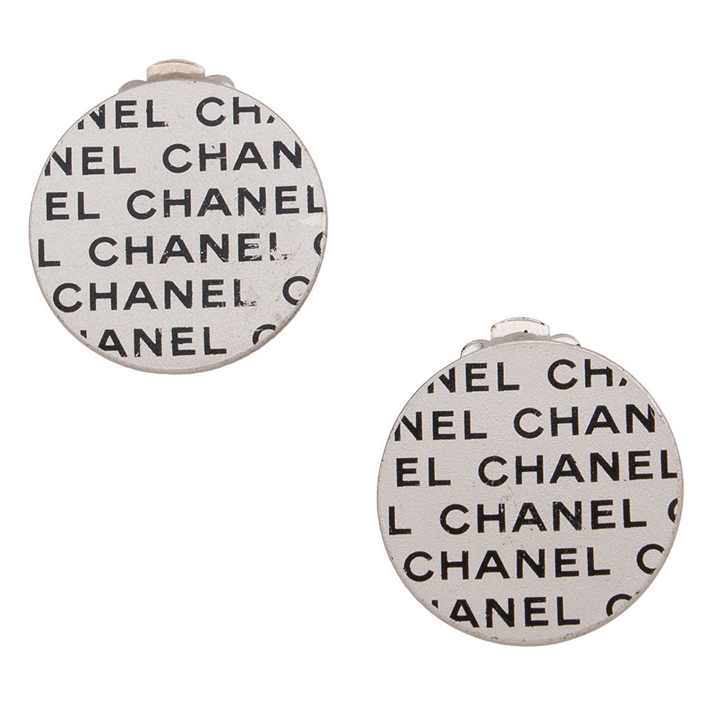 Chanel Vintage Logo Round Clip On Earrings (SHF-14409)