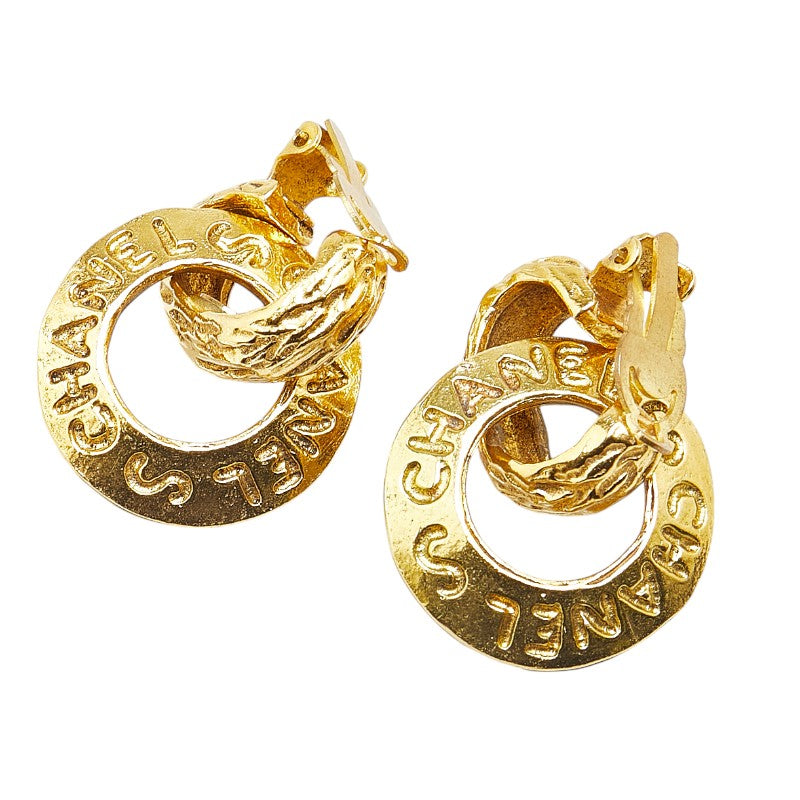 Item name : Chanel Vintage Logo Swing Earrings Gold