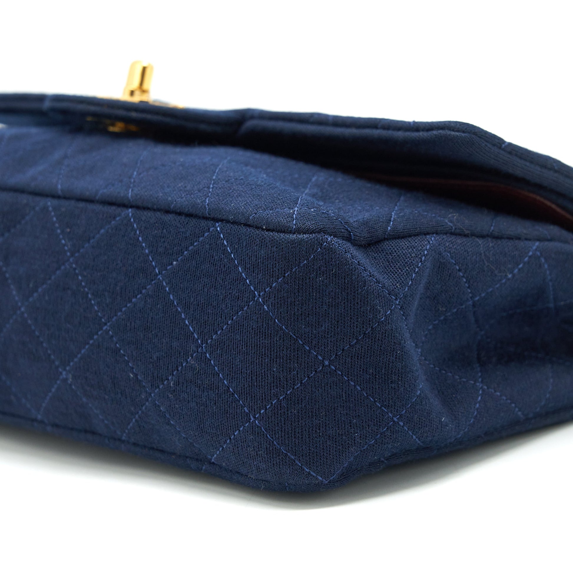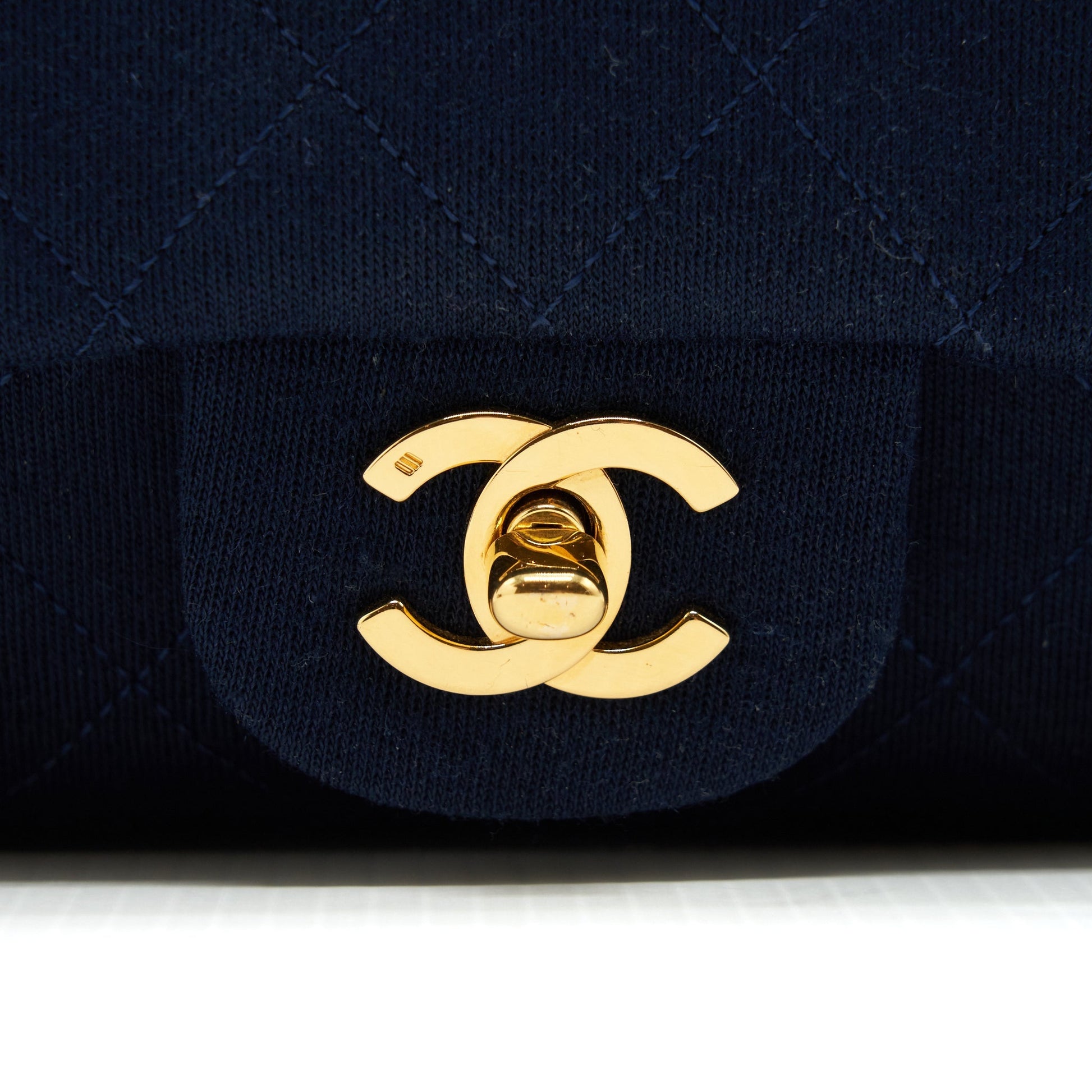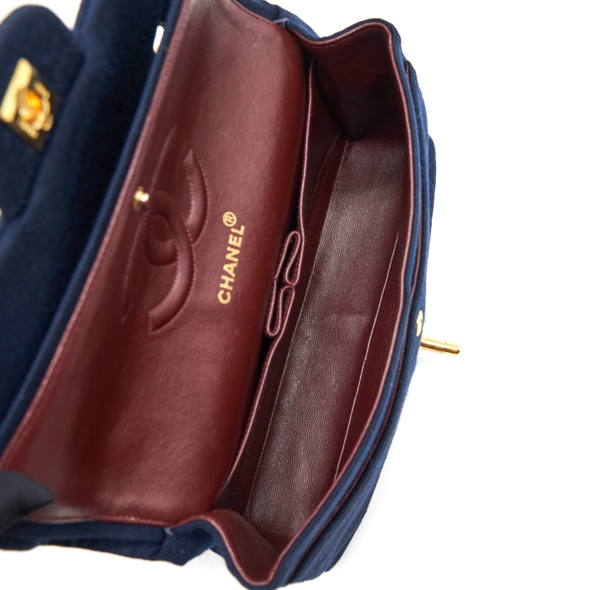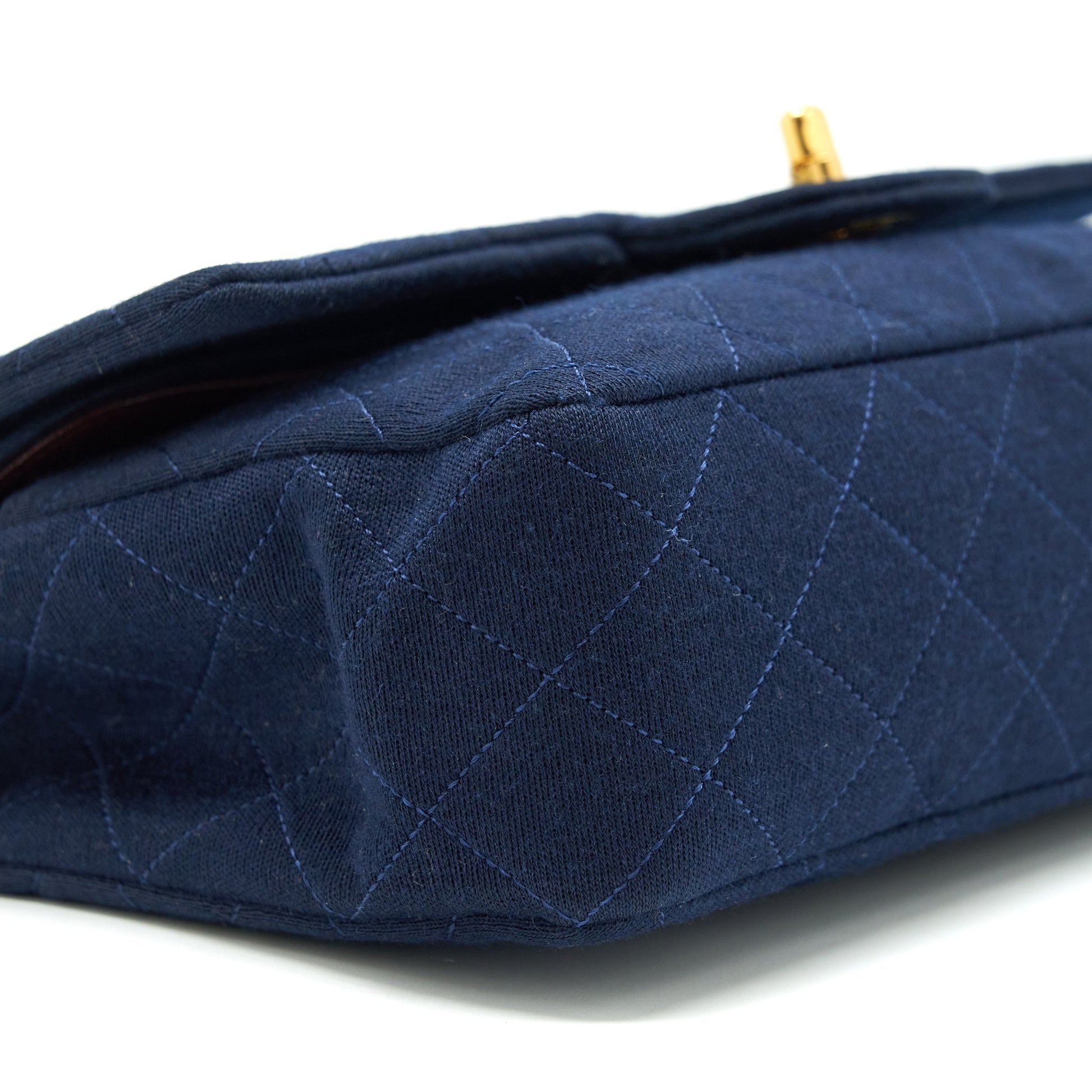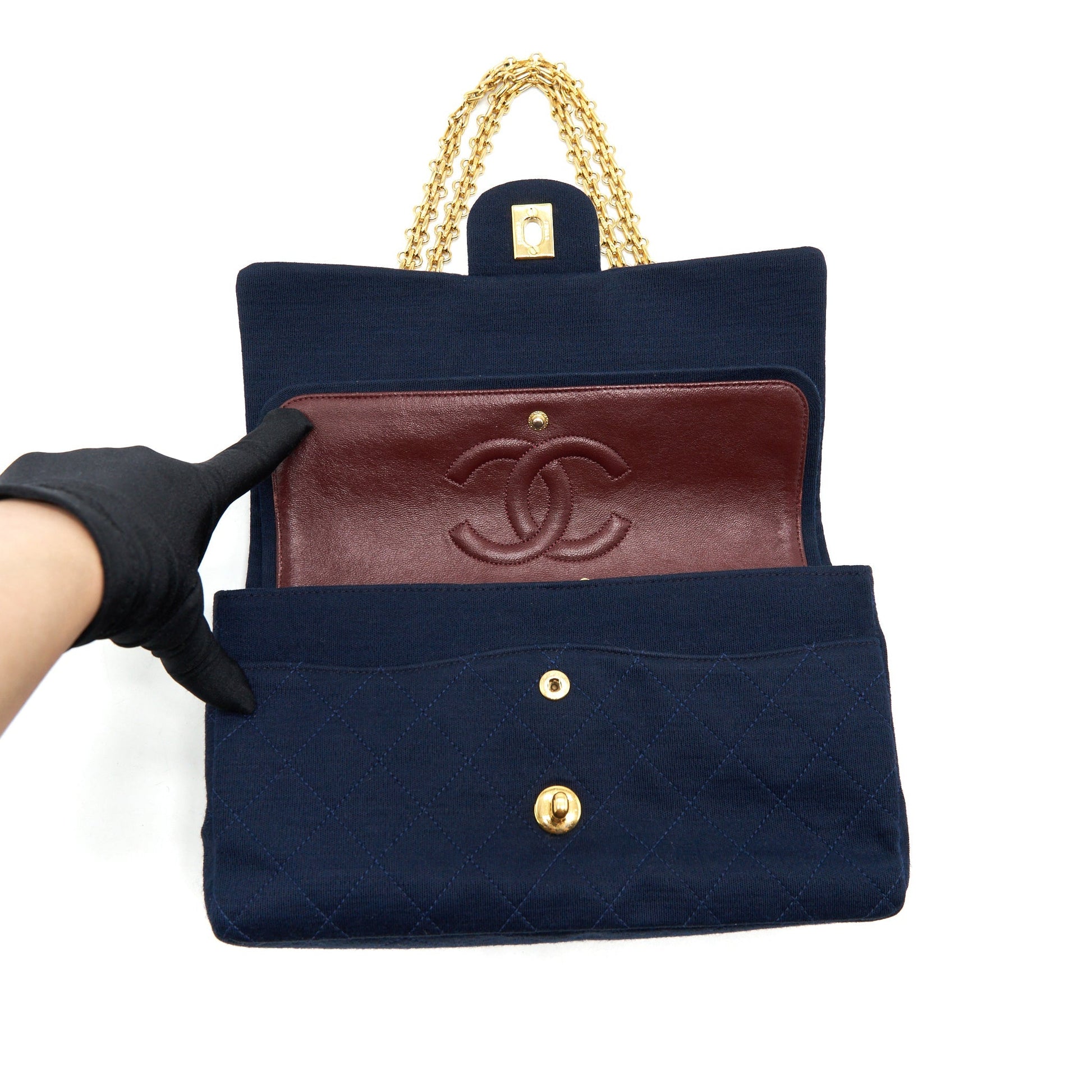 Chanel Vintage Medium Classic Double Flap Bag Fabric Navy GHW