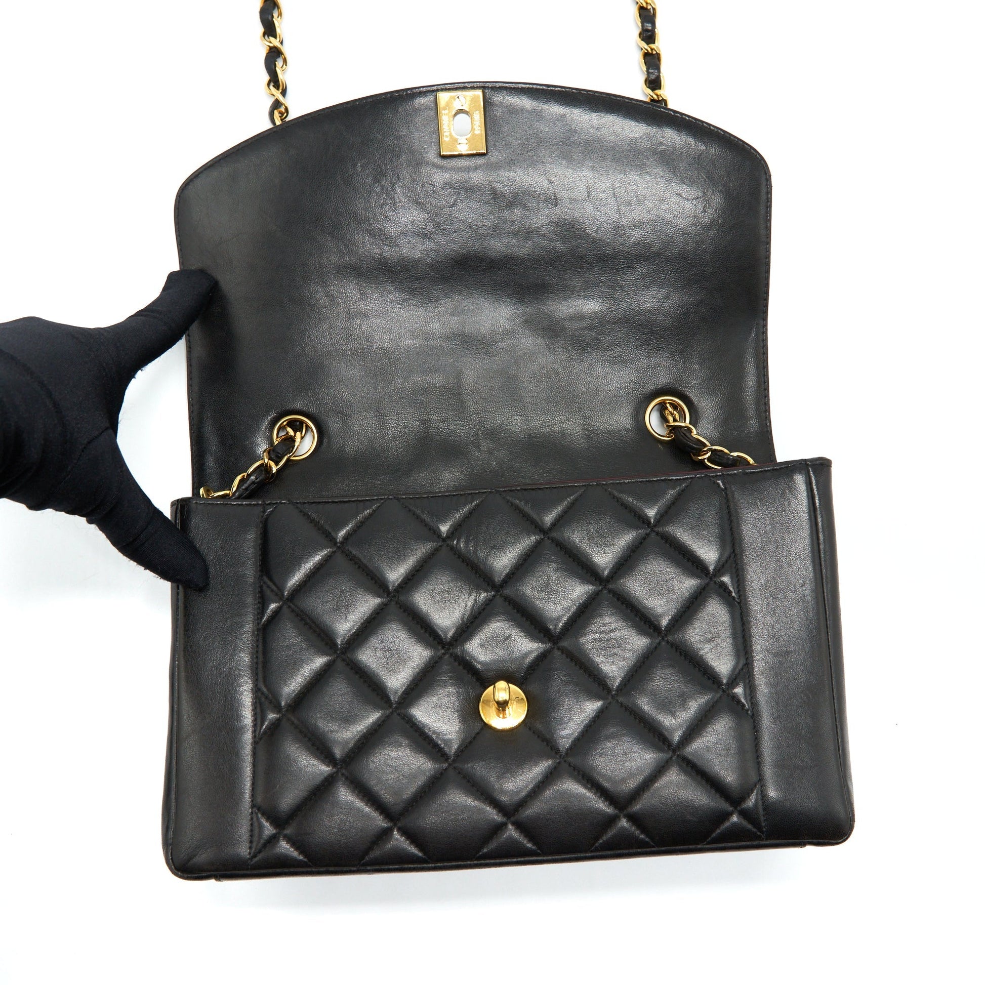 Chanel Vintage Medium Diana Flap Bag Lambskin Black GHW