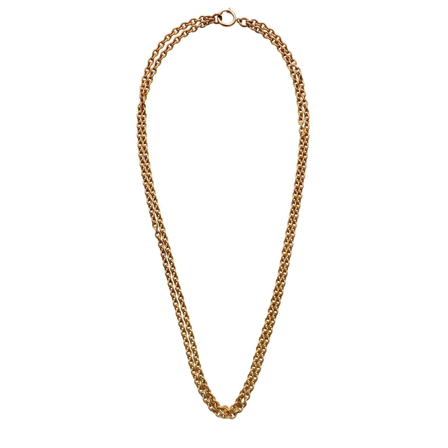 This Chanel Double Gold Link Necklace is in excellent vintage condition. Gold plated linked double chain. Pouch or box included.