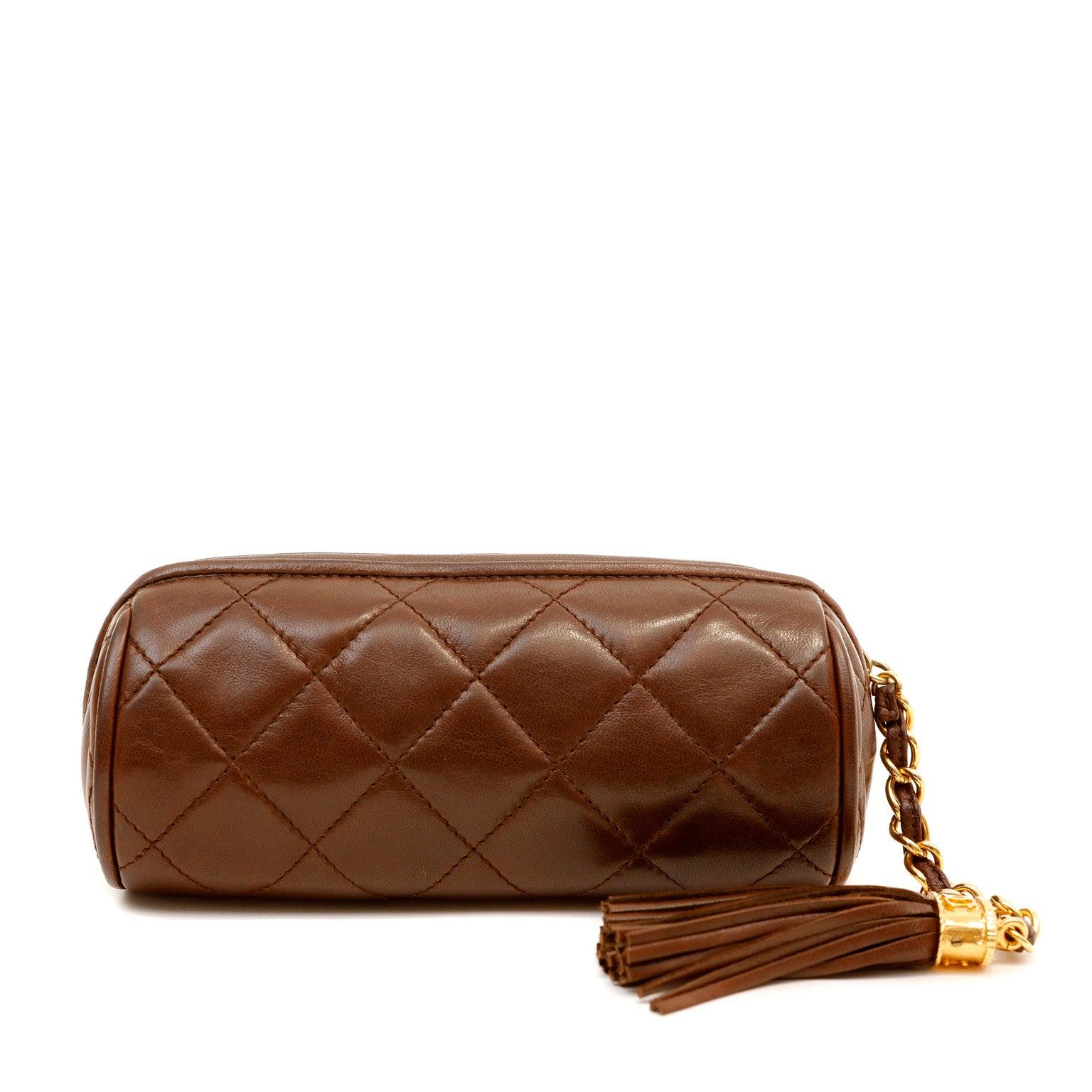 Chanel Vintage Quilted Brown Lambskin Travel Pouch