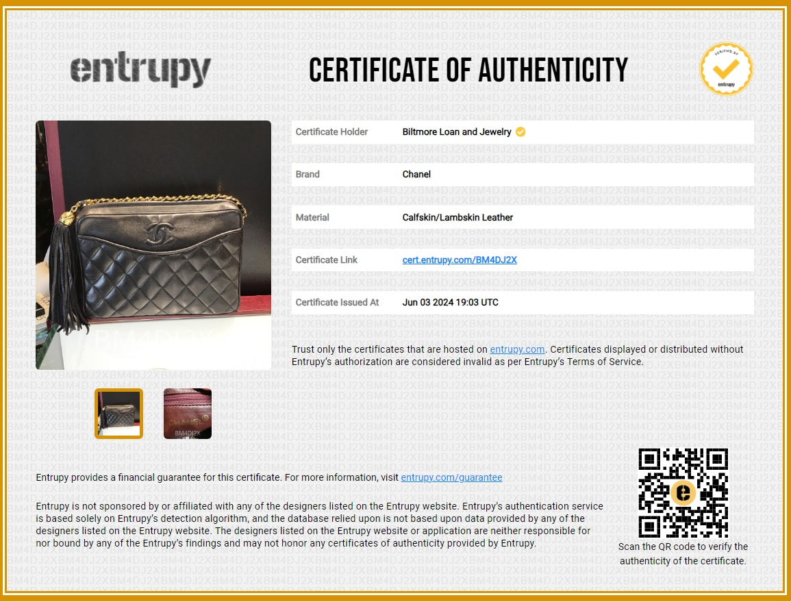 Accompanied By: Chanel box, an off-brand dust bag & Entrupy