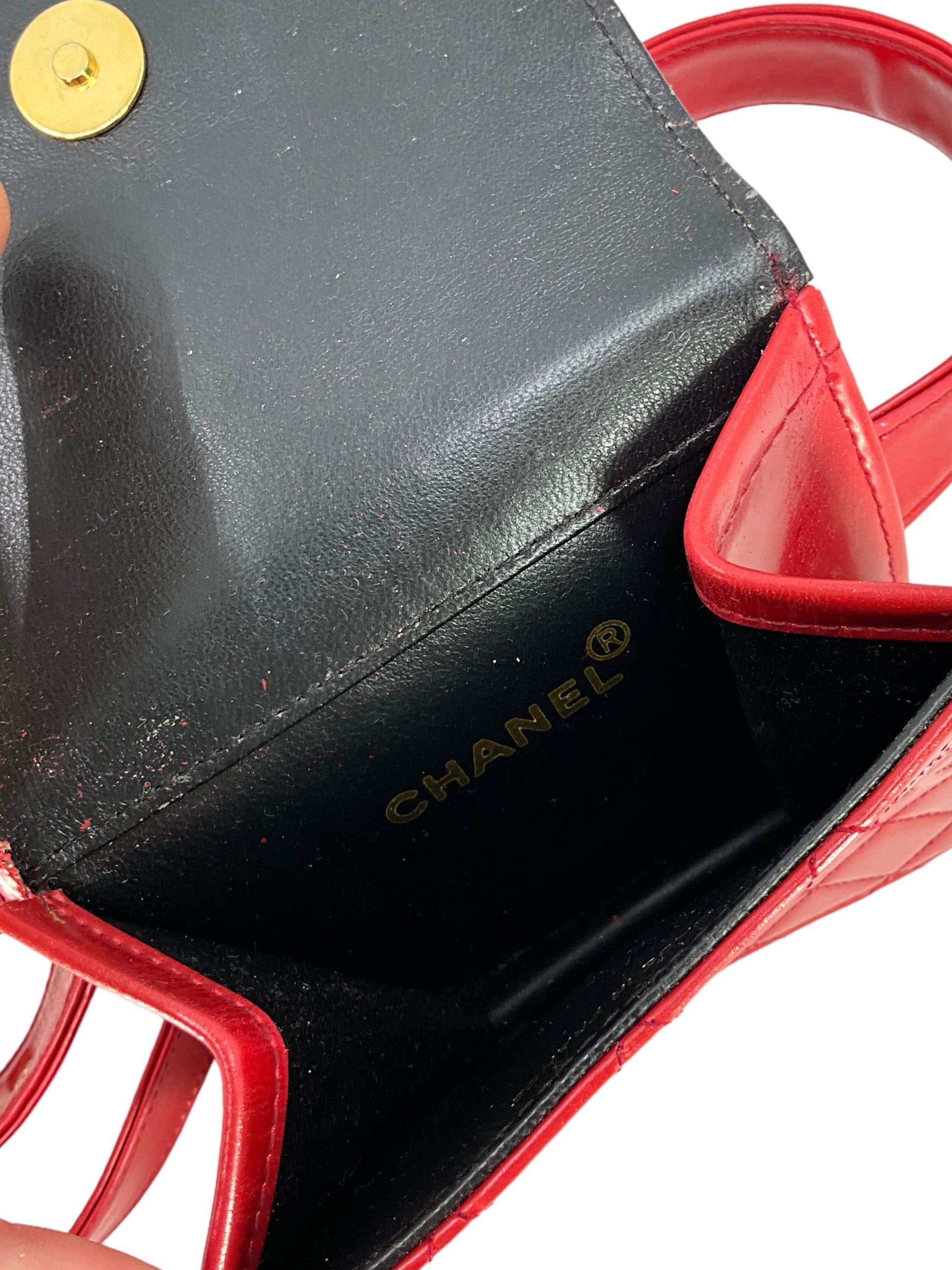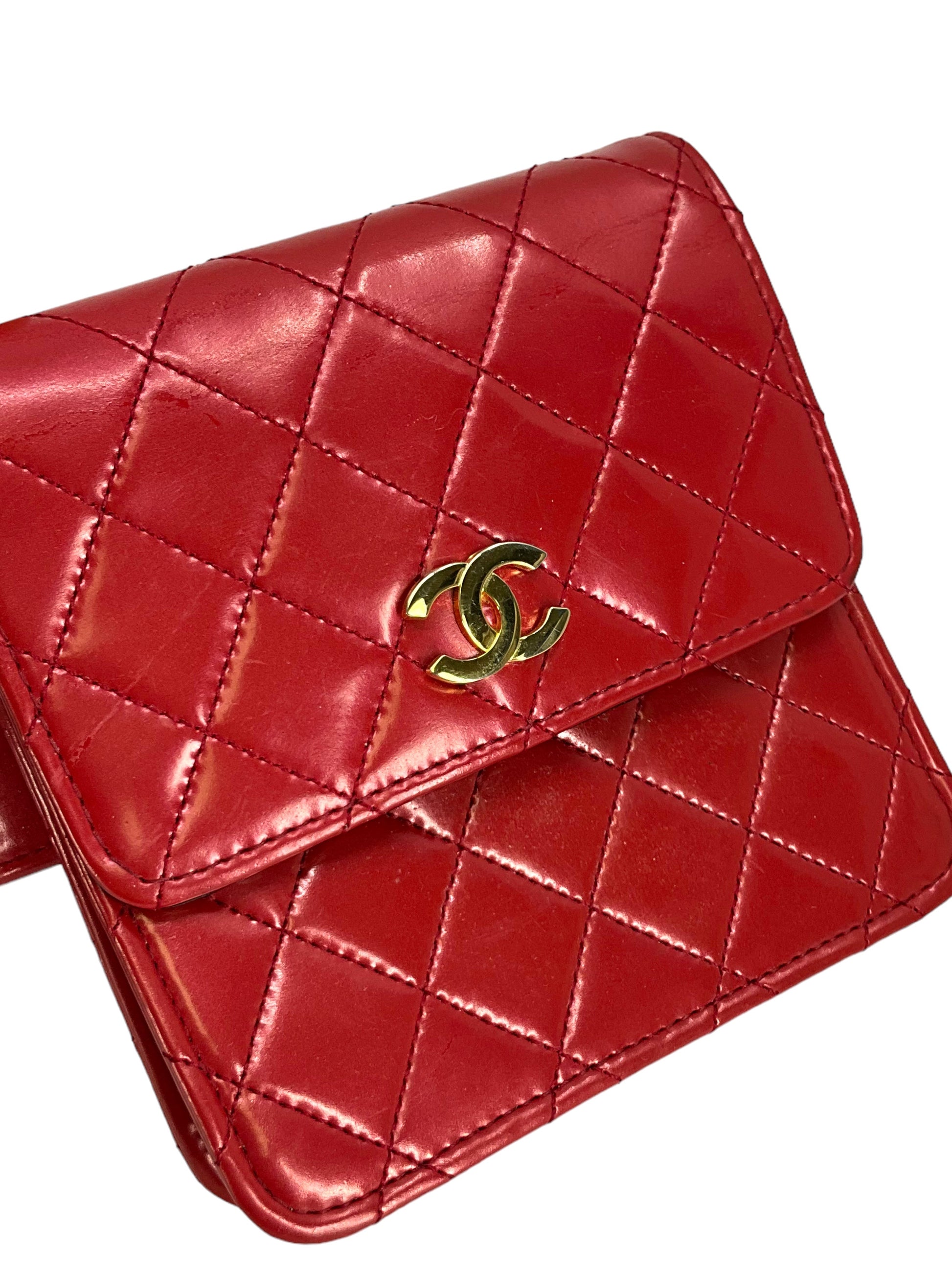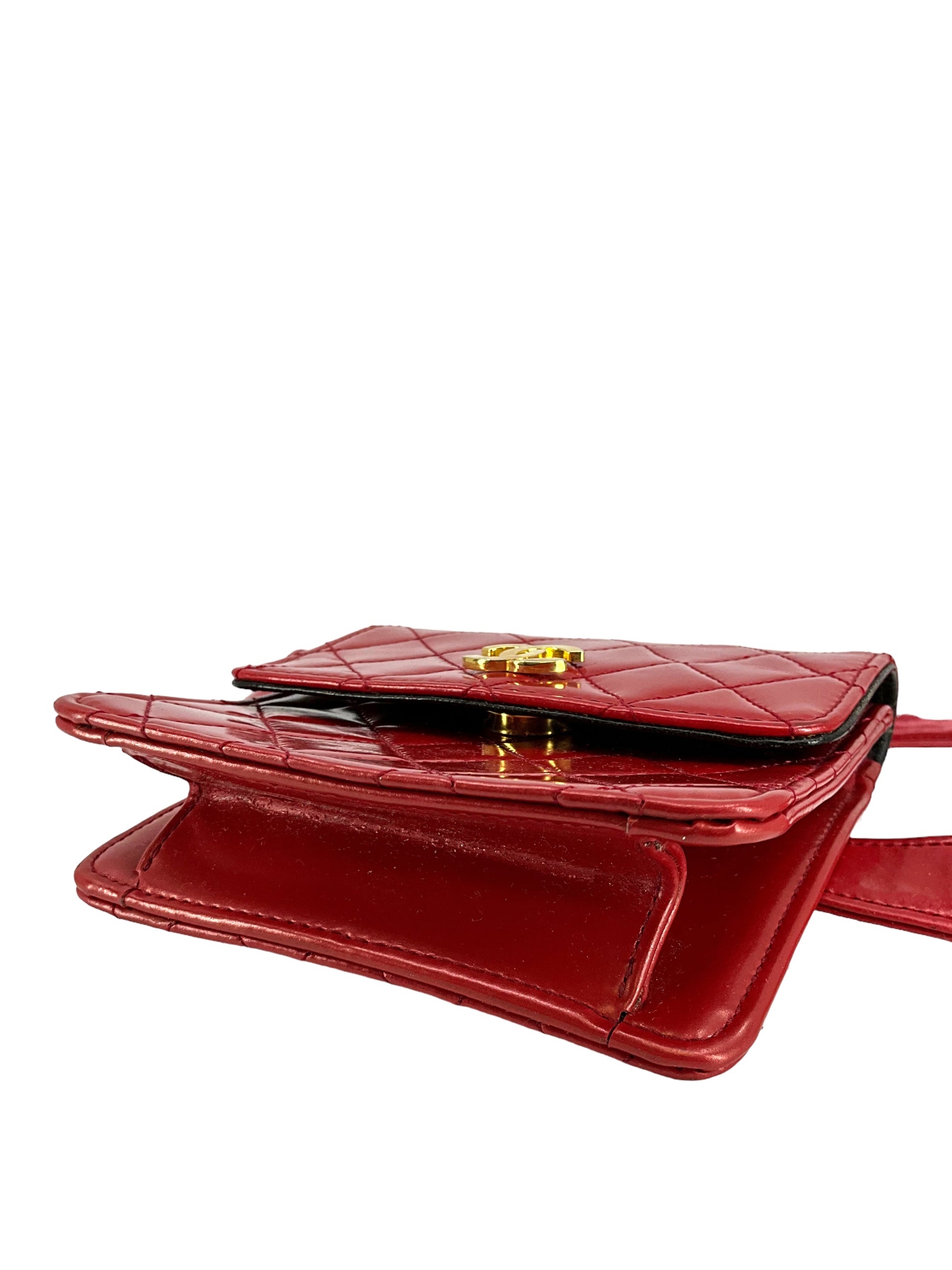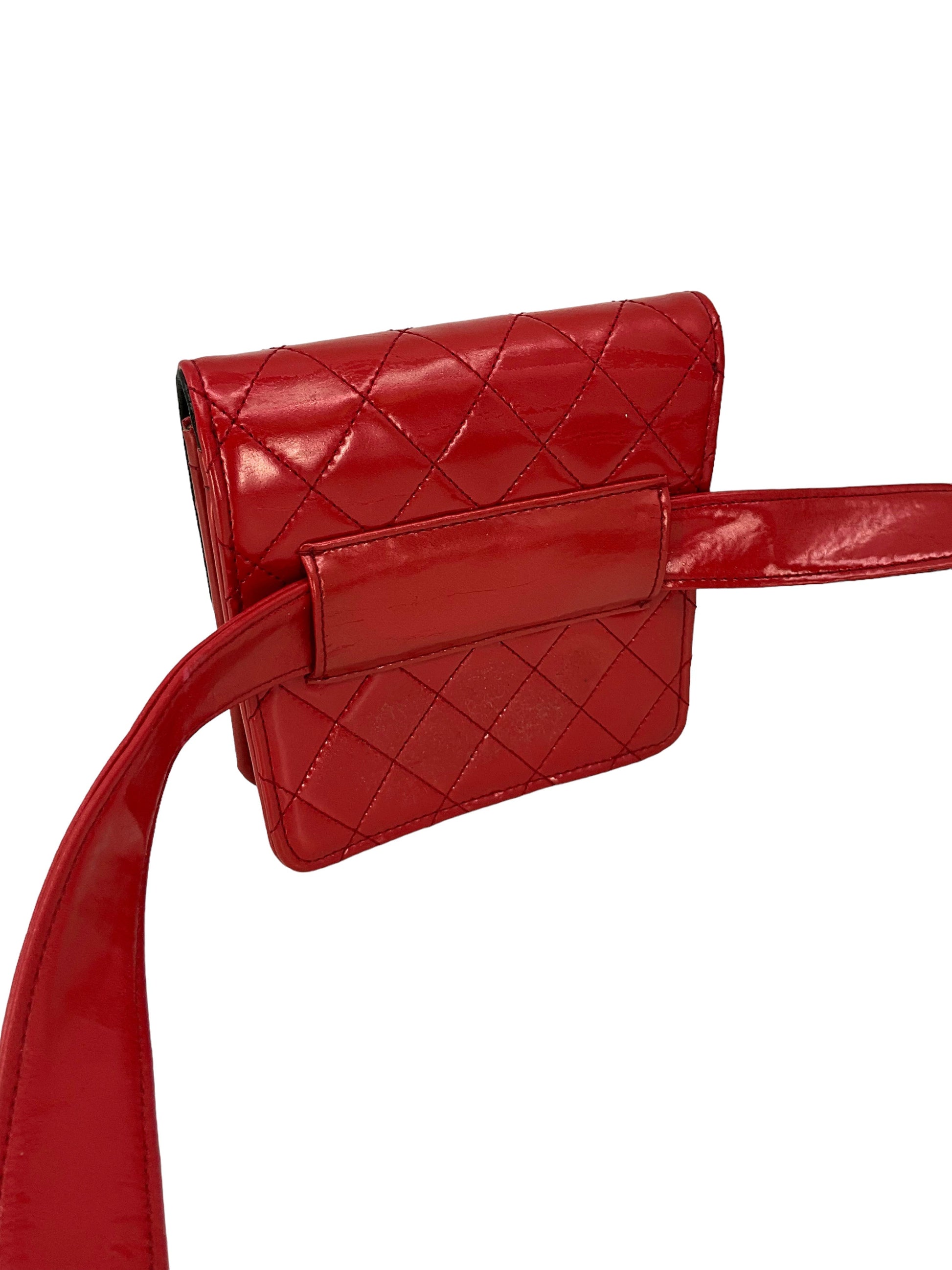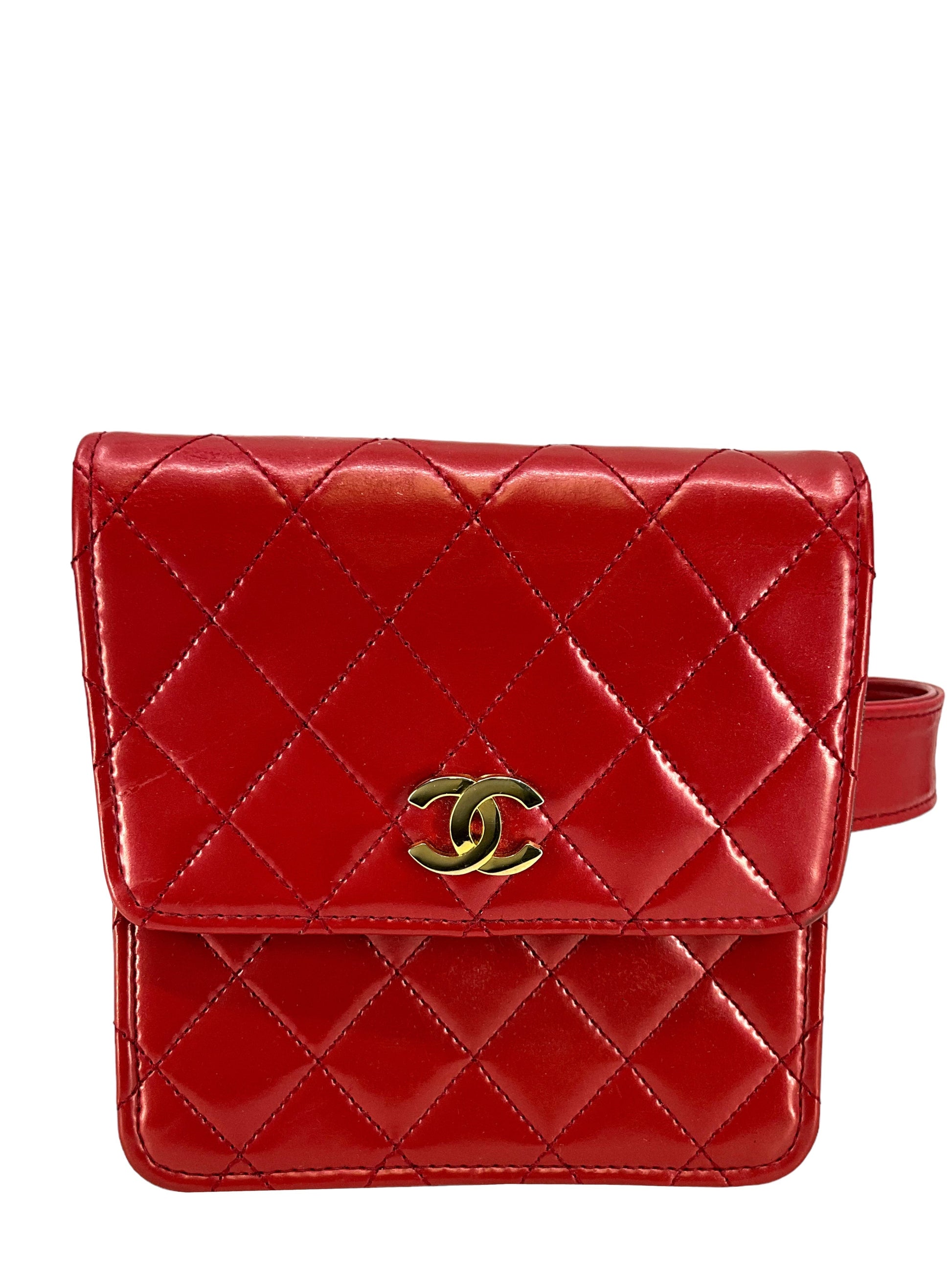 Prepare to turn heads with this gorgeous CHANEL Vintage Quilted Leather Bum Belt Bag crafted from beautiful red diamond quilted lambskin leather. Featuring an adjustable matching red belt and a polished gold-tone CC logo on the front flap closure.